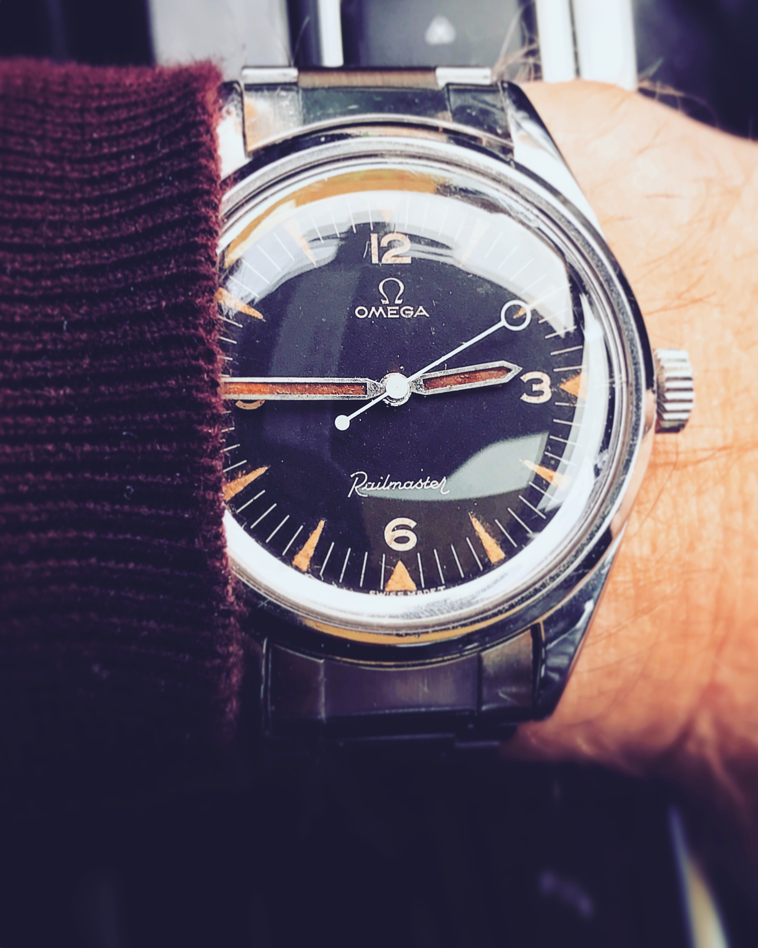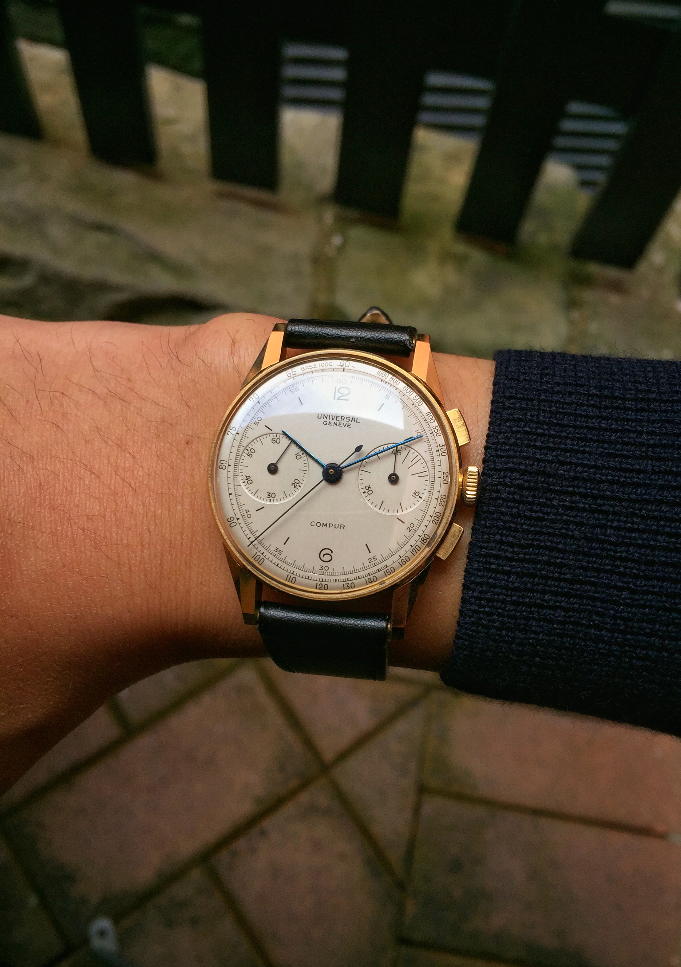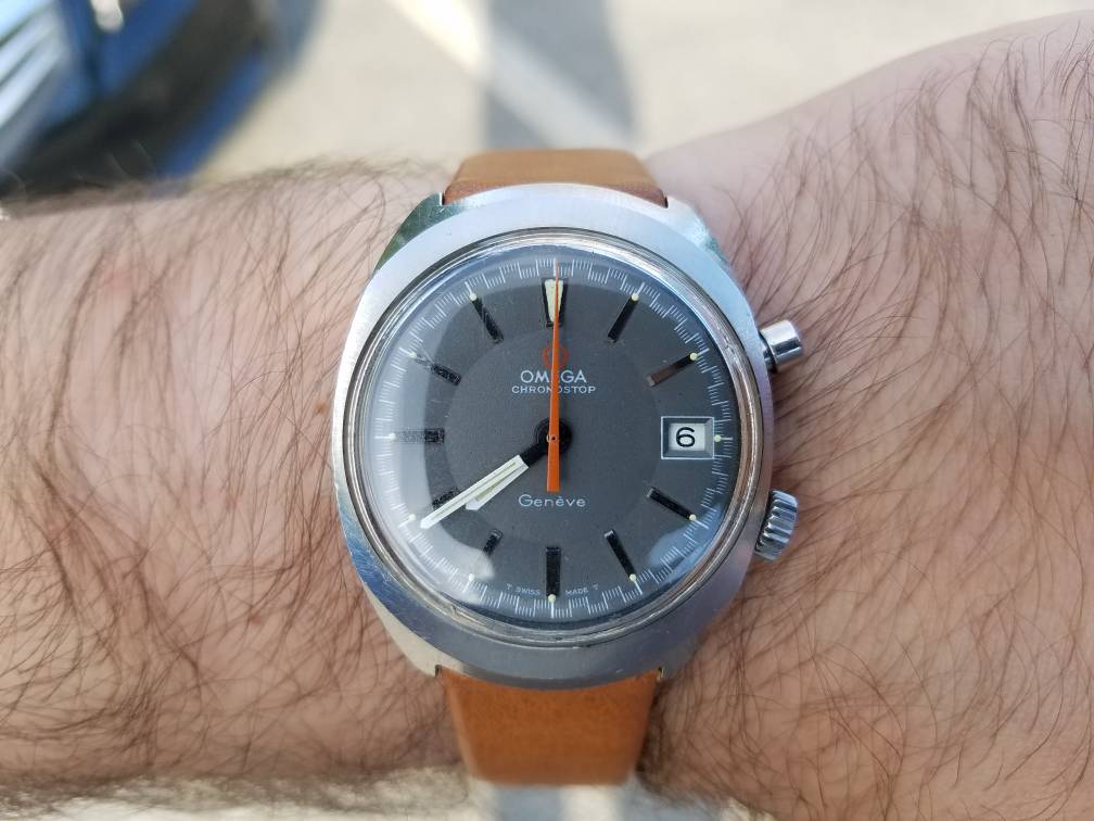 As I mentioned in an earlier post, this one has been langouring in the vault, date set at 6:00, for several months. Today is a good day to pull it out, set it, and wear it again for a while. Early 1950s, caliber 355 bumper automatic, date at 6:00. This one sat in pieces in a tin box of parts watches for well over 40 years, waiting to be discovered. Why I waited so long to service it and re-assemble it, I do not know. Dial is original and untouched. Omega crystal and service crown. Excellent performer and a joy to wear.