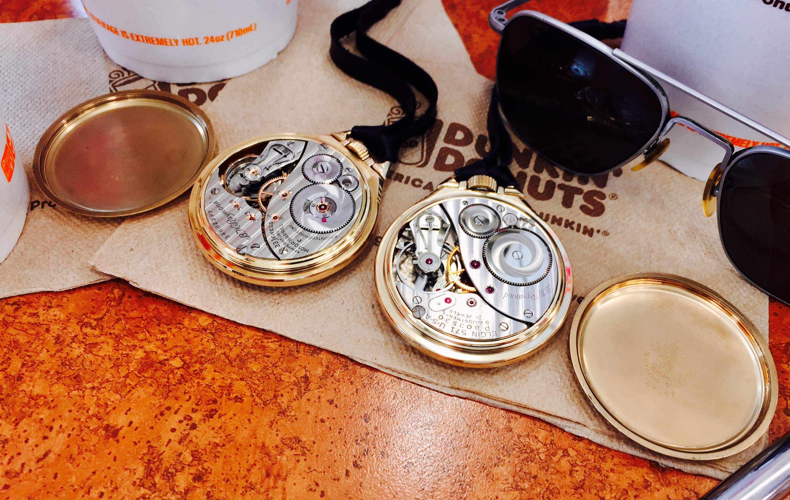 For today, double dogging it with dual "flown" railroad grade Elgin B. W. Raymonds [494 c. 1933 and 571 c. 1953 respectively]...good times! 👍