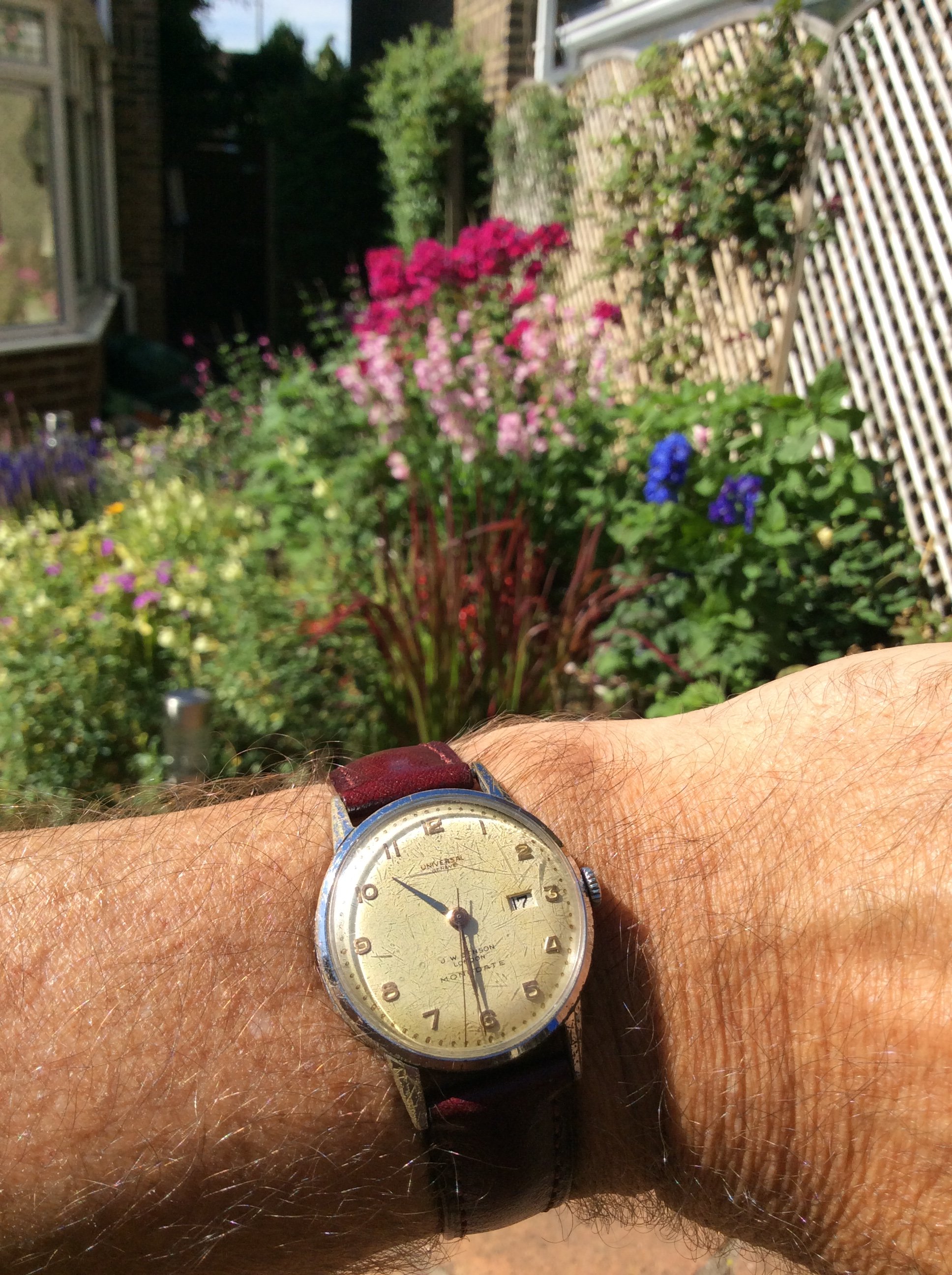 Just sitting in the sunshine this morning. Dads old Universal is getting a lot of wrist time at the moment, I love the well worn appearance, and it certainly was for fifty years.