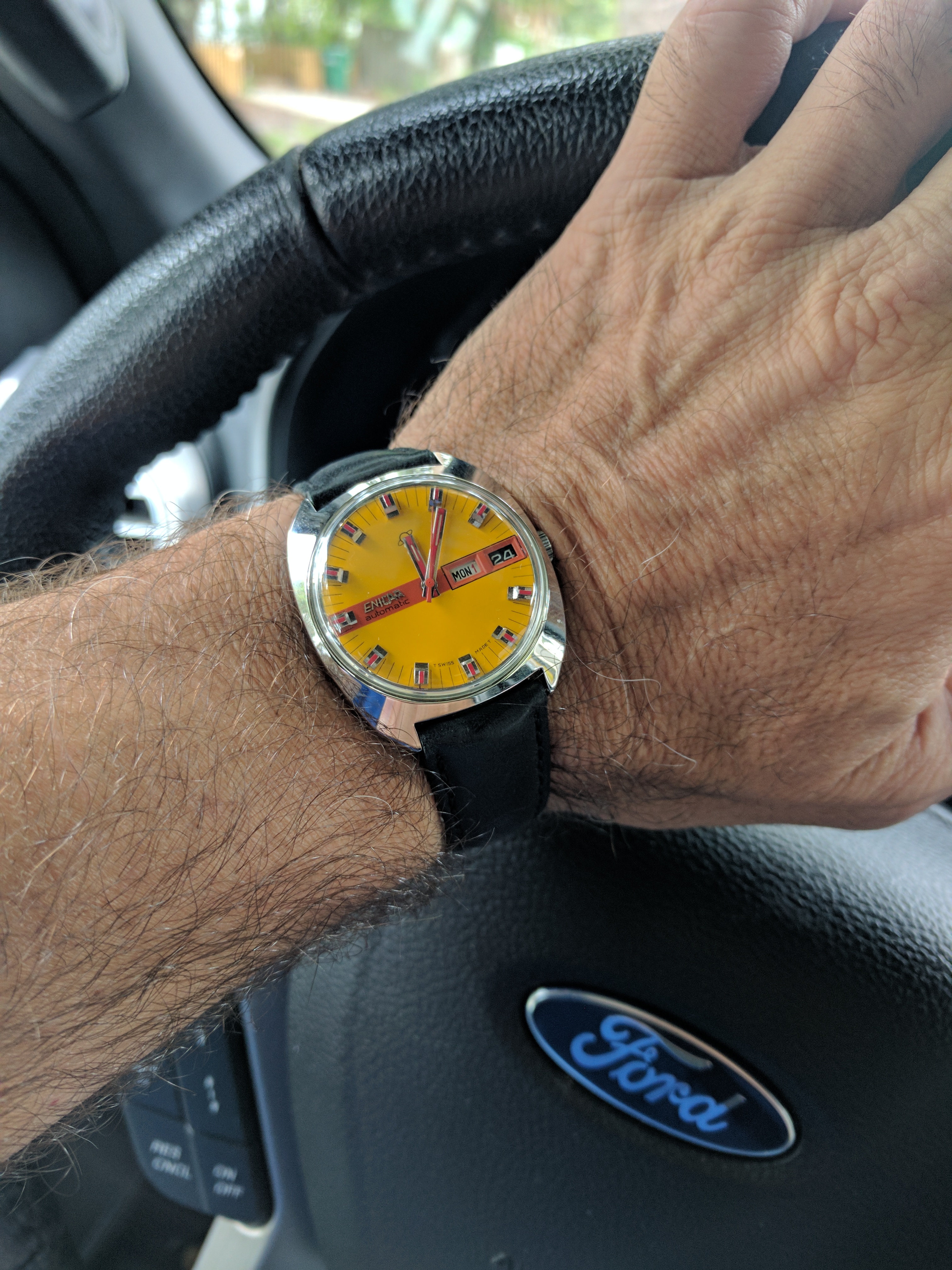 The other watch I just got back was a Sherpa Graph which I picked up a few months ago. New crystal and cleaned up hands and it looks pretty nice. The strap was bought for general use but it suits this so well I might just leave it on.