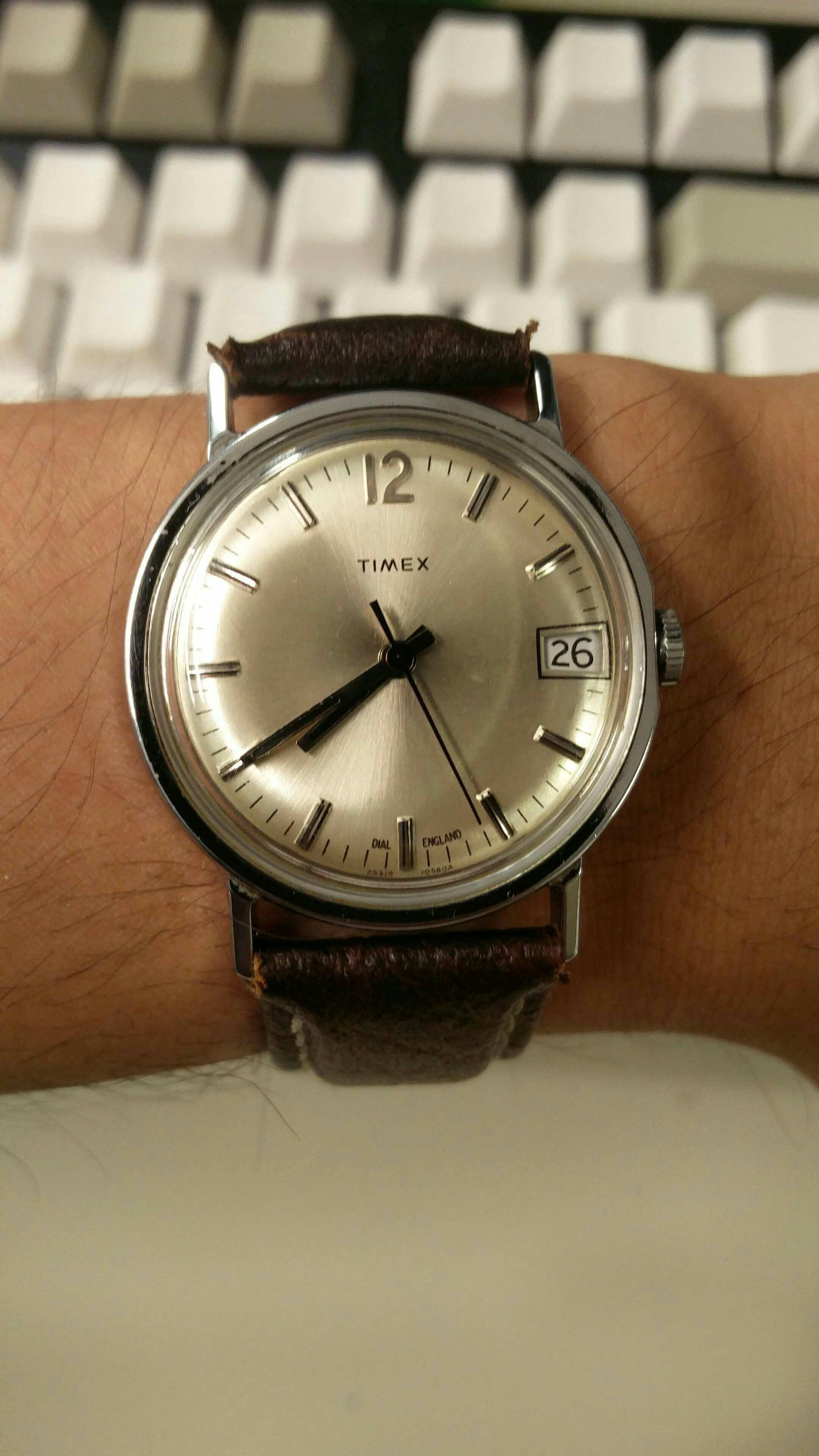 Posts 13 Likes 52 jollyjek ·Jul 26, 2017 The first mechanical I've ever bought with the first strap I've ever gotten. A vintage 1970s Timex hand wind with a cheap leather strap off Amazon. Recently got into watches, this made me get the watch bug!