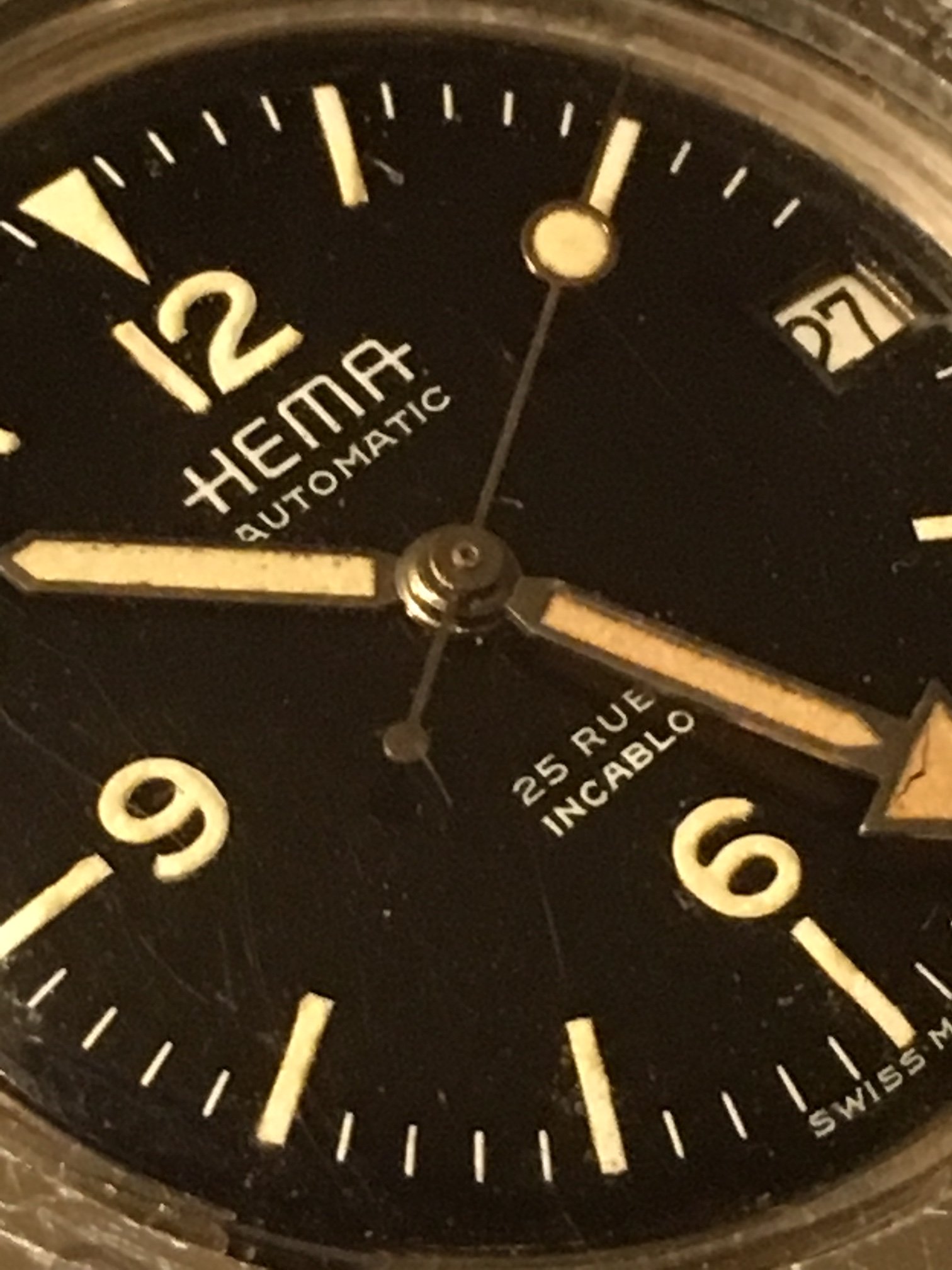 rainbow dial (looks black, but on direct sunlight it has a greenish-blueish hue),