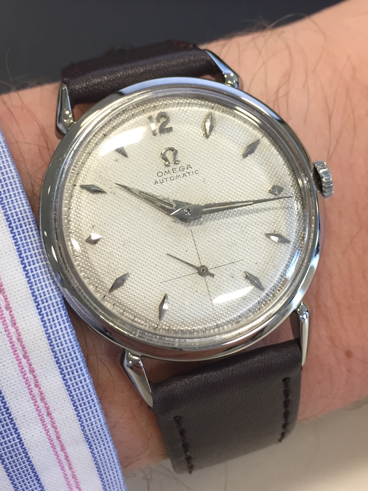 Posts 54 Likes 580 nate0624 ·Aug 1, 2017 The only manual wind watch in my collection collection: '63 Omega Seamaster Sunburst dial w/ date.