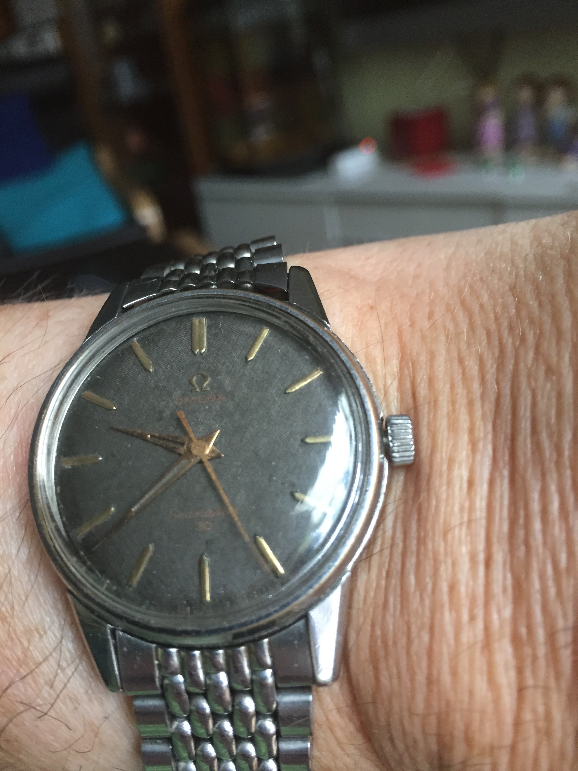 HANDSOME WATCH !!! .... may i suggest that U try to secure an OMEGA Plexi for it ... if U are able to find out the case number printed inside on the case back U might be able to locate a proper OMEGA Plexi [ small omega logo etched dead center of crystal ] ...