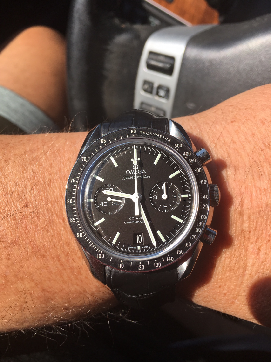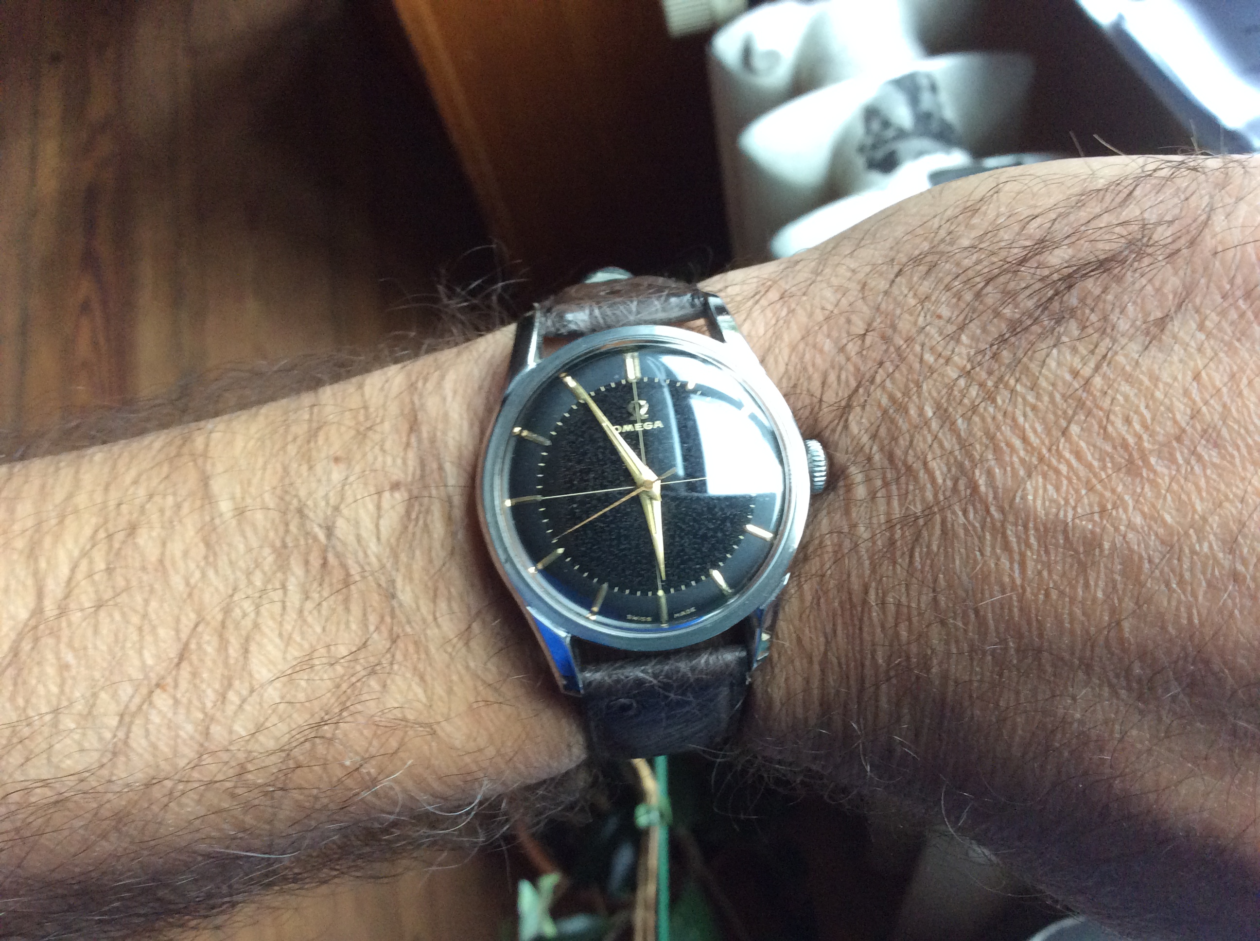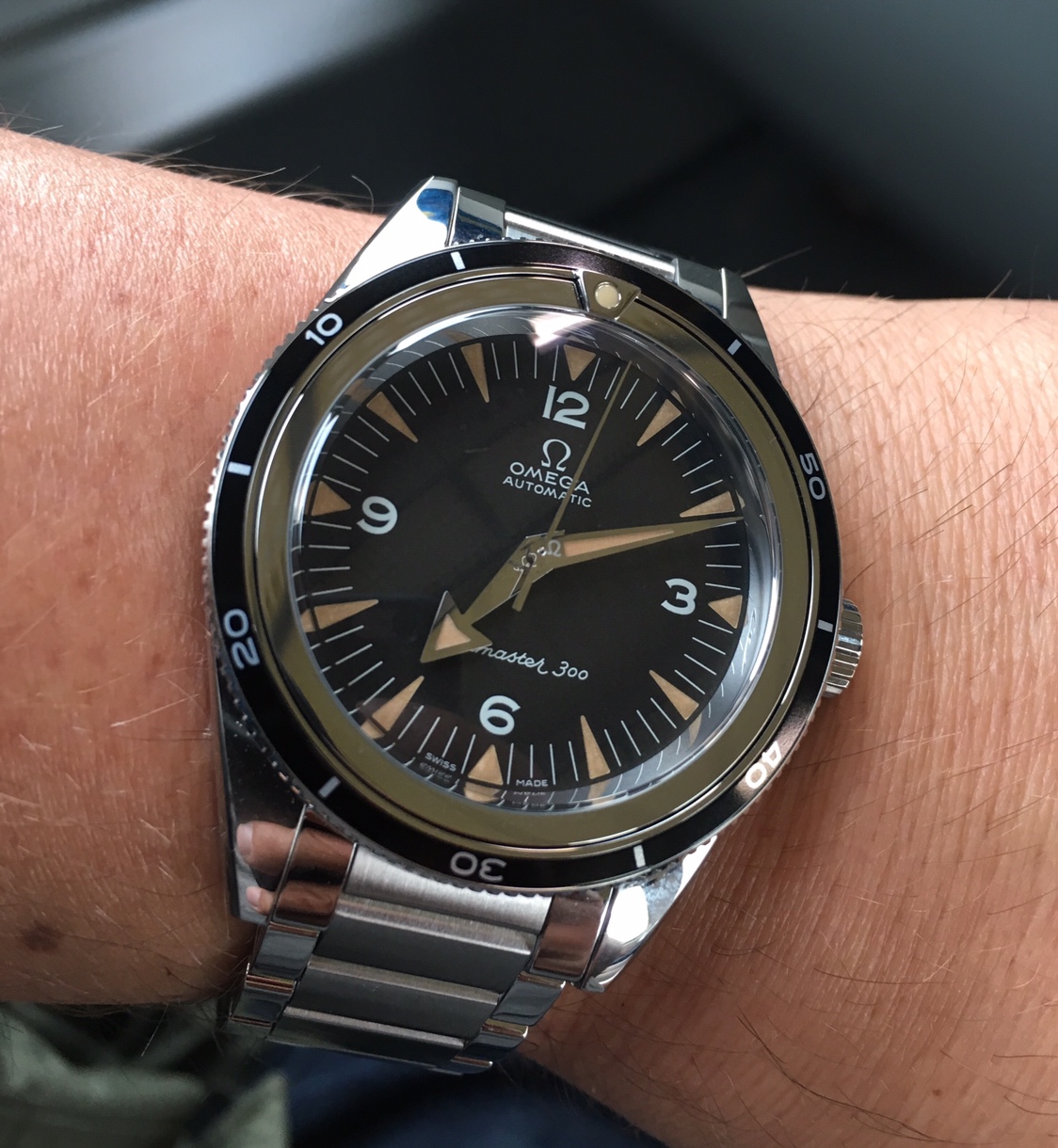 Tried in a buddy's Speedy Reduced today, just for grins. Nope. Too small on my ham hock 7 3/4" wrists. Plus I've gotten used to my co-axial Speedmaster so the difference was shocking. Likewise, my 44.25mm model completely eclipsed her dainty wrist. Strapped my co-axial back on my wrist and there it shall stay.