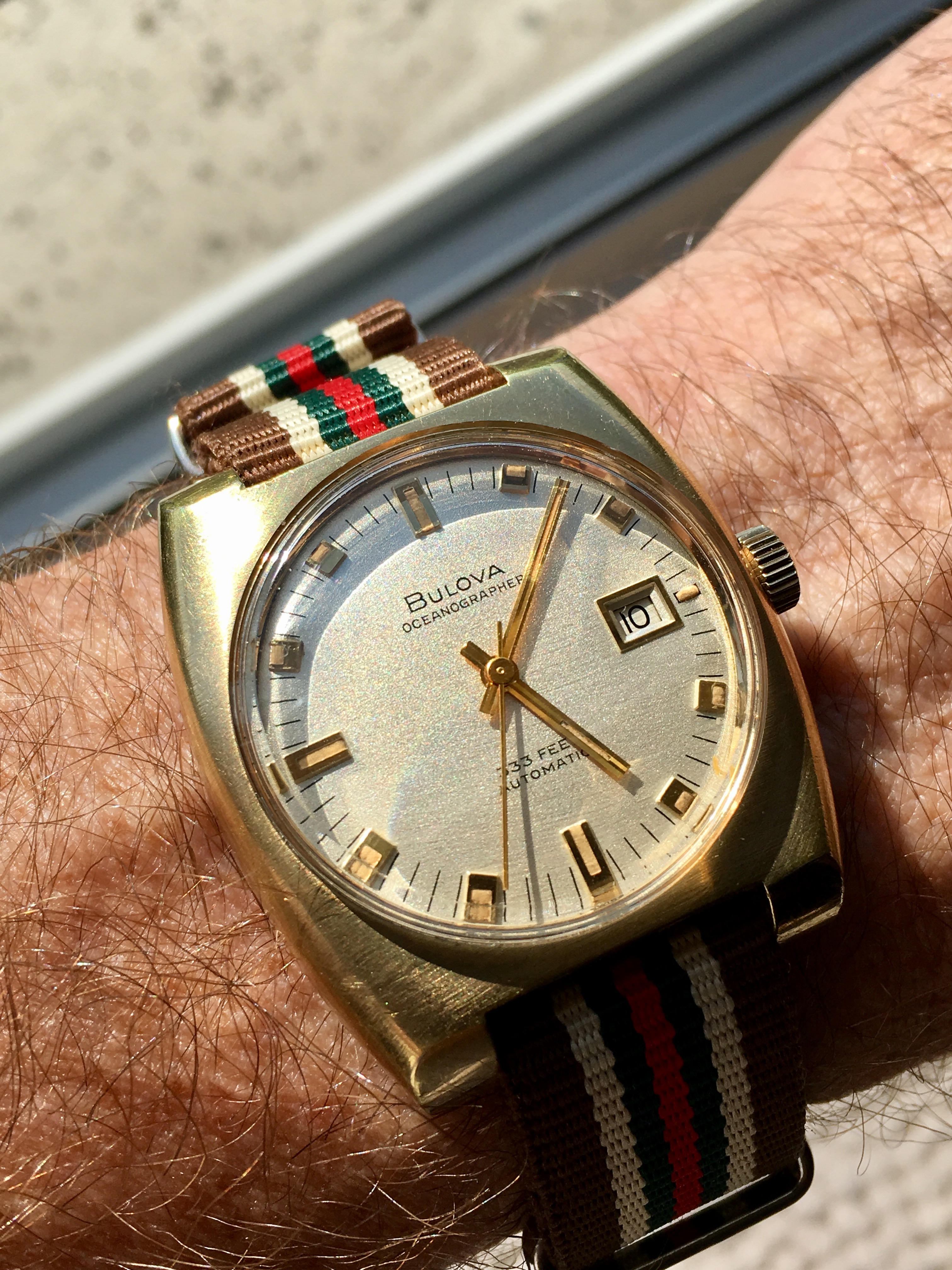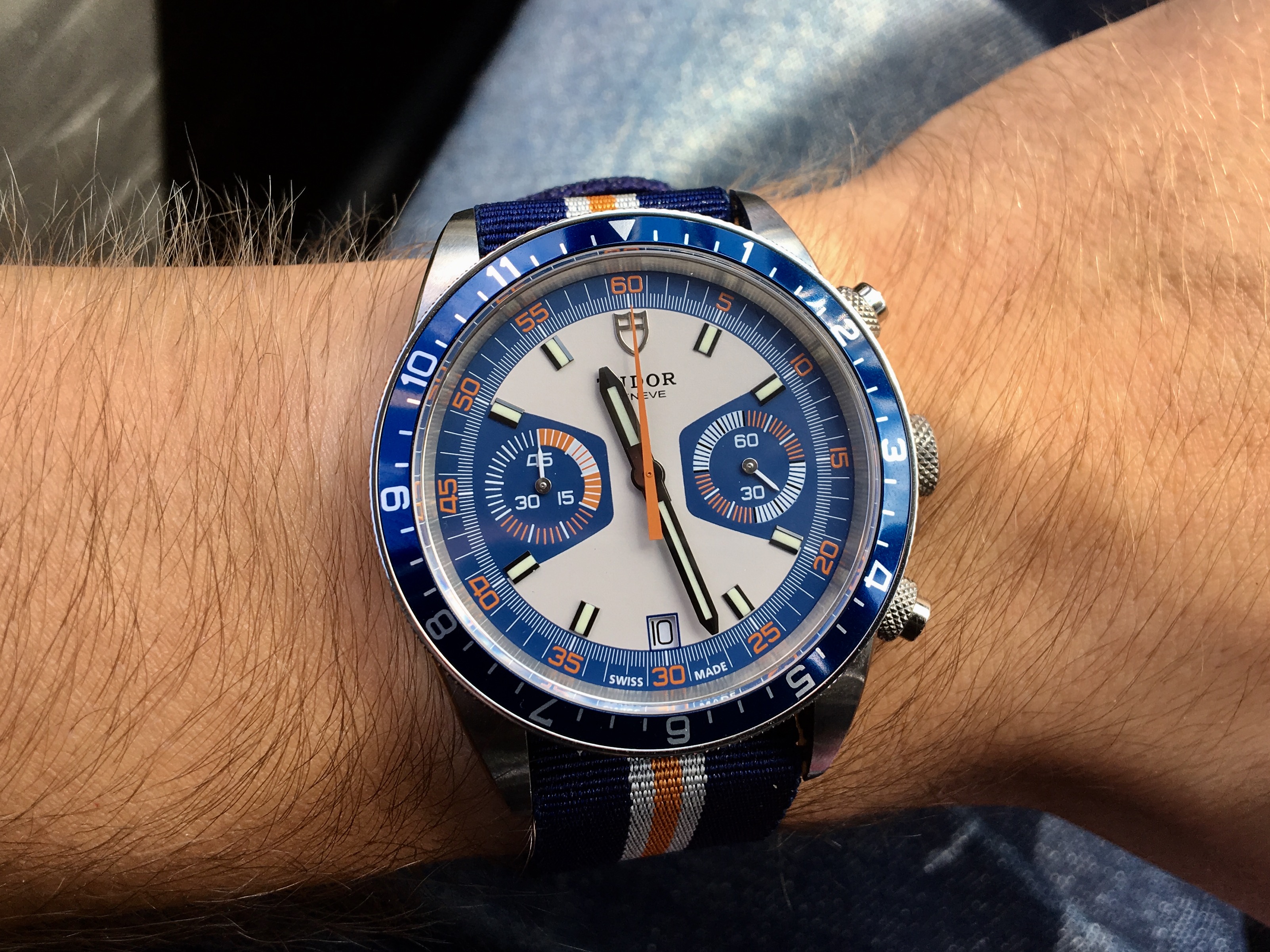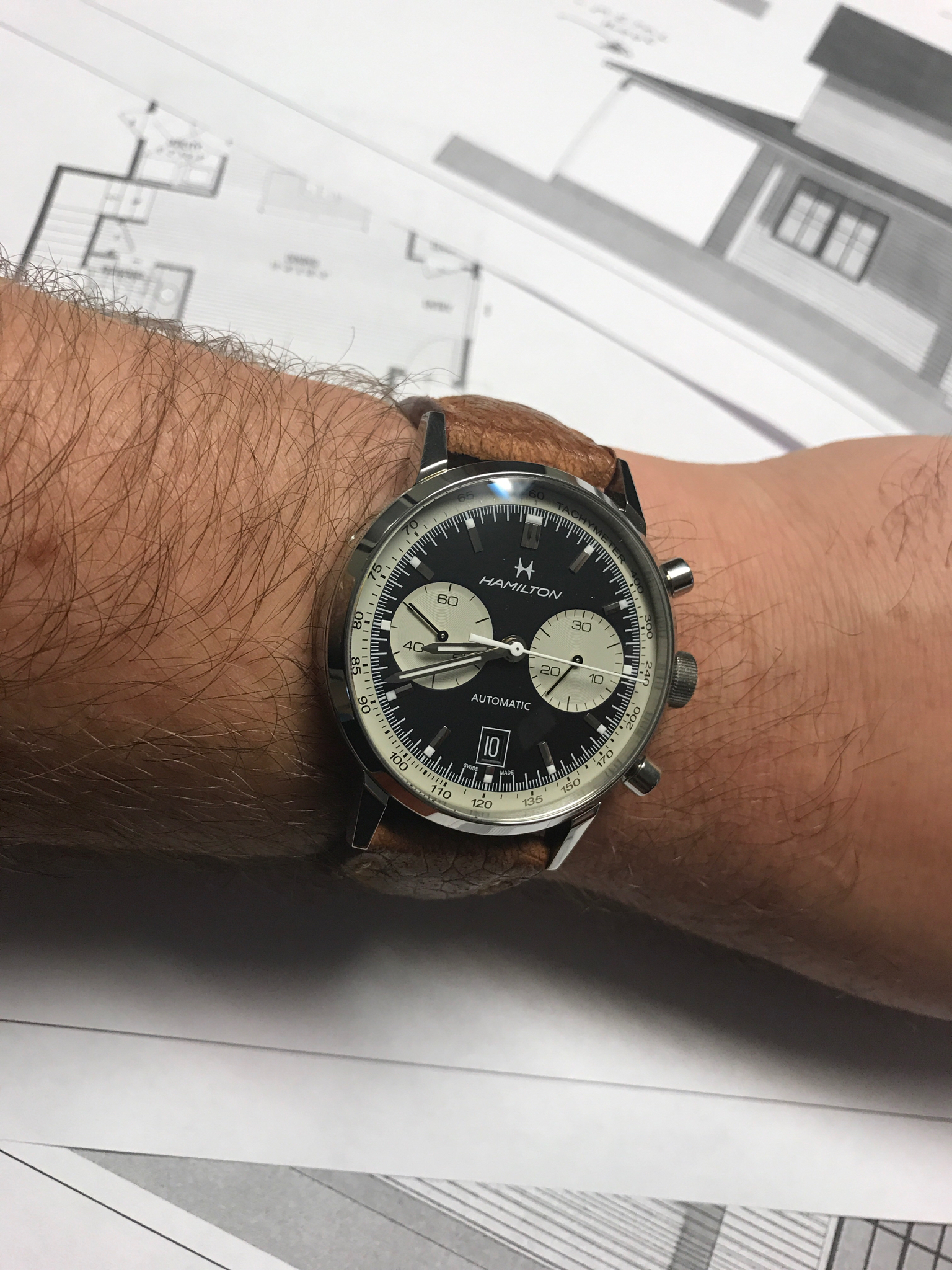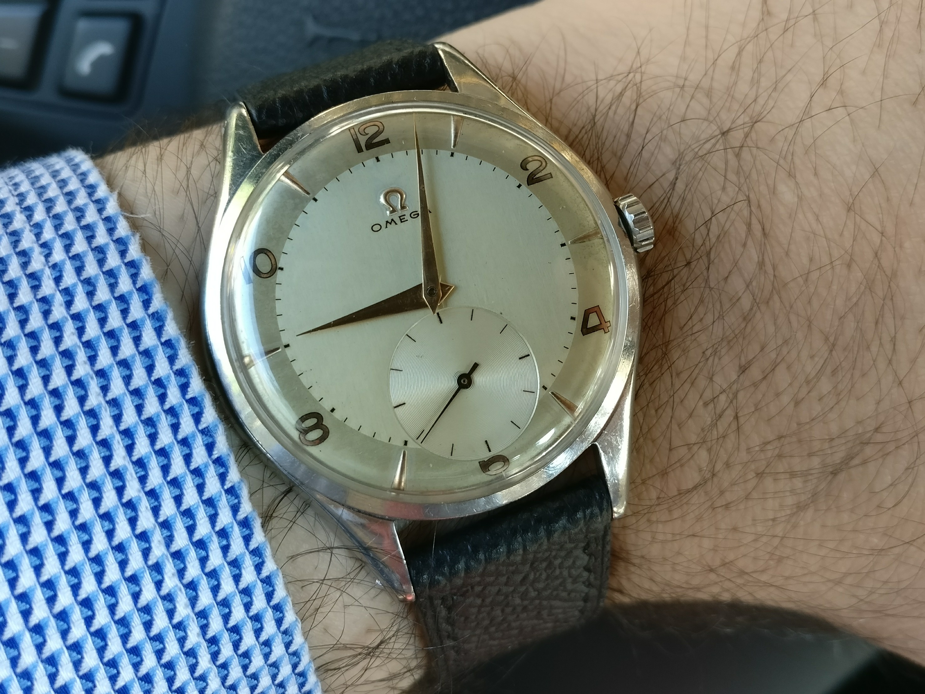Tried in a buddy's Speedy Reduced today, just for grins. Nope. Too small on my ham hock 7 3/4" wrists. Plus I've gotten used to my co-axial Speedmaster so the difference was shocking. Likewise, my 44.25mm model completely eclipsed her dainty wrist. Strapped my co-axial back on my wrist and there it shall stay.