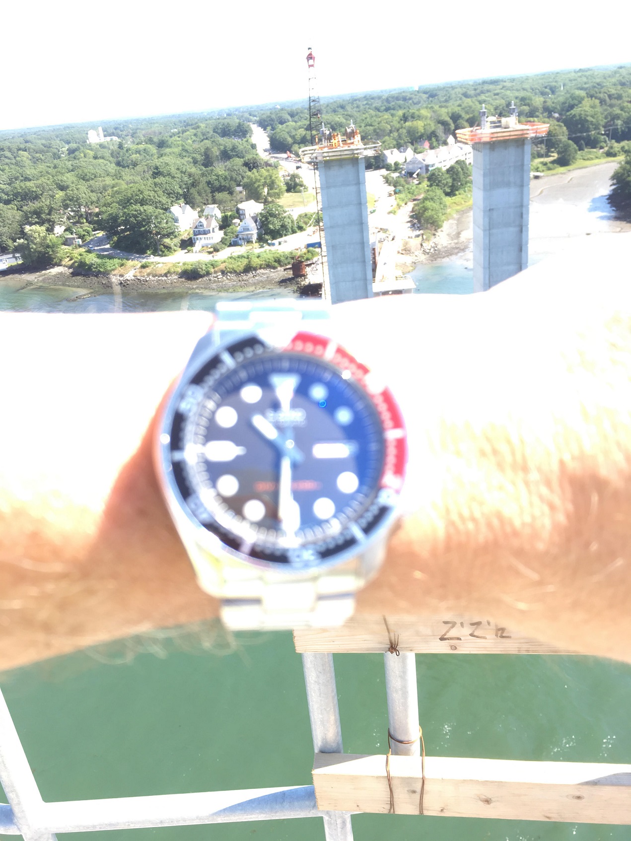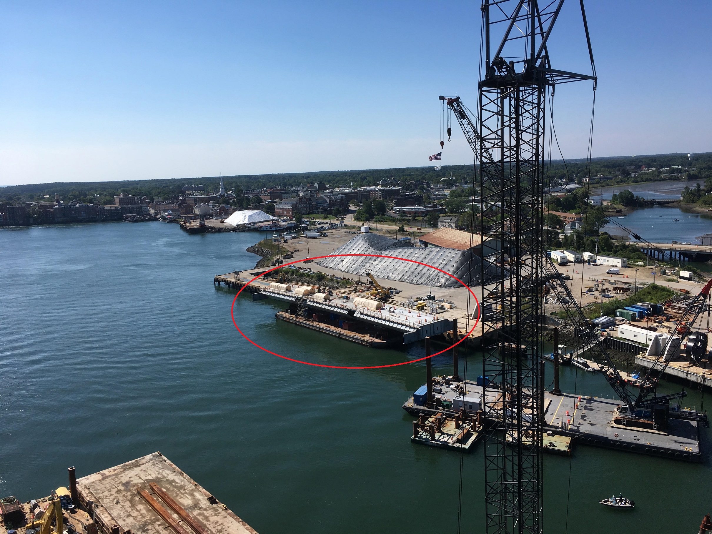 It's been a long weekend trying to wrap up our tasks on the Lift Span (and it's not over). Since I was here, I pulled duty going to the top of the towers to moisten recent concrete placements (helps properly cure the concrete). Long hike up both of these towers. While there I grabbed a few happy snaps.