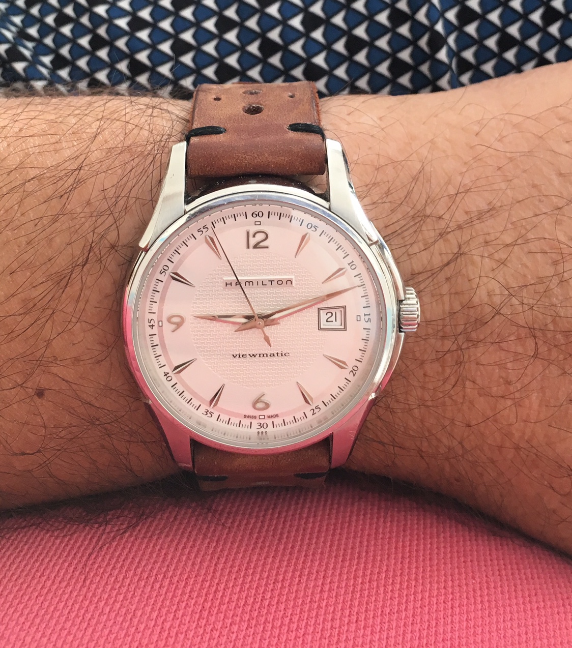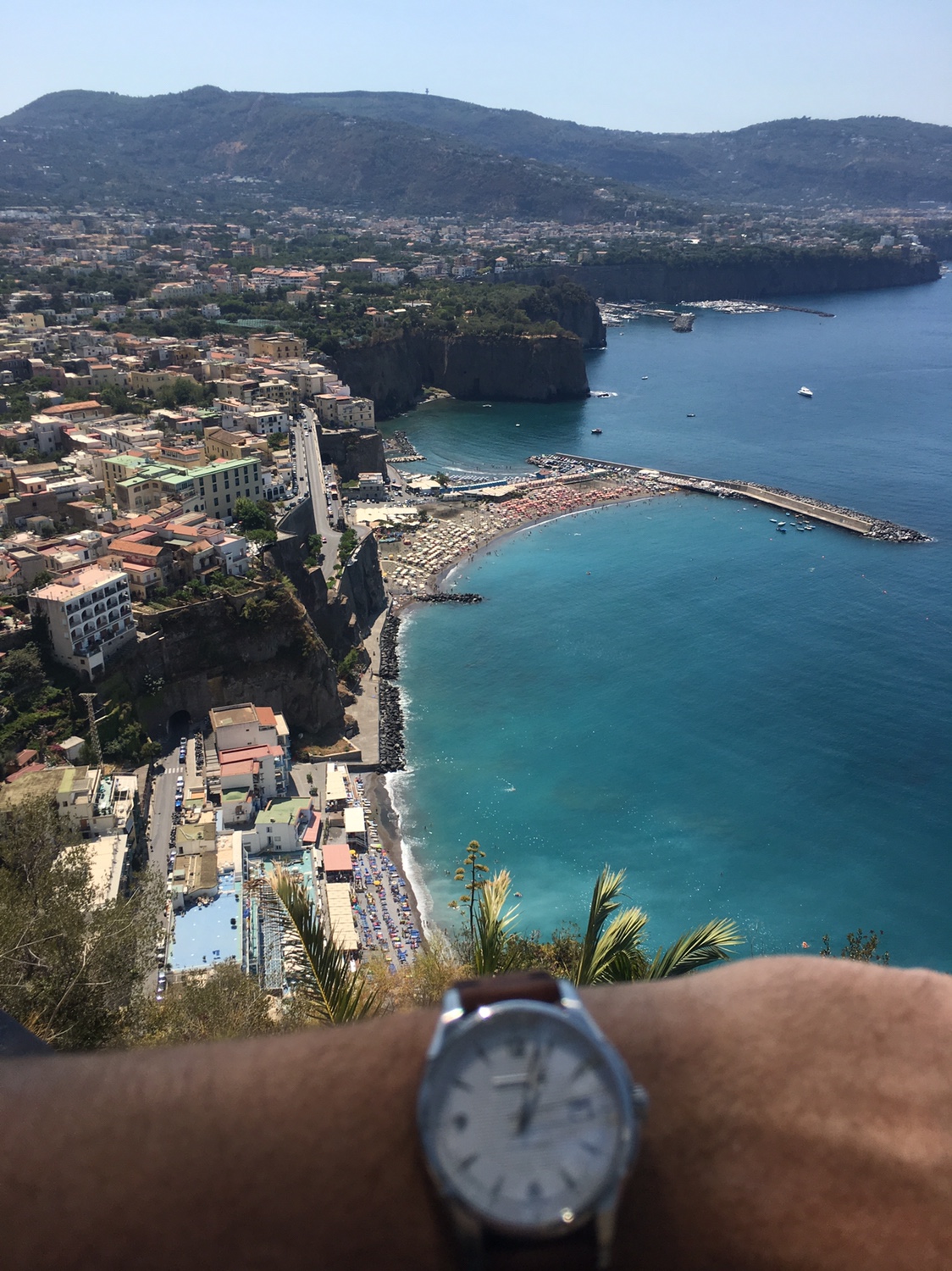 So I decided to bring only my Hamilton to Italy and I haven't been disappointed. The dial is simple and easy to read, while the Heuerville strap gives it a playfully sporty feel.