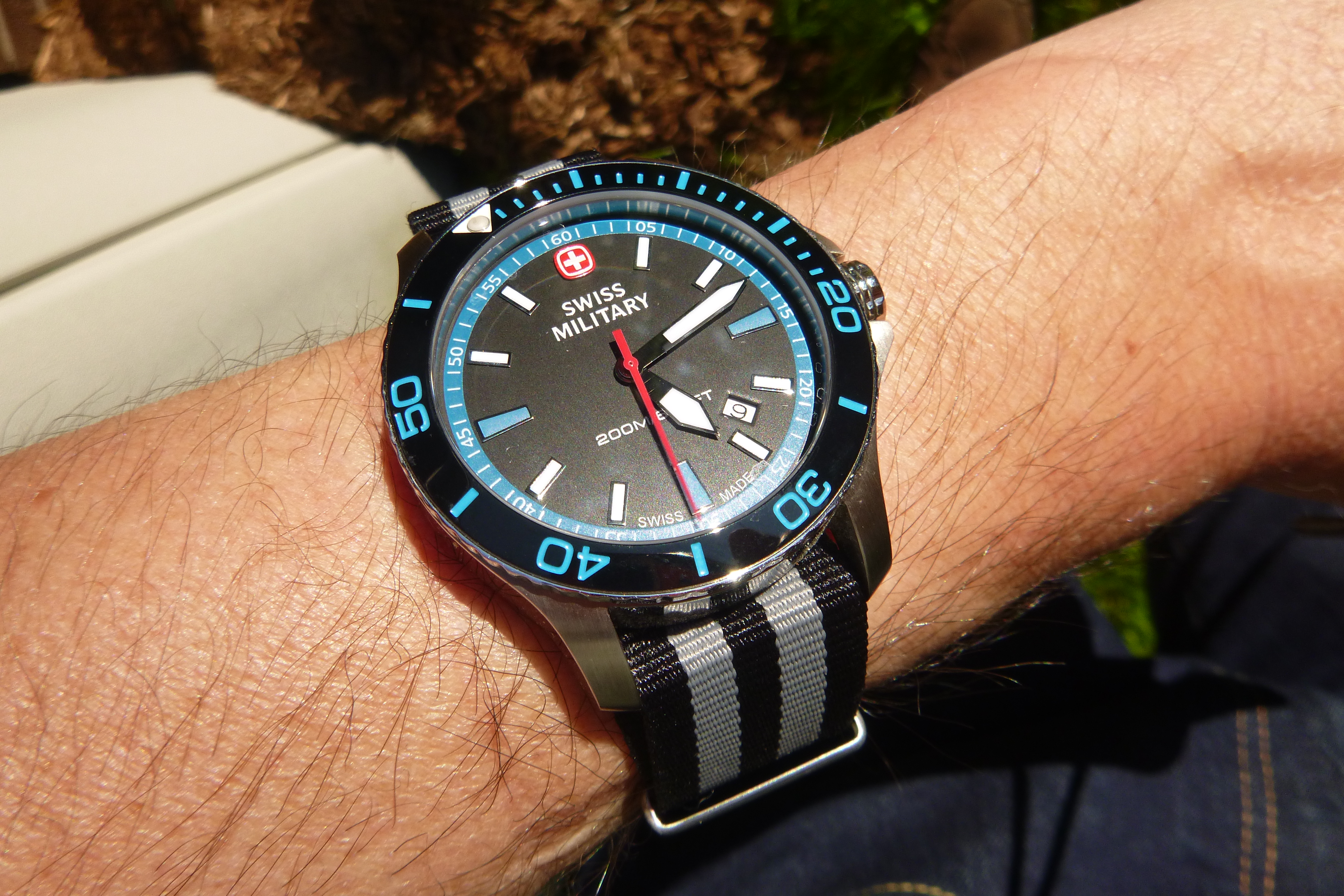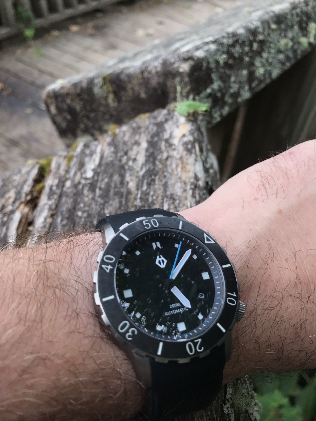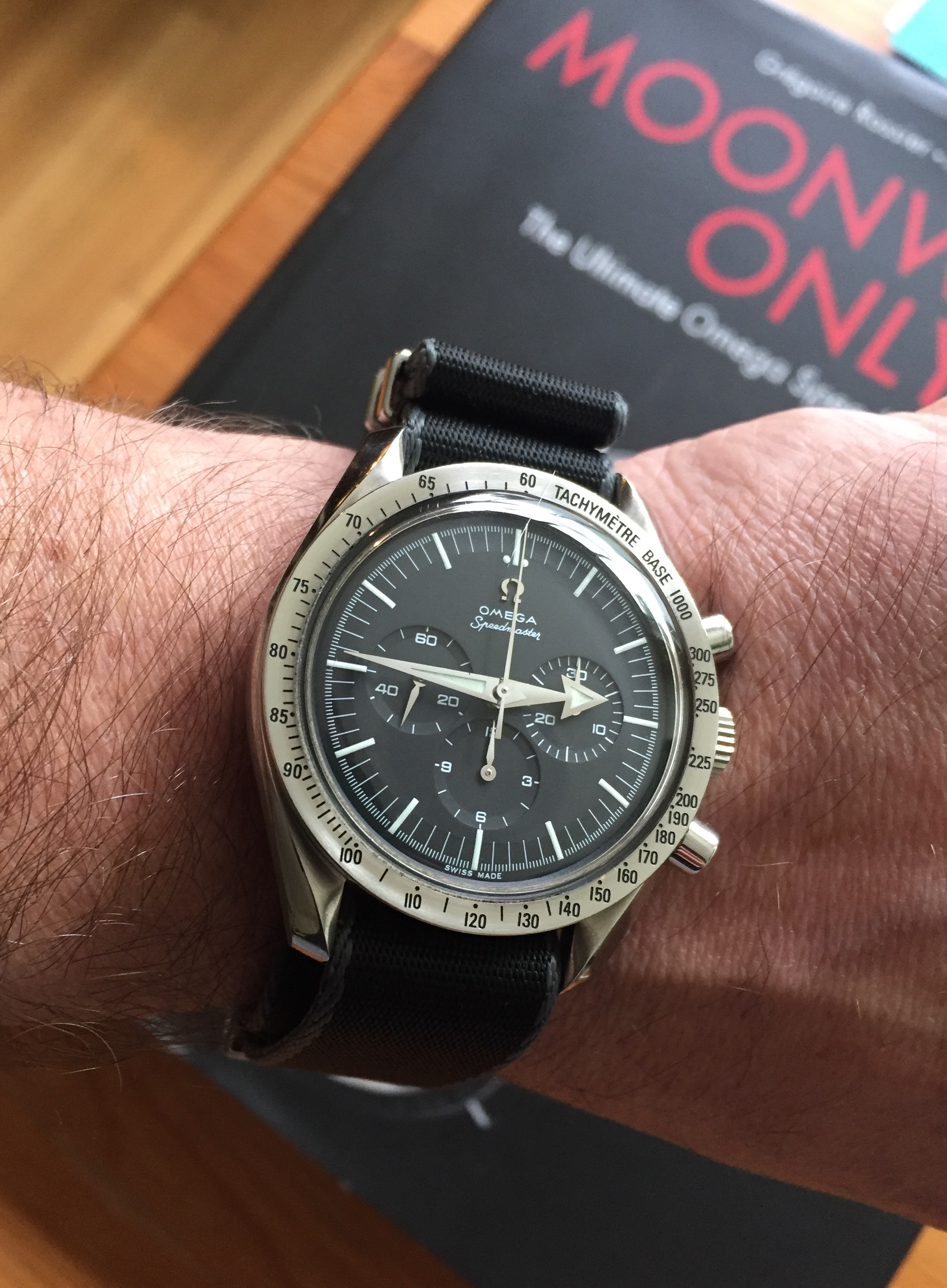 @ChuckMK23 [on left in pic below] showed up at the house today...so we coordinated with modern Speedy Gonzales Moonwatches on Omega black nylon NATOs, mil spec U.S. Navy PT shirts and mil spec American Optical sunglasses...good times! 👍