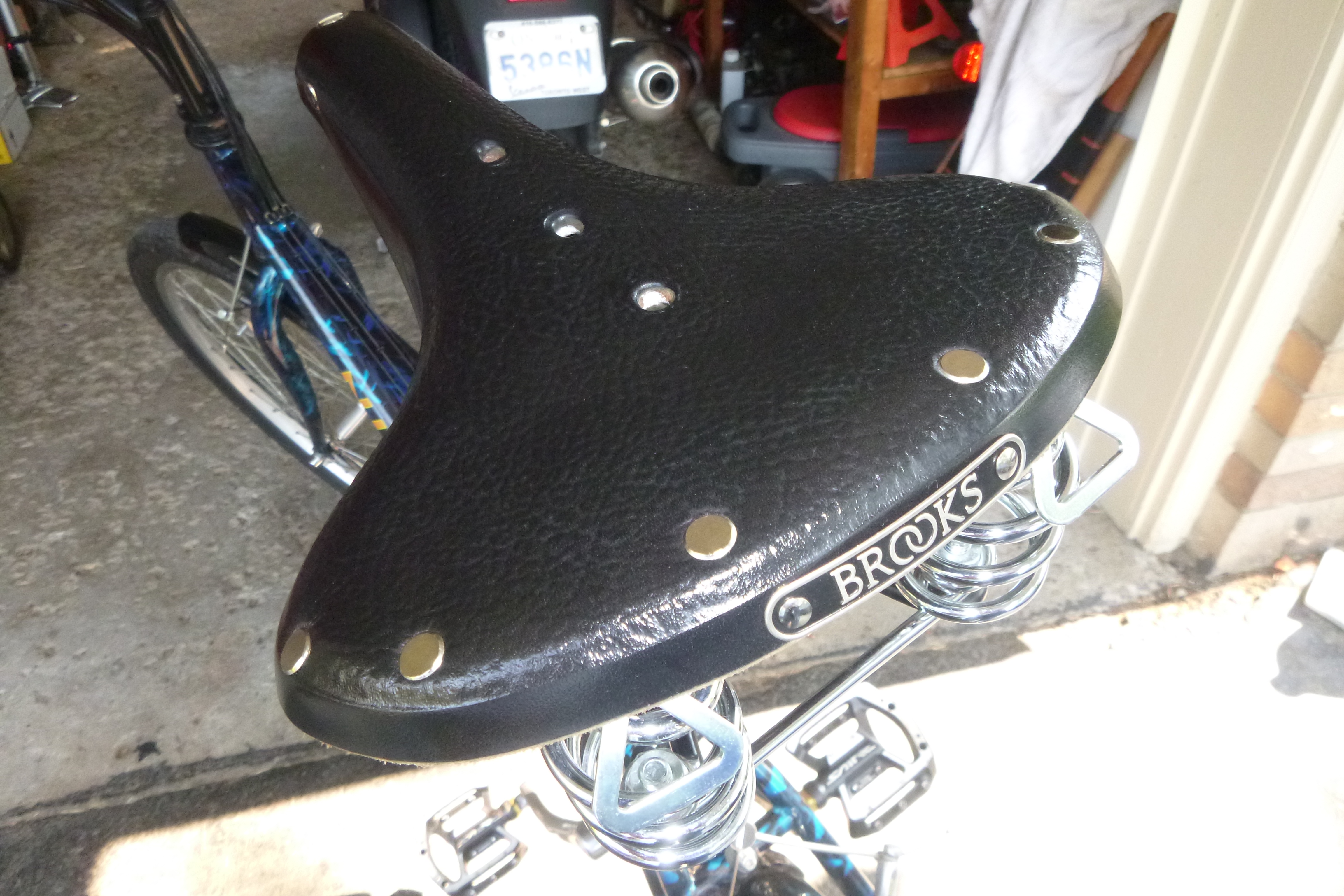 always wanted another Brookes saddle.... I've spent more upgrading this damn bicycle in the last few seasons than I originally paid for the silly thing, but then it is 24 years old now. I figured a few upgrades were cheaper than a replacement, by swapping the off road stuff for street stuff I've made the old thing comfortable for my sorry old frame. So now its gets used again.... a lot.