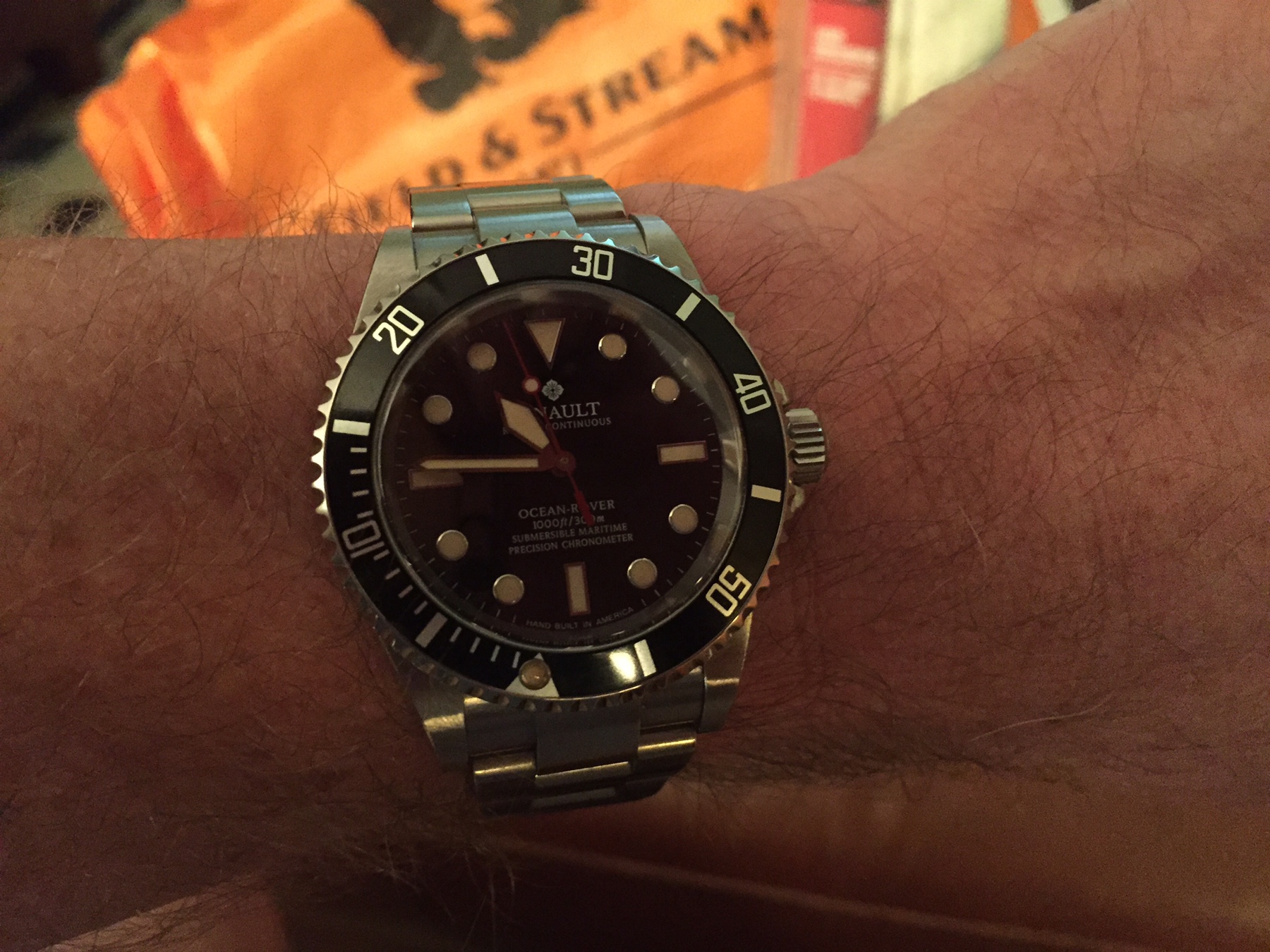 The kid at the checkout counter at Field & Stream asked if I was wearing a Rolex, which led to a nice little chat about the Ginault and the hobby. Maybe the fourth time in my life that someone has commented on the watch I was wearing, but the second time--in a couple months--that someone has noted the Ocean Rover.