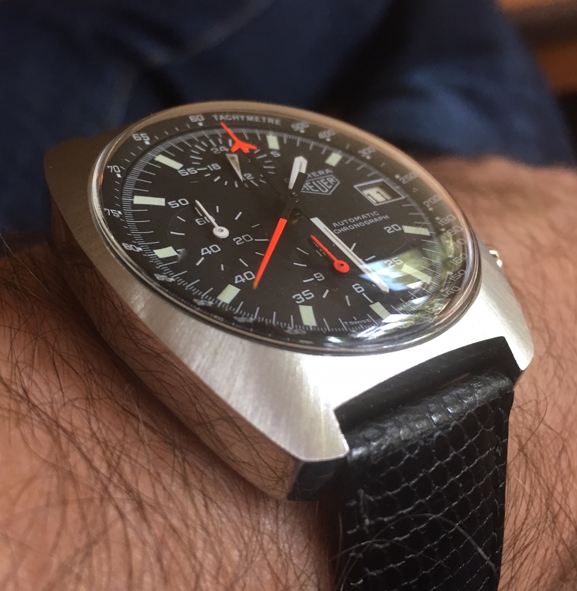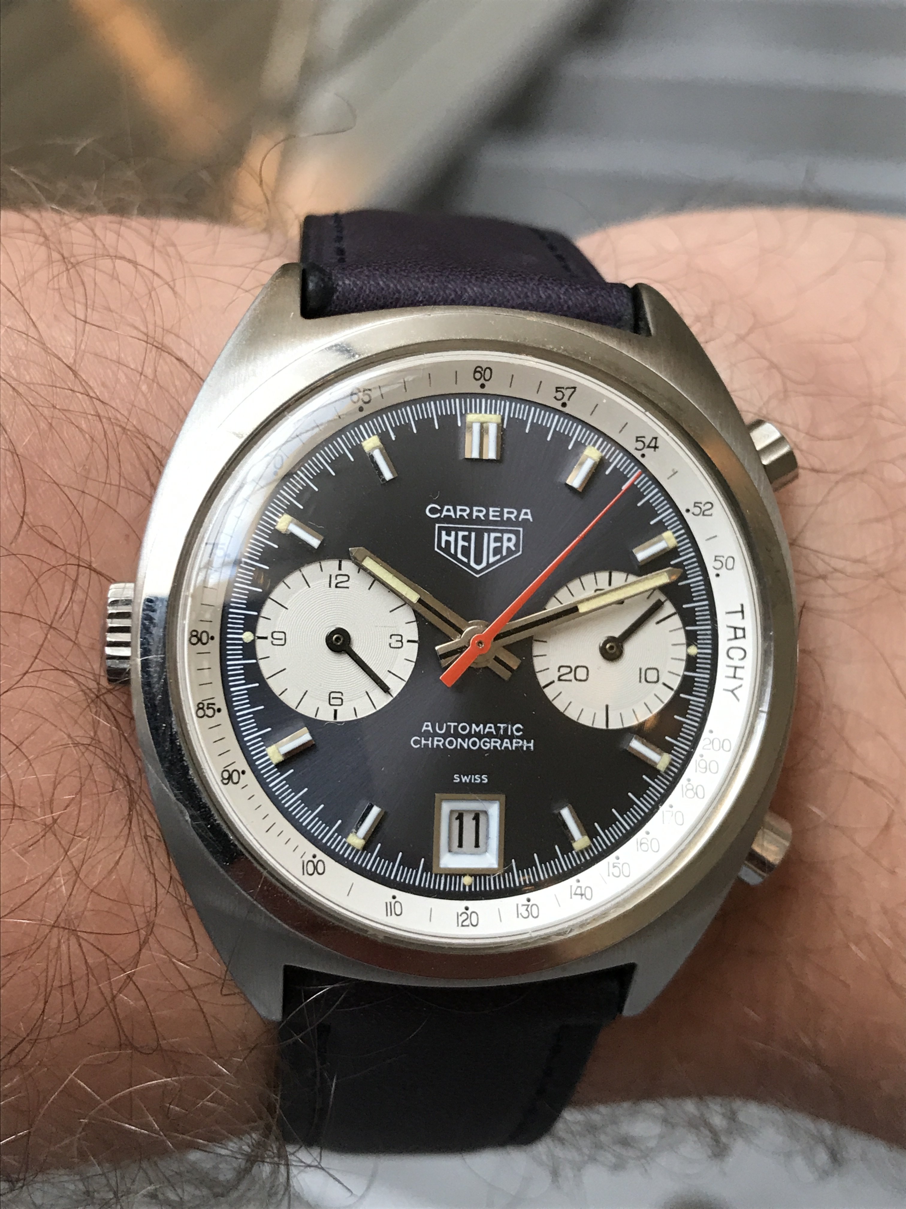 Trying to catch the reflection on the sunburst case on the last great Carrera, the 510.523 from the 80s. Another Lemania 5100, I can't get bored with them.