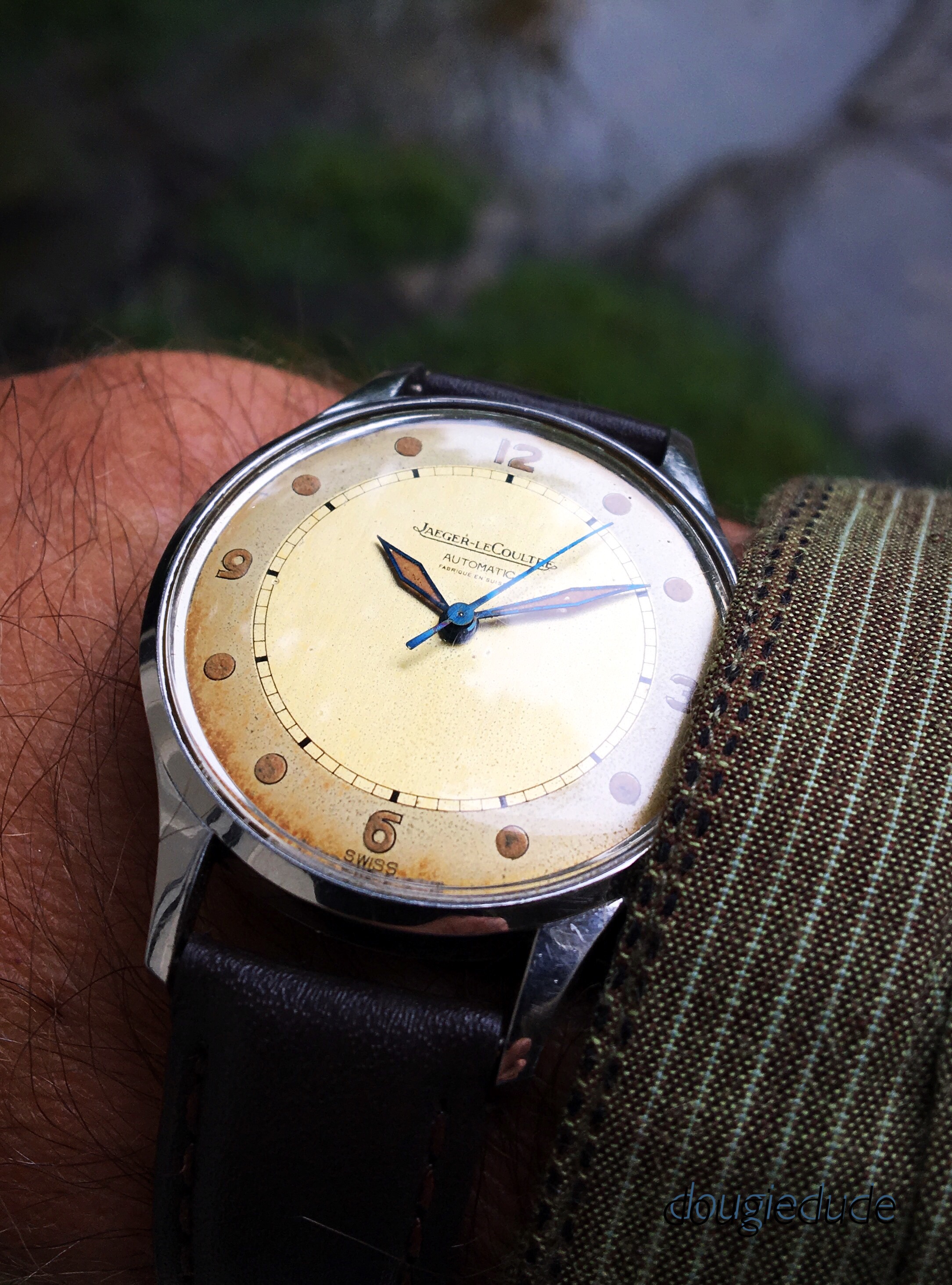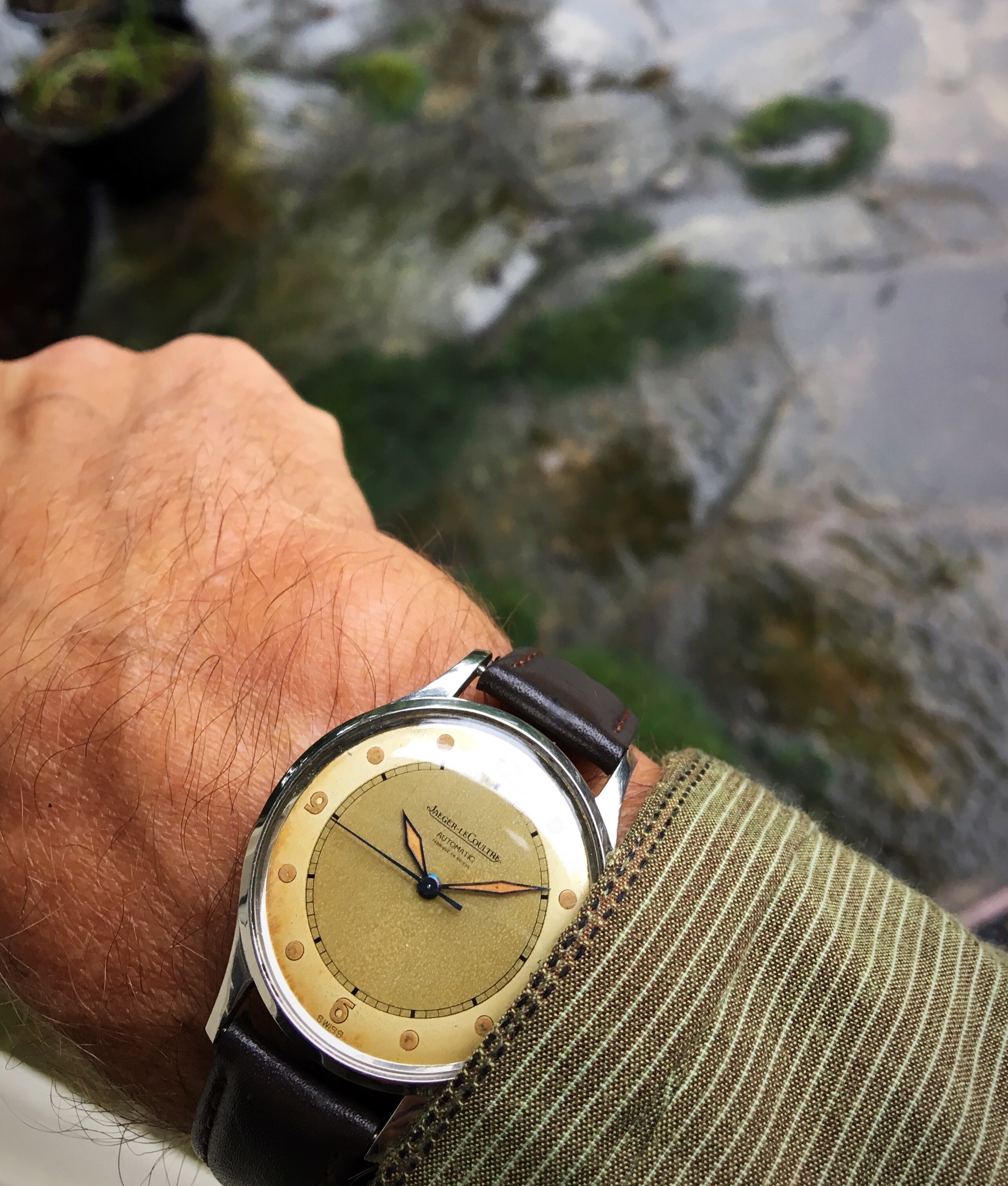 For today, wearing recently purchased Hamilton 950B [circa 1963...also, the end of production for the 950B]. It's running a wee bit fast [+15 seconds per 24 hours] so I'm very slightly manipulating the regulator to bring it down a bit...shooting for about +3 or +4 seconds per 24 hours...good times! 👍