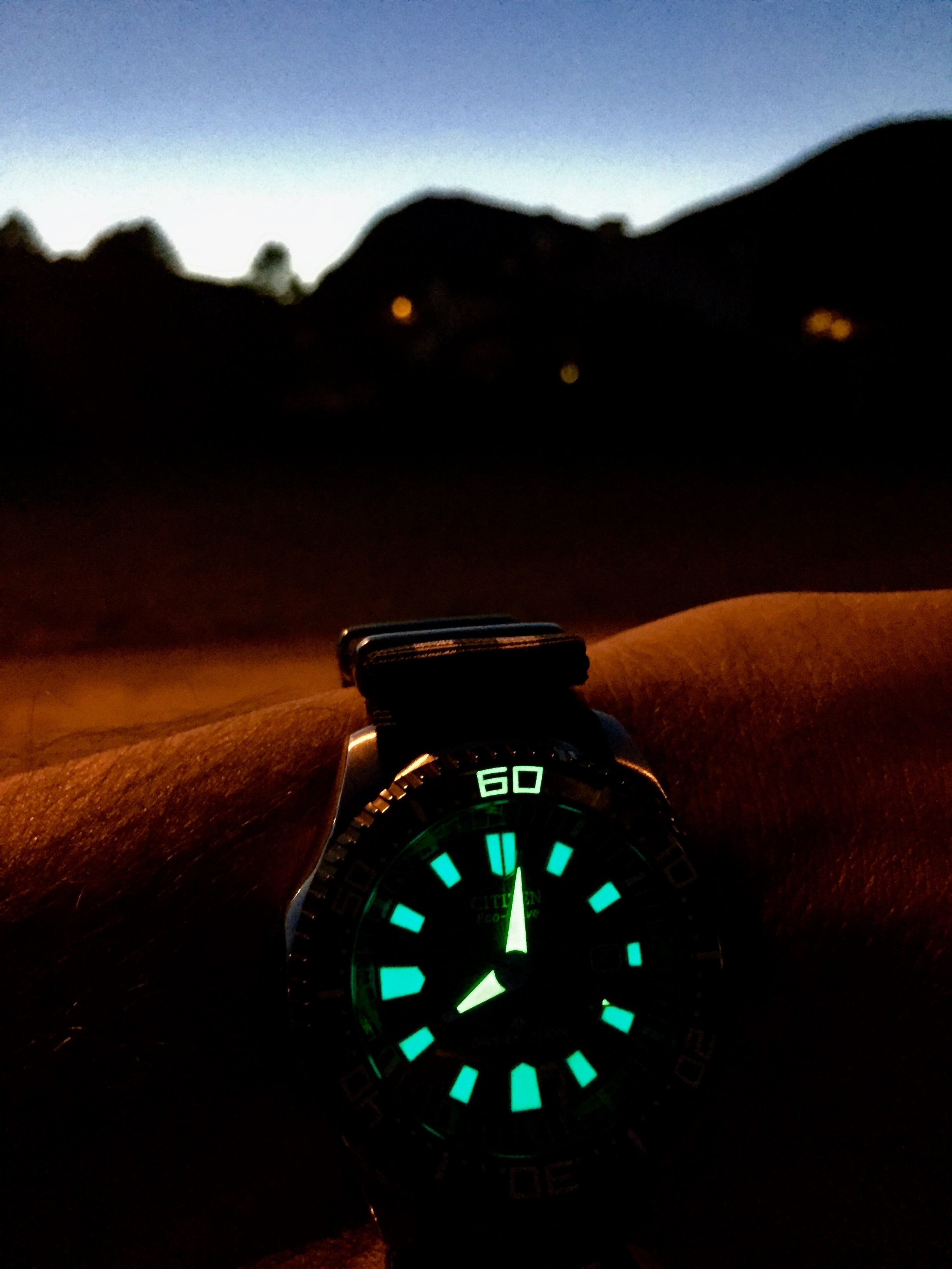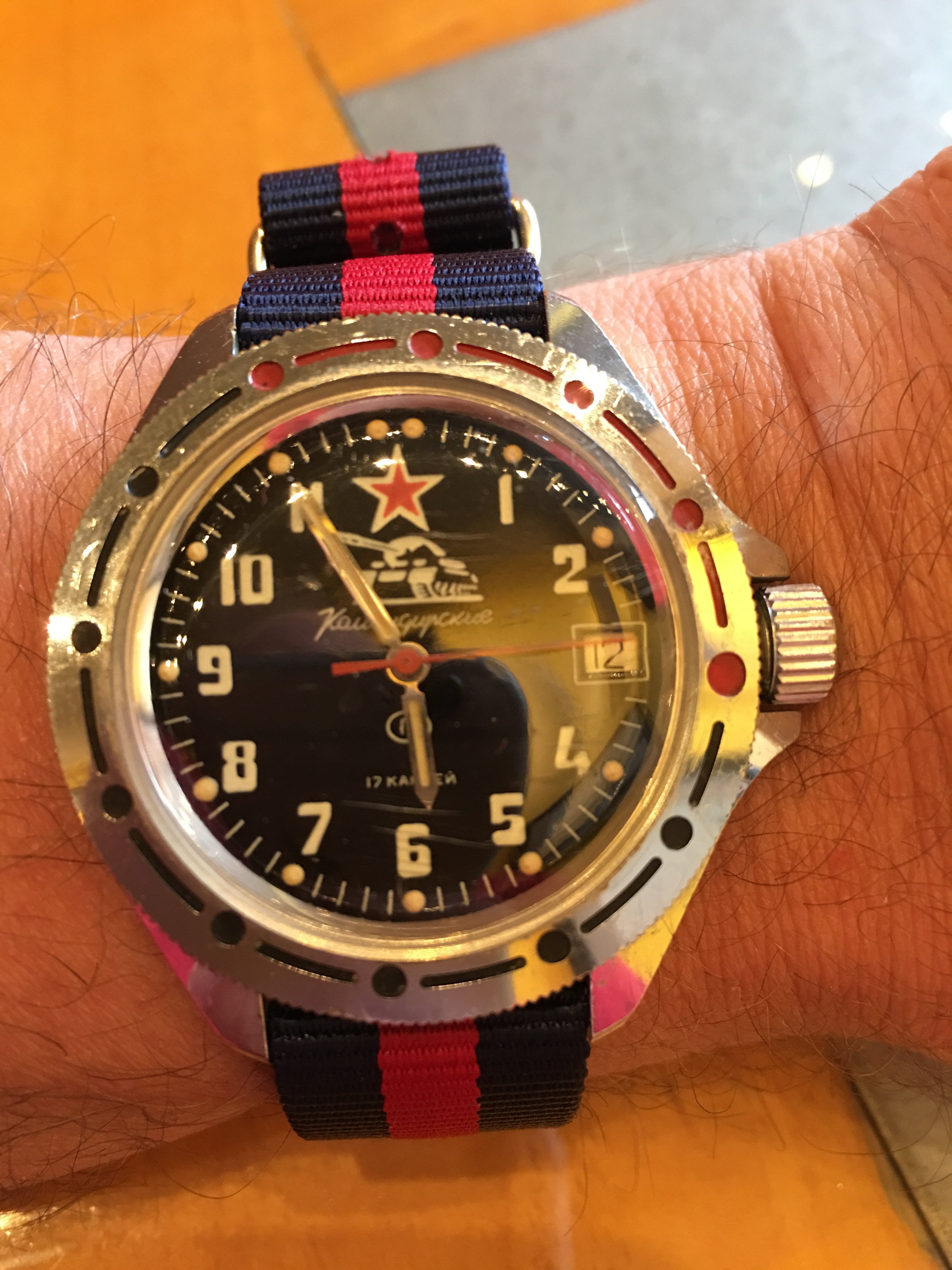 Switching it up for late afternoon early evening yard work. Next to a quartz Tissot this one is always bang on the minute keeping time. Built like a.....tank?