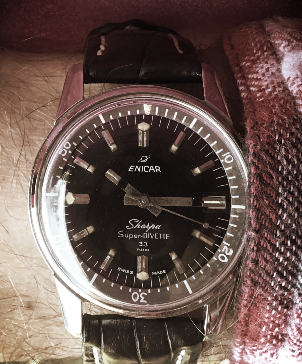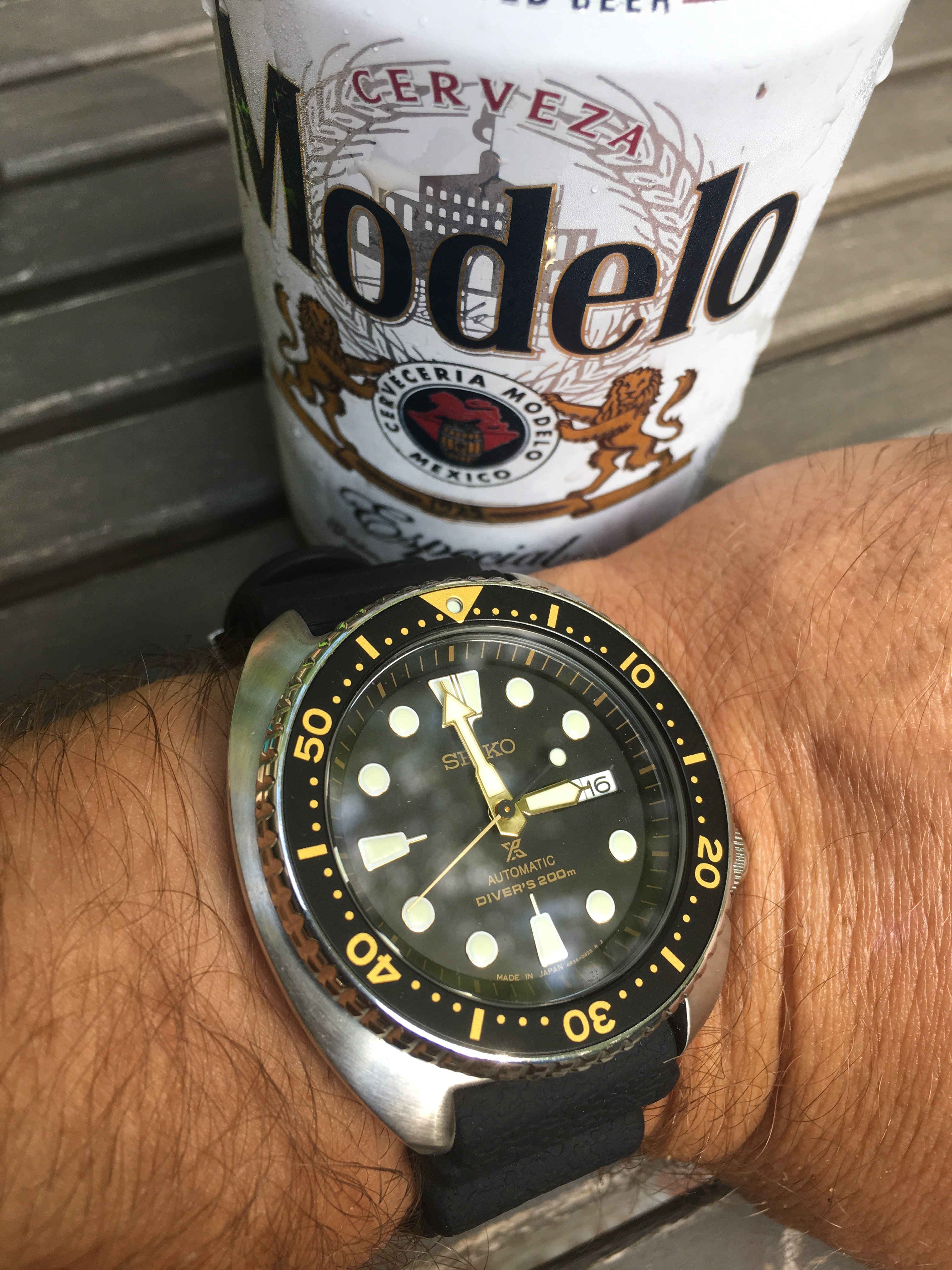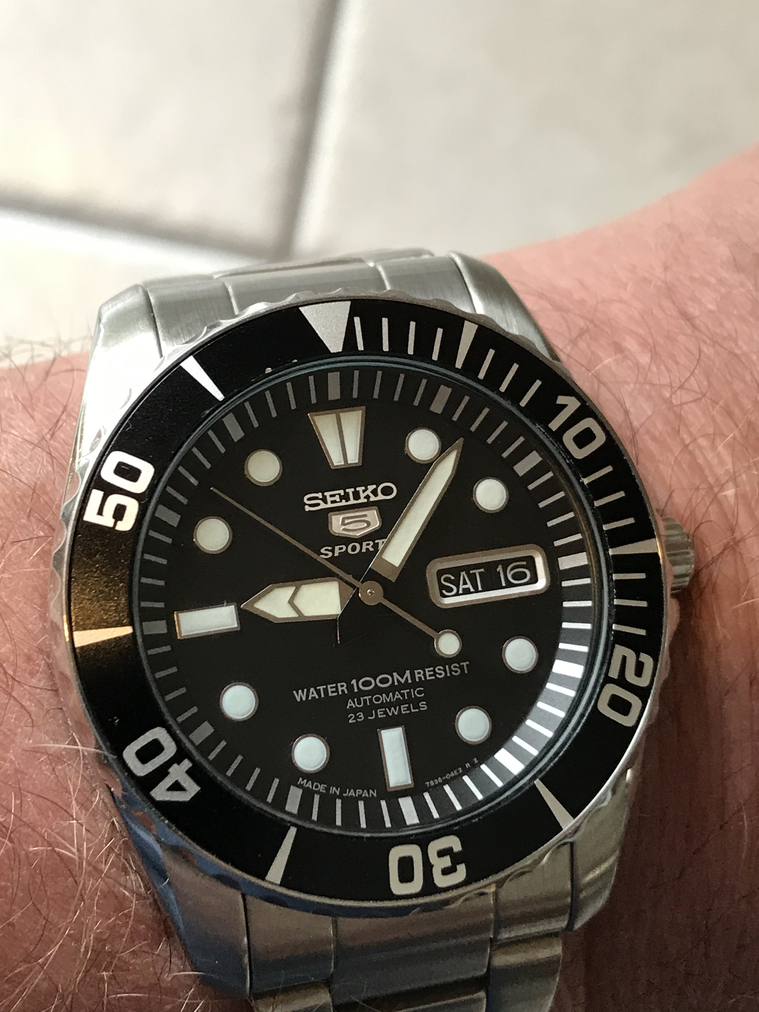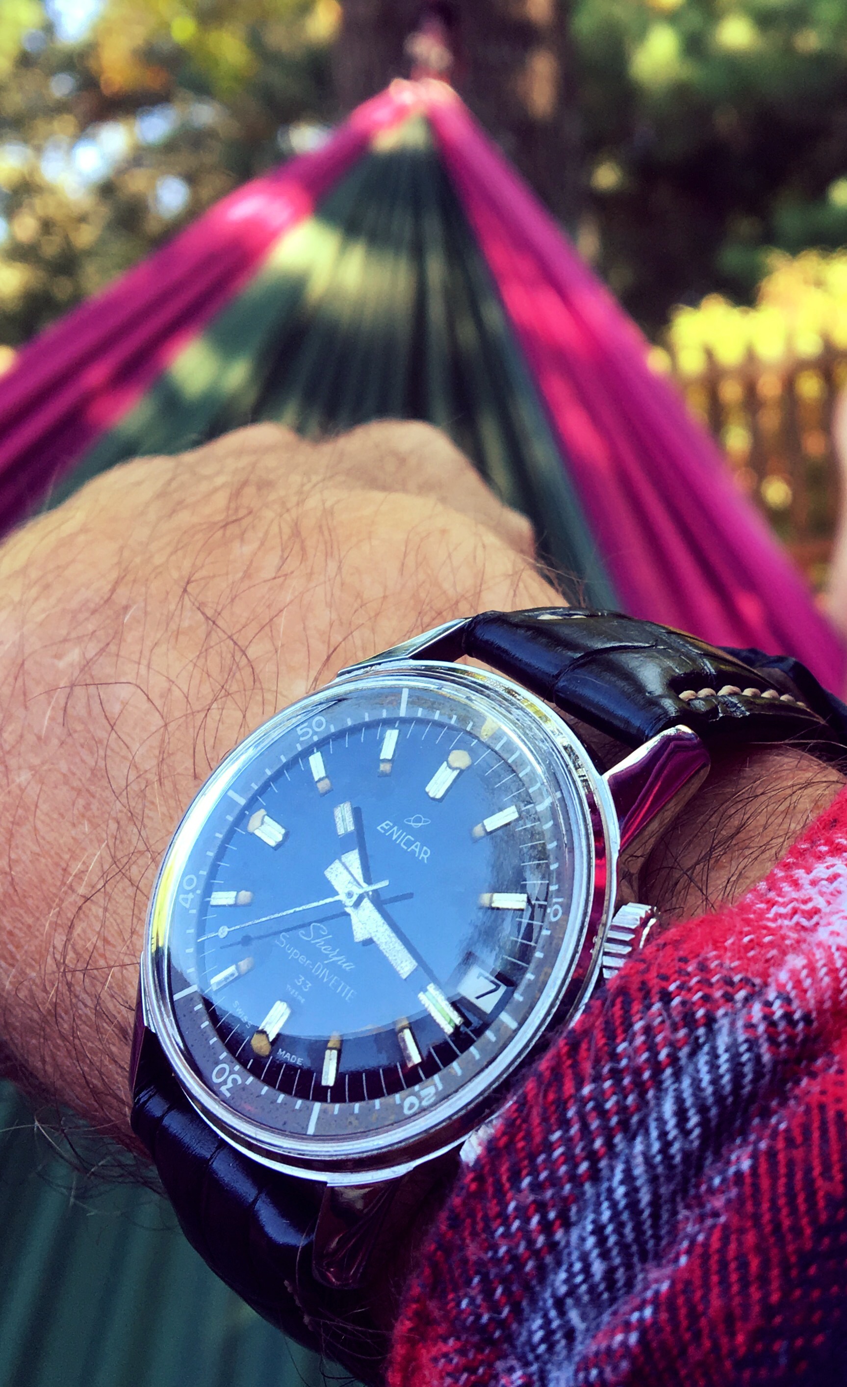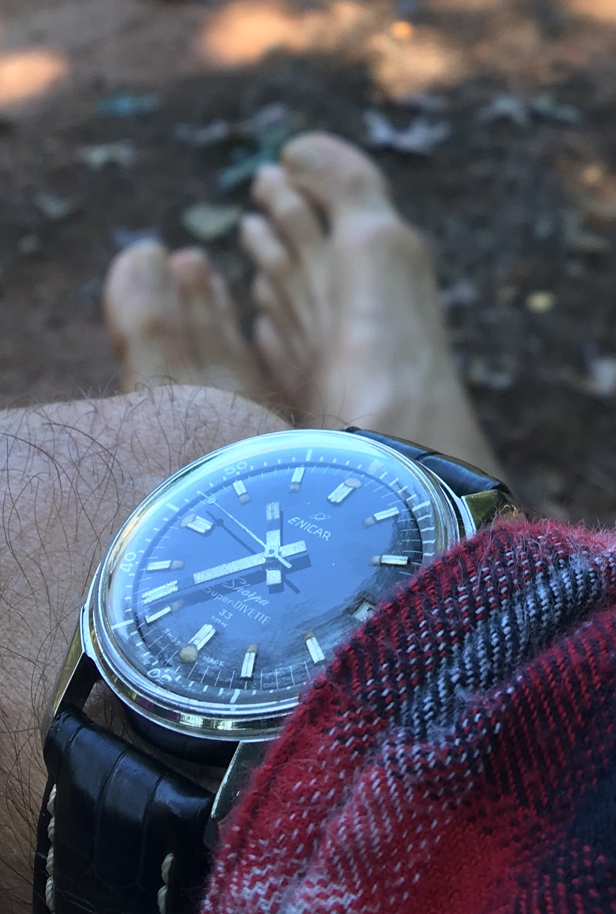 This picture was taken 17 days ago, but the watch is still on my wrist where it has been for 49 days. 21 seconds slow this morning which averages to less than 1/2 second per day, slow. Not bad for a 28-year old watch, I'd say.
