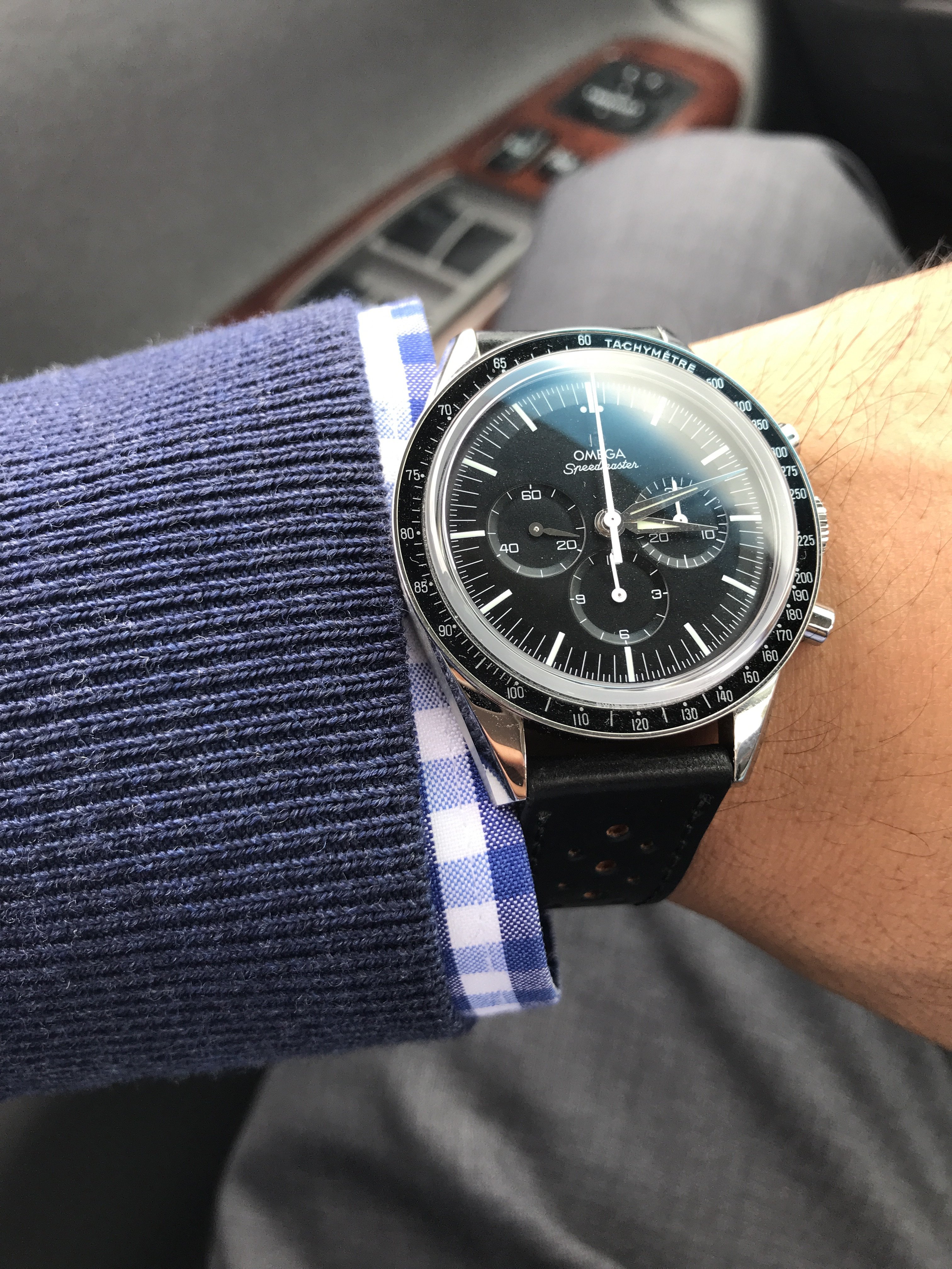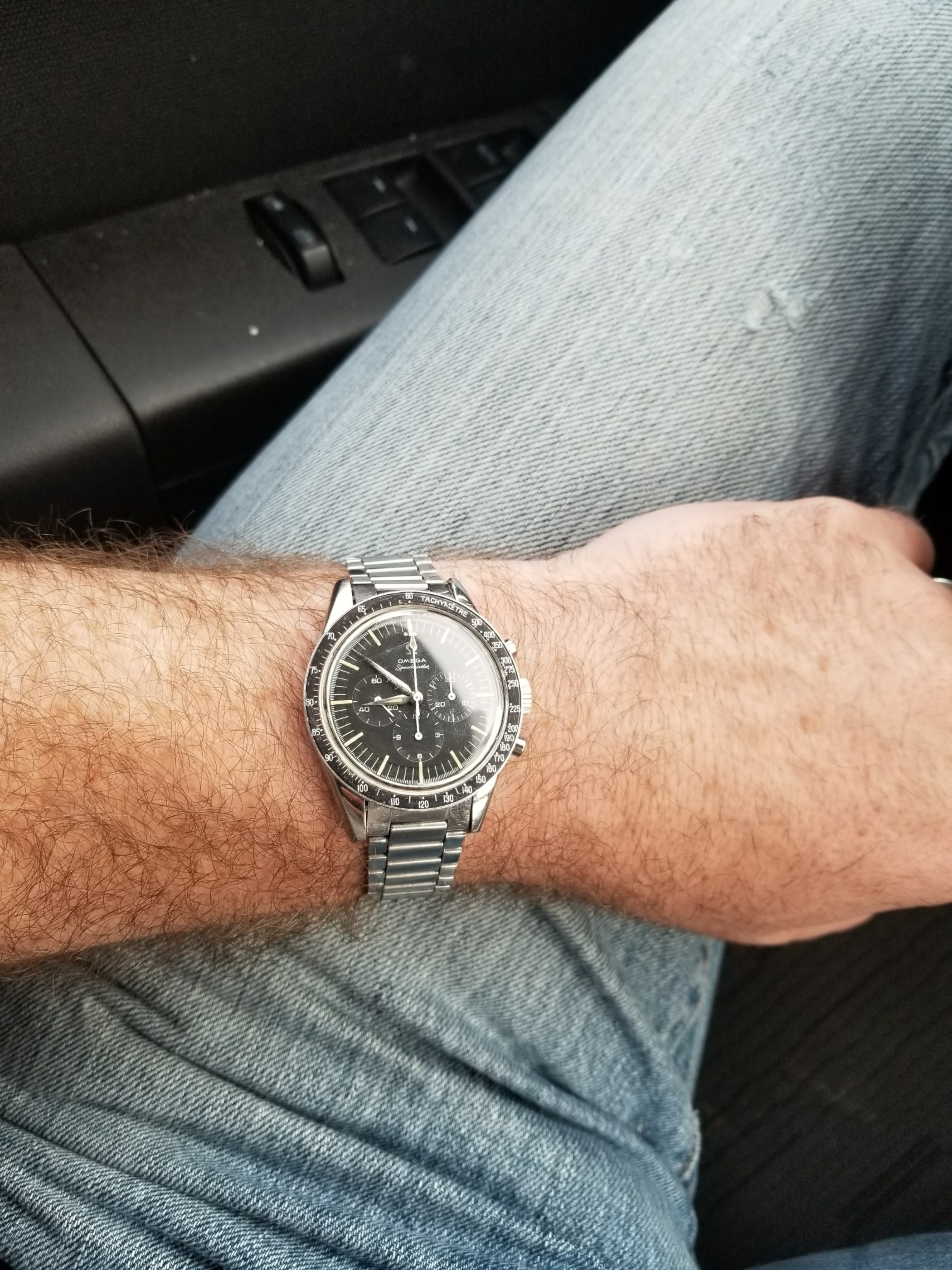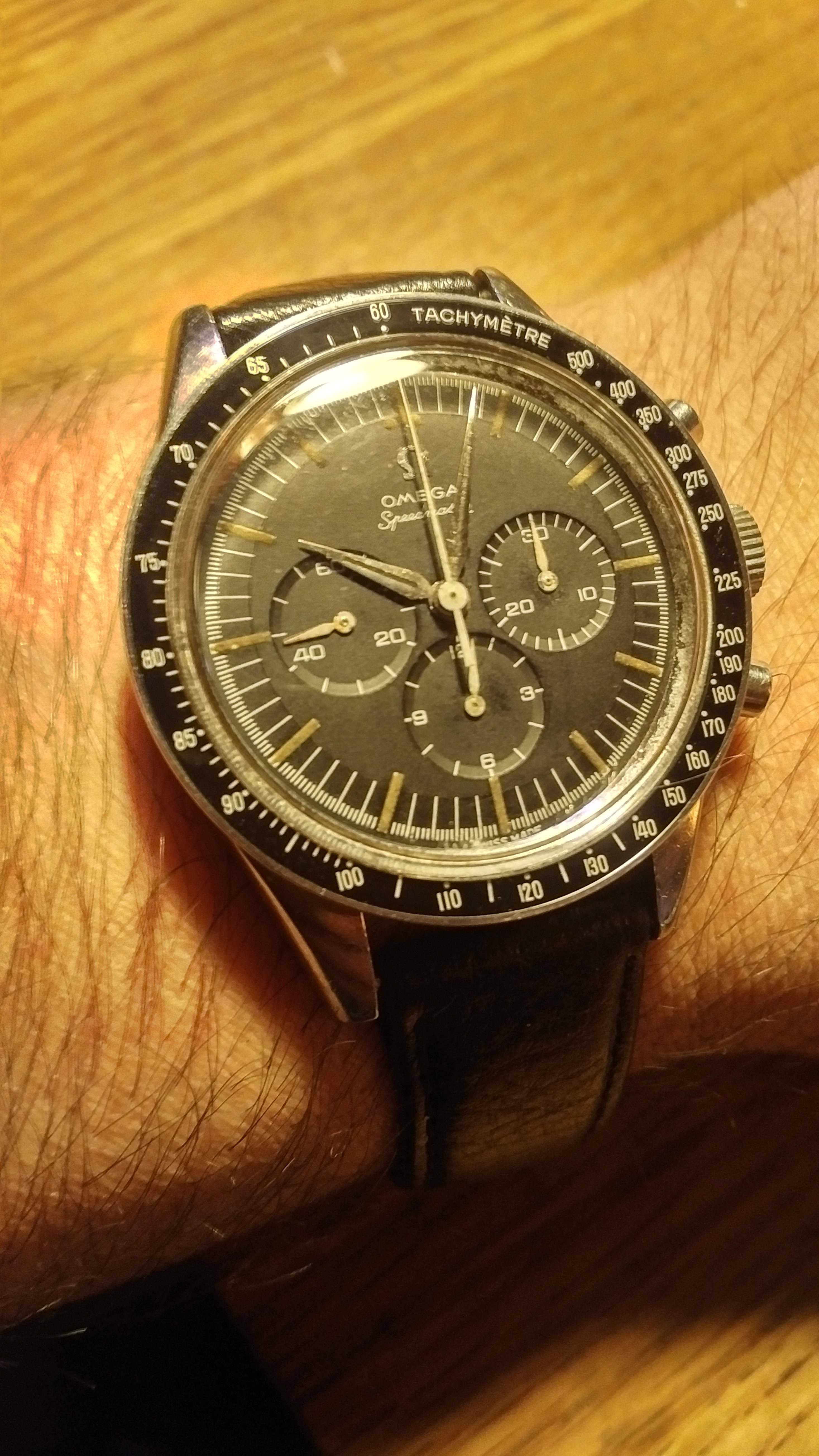 Just as I was about to go take a shower, I realised this guy almost missed his first Speedy Tuesday! Still has the later bezel and Crown; still has a problem with the hour register hand but is now all serviced and wearable. Will have to drop Mr. Freese an email to see what issues he did or didn't find. Still, it's another 2998 brought back to life!