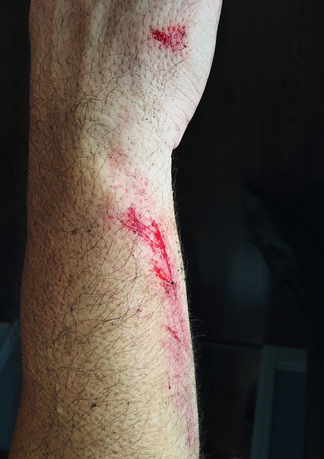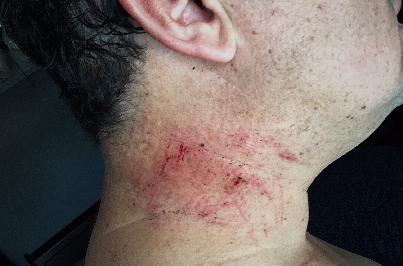 Near the end of the ride, my ambition surpassed my skill (which is very low) and my neck became very acquainted with a tree...