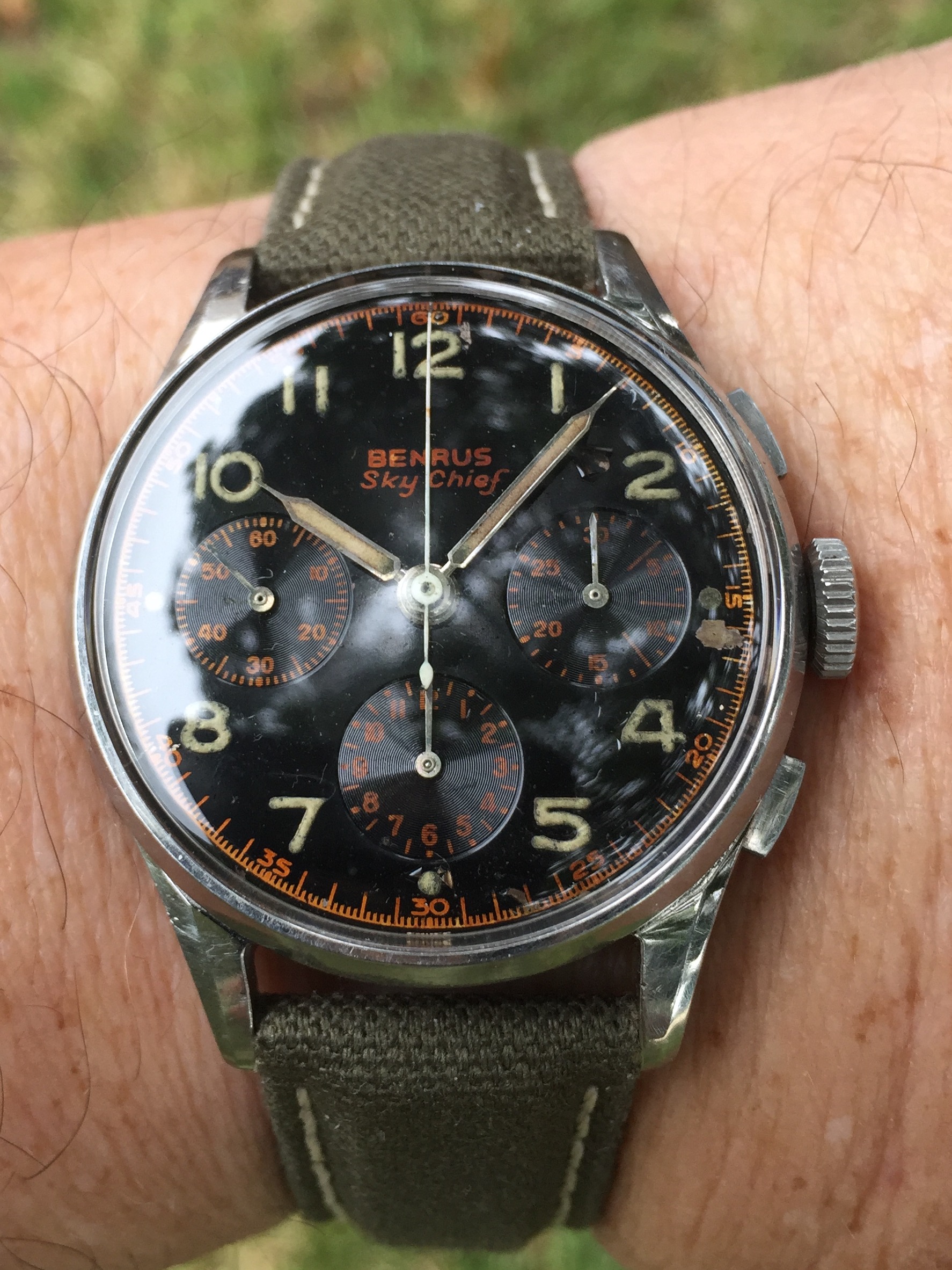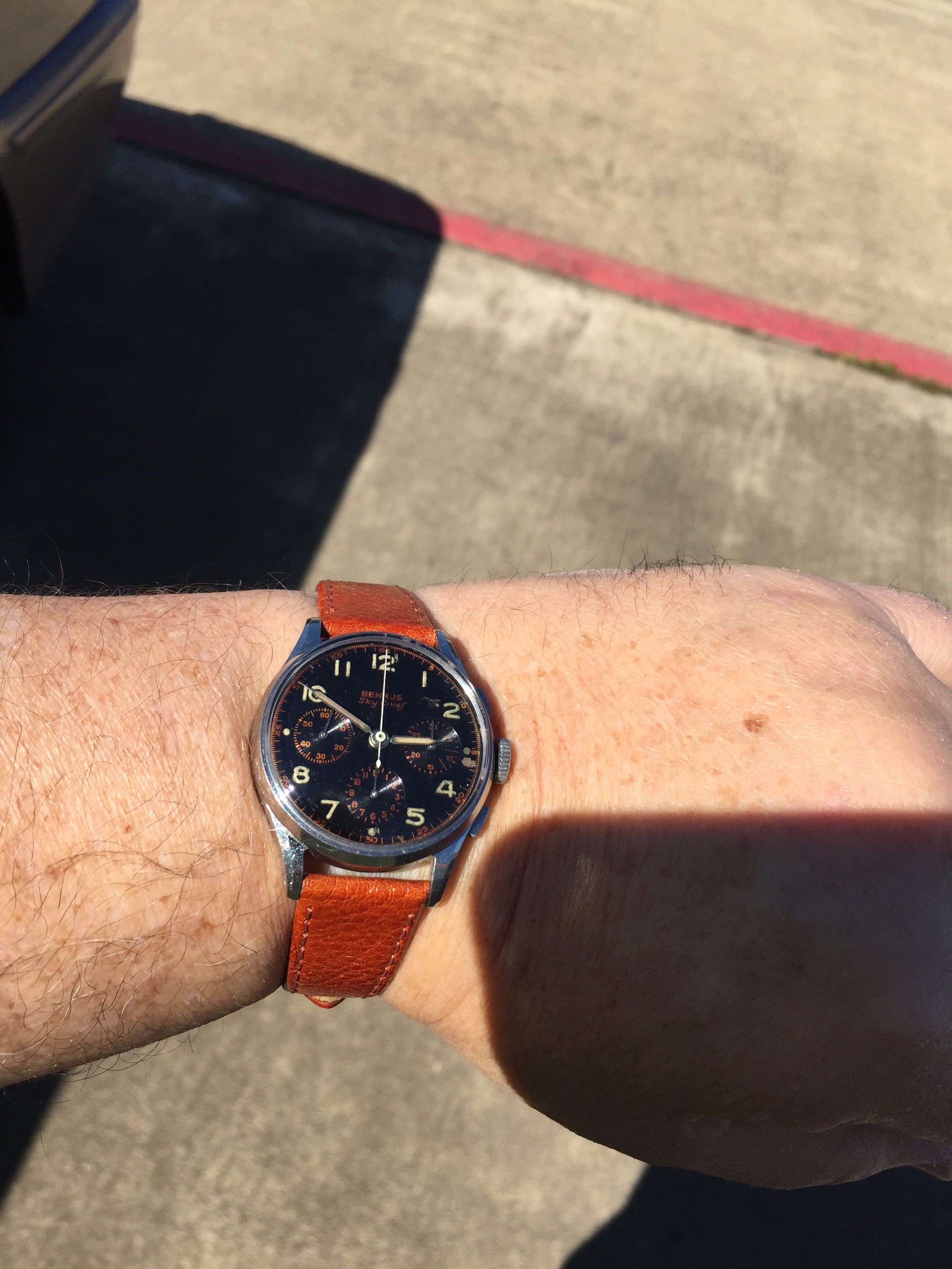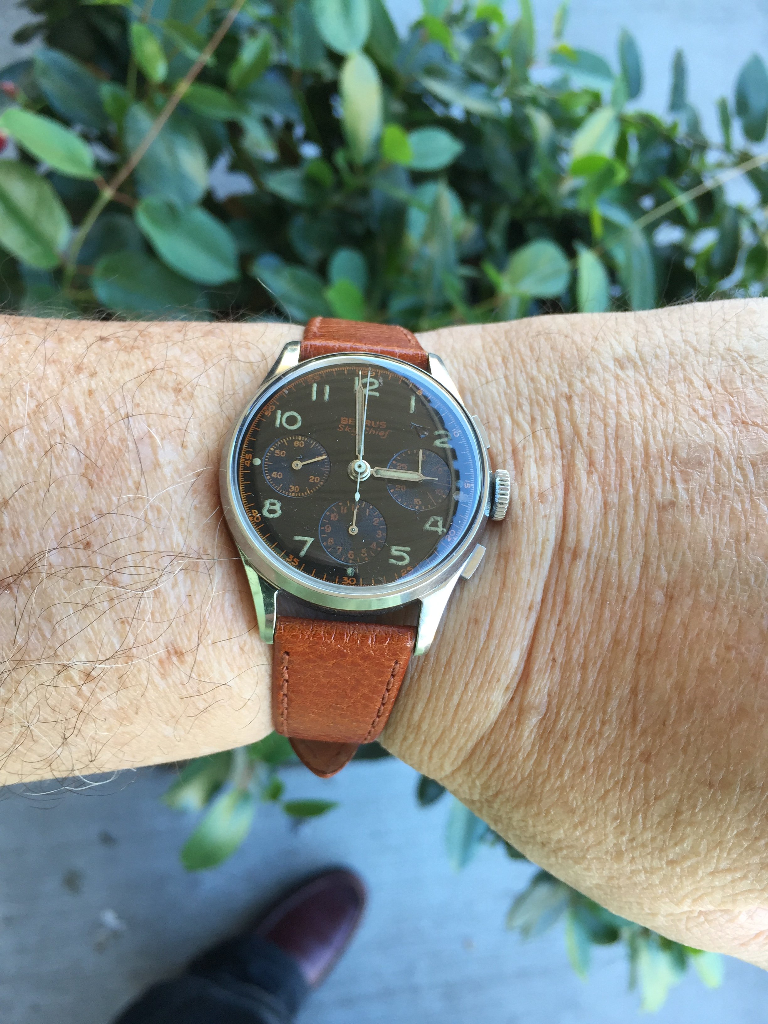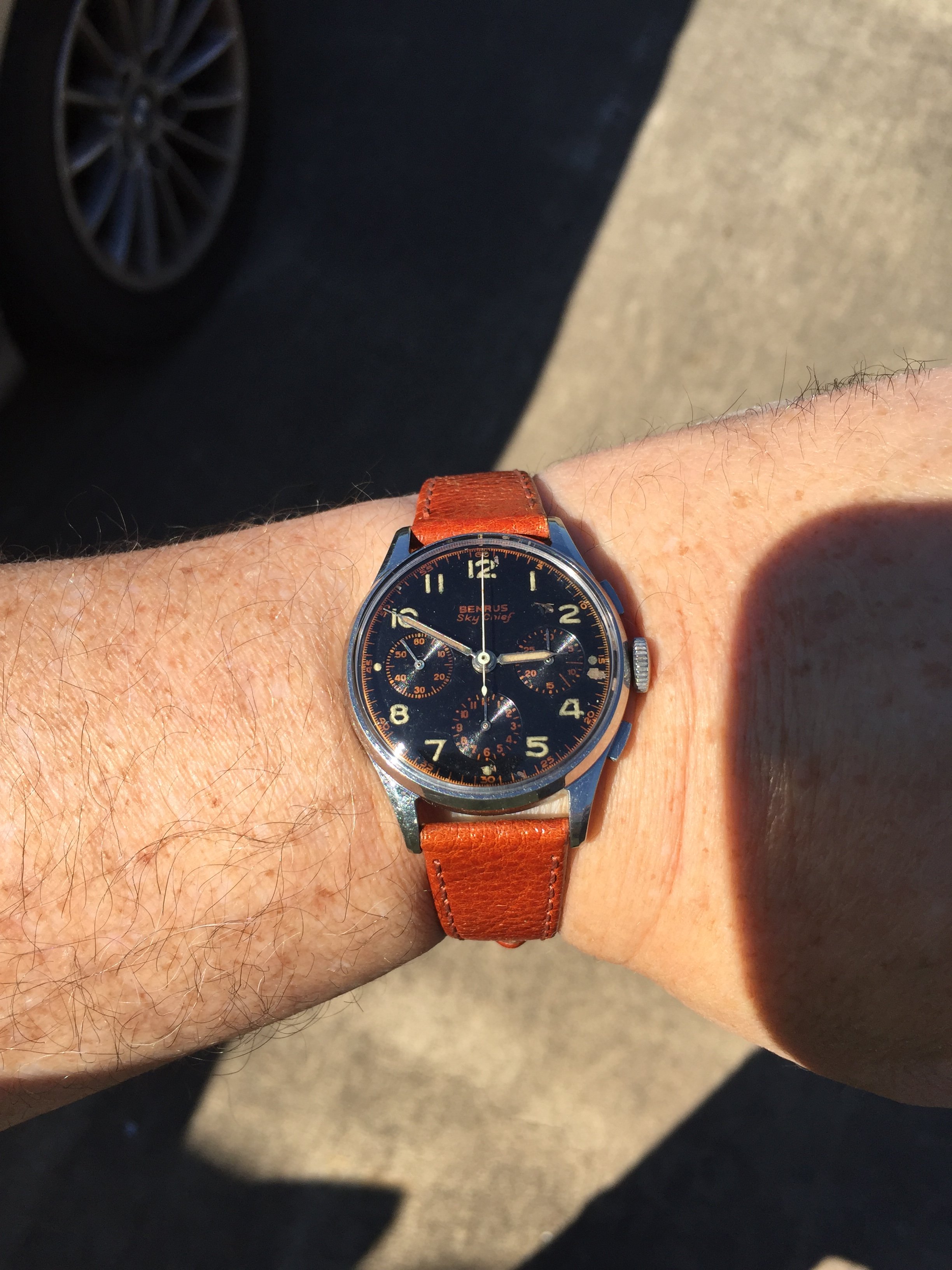 Posts 8,497 Likes 60,666 TexOmega ·Oct 7, 2017 Val 72 Benrus Sky Chief with gilt graphics I call it my Halloween watch Strap finally came today Ah, that's better.... vintage pig in aged cognac Edited: Oct 7, 2017