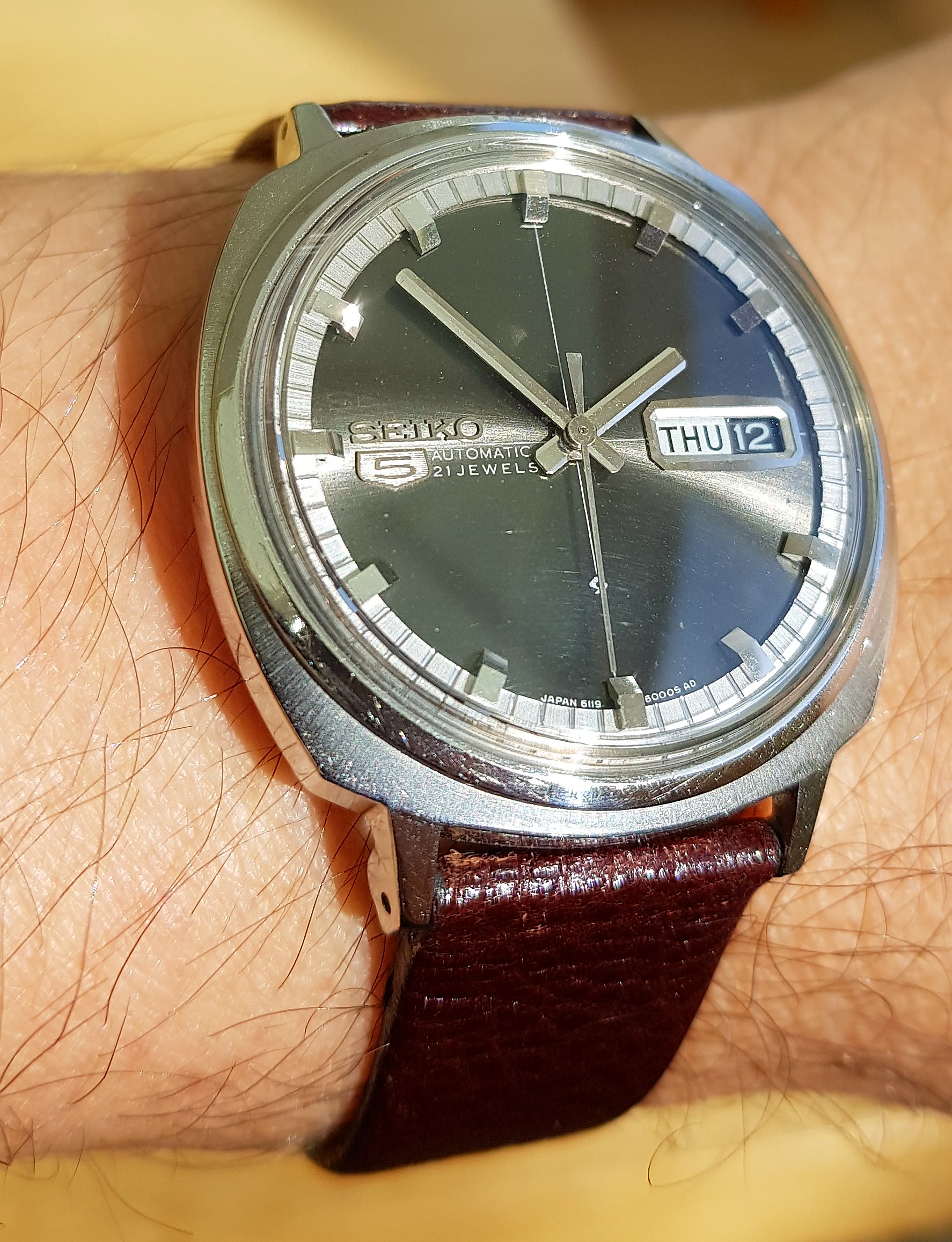 Posts 1,319 Likes 6,017 ewand ·Oct 12, 2017 Interesting little Seiko from 1970, in "Camaro style" case (if you half close your eyes and squint...) 6119-6003