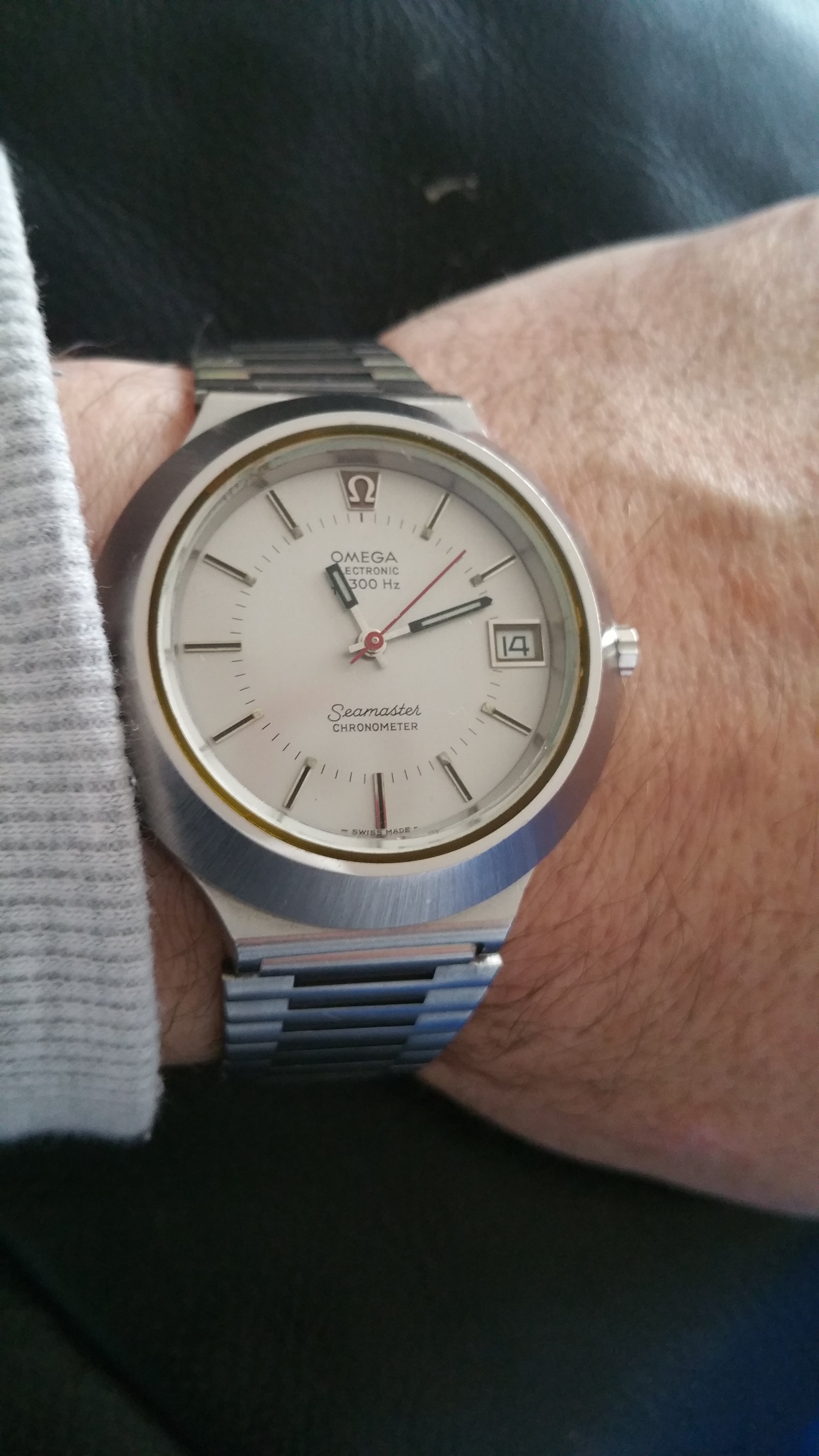 Posts 2,463 Likes 19,760 Dr No ·Oct 13, 2017 No.15 Seamaster Cosmic today. Seen that dial only once before - very cool! Art