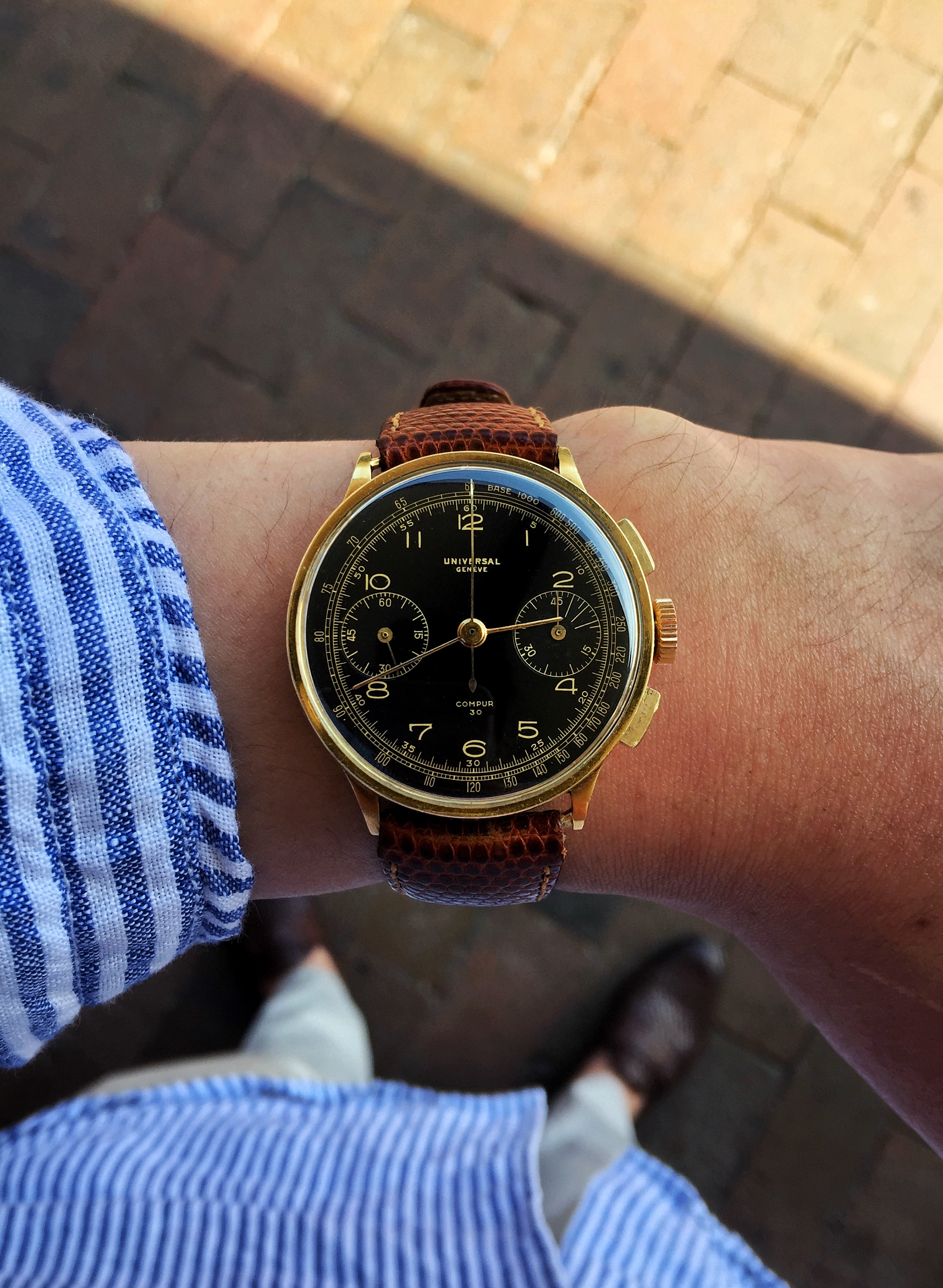 Posts 598 Likes 3,196 Aussie Jim ·Oct 14, 2017 Dre Black gilt dial Monday Have you actually cornered the entire market for Universal? Or does it just seem like that? Every day seems like a new and beautiful watch comes out. How many in the entire collection?