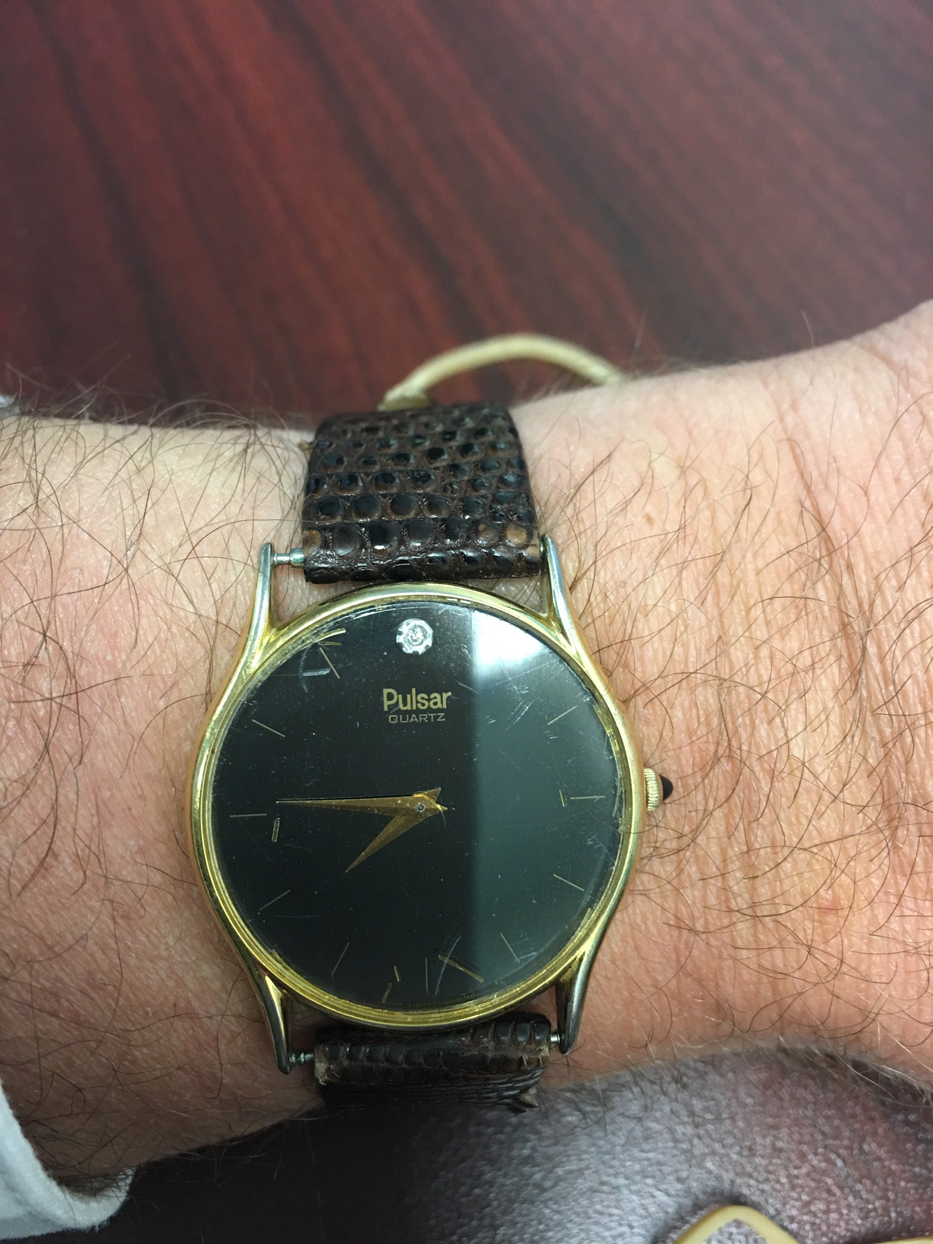 This watch was a gift from my mom when I graduated high school and it's never gotten it's due. Yeah it's a quartz and yeah it's a Pulsar which at the time was owned by Seiko. Not an expensive watch. But I thought it was super cool at the time and loved it.