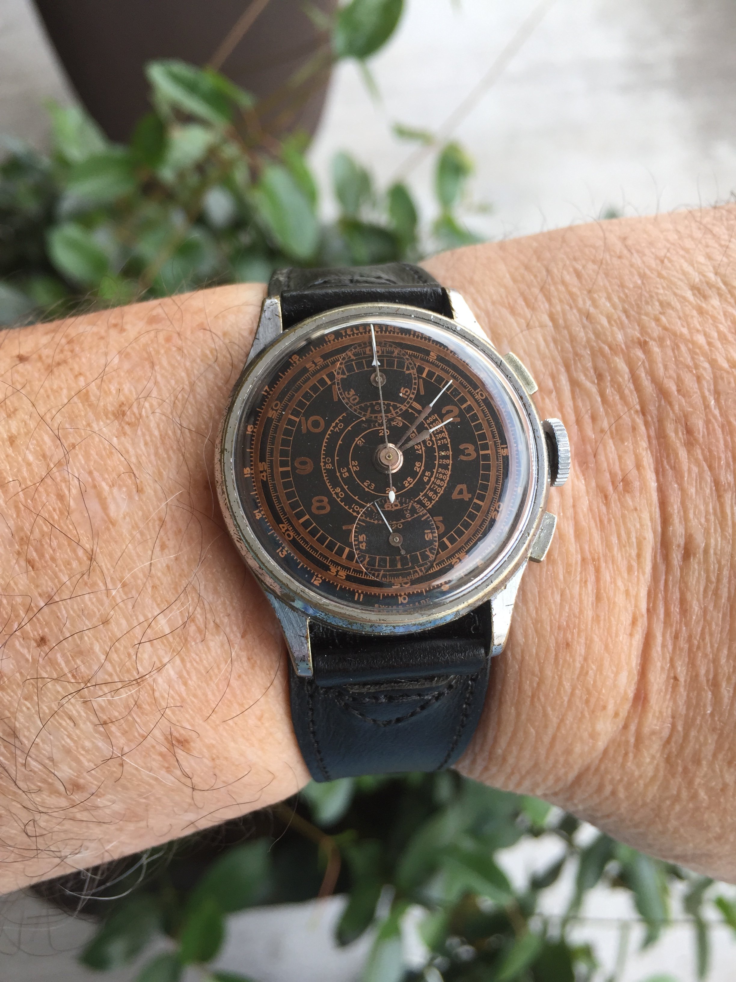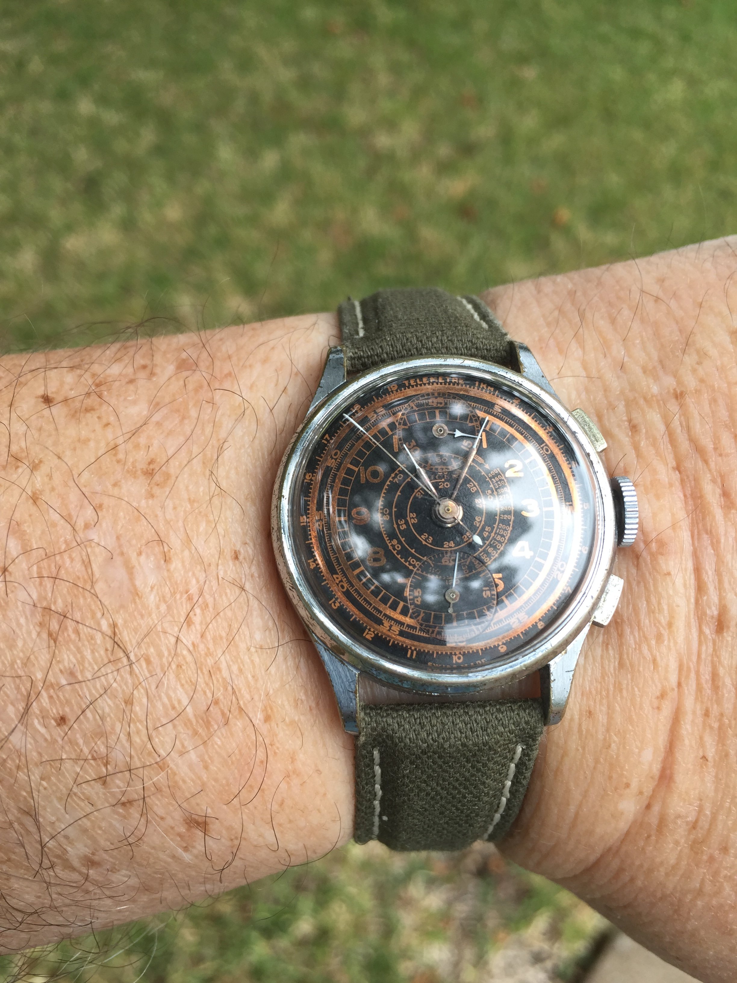 Posts 8,510 Likes 60,797 TexOmega ·Oct 21, 2017 NICELY Chronograph by Breitling mid-late thirties. Venus cal 170 New strap Edited: Oct 21, 2017