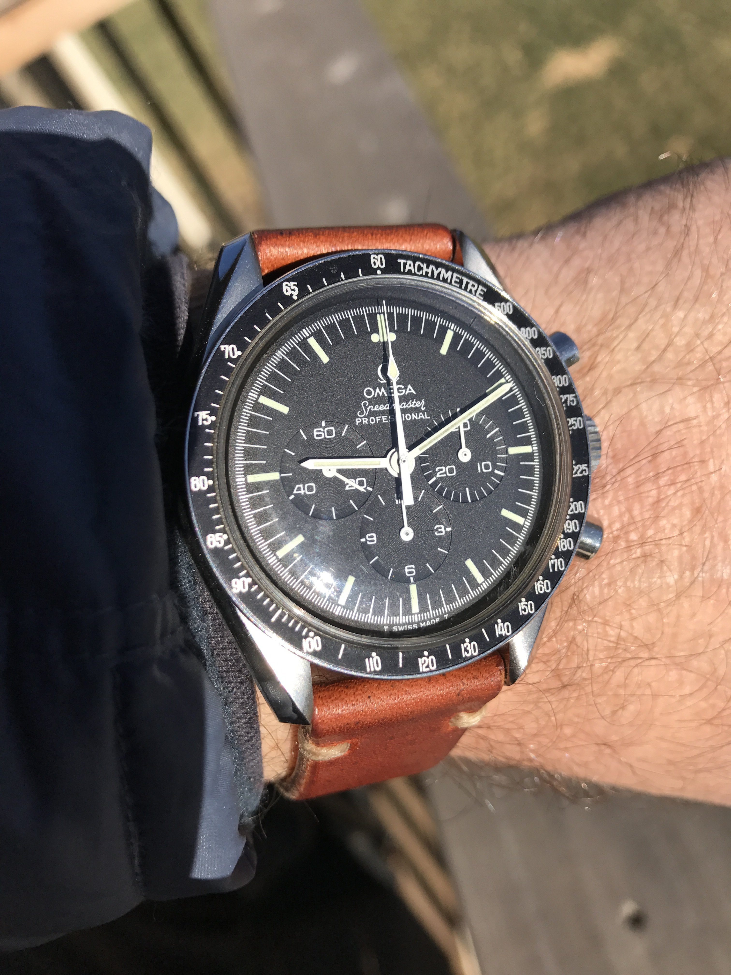 Posts 838 Likes 3,275 KstateSkier 路Oct 23, 2017 Speedy on leather today. Love the way a rich brown leather changes the colors in the dial.