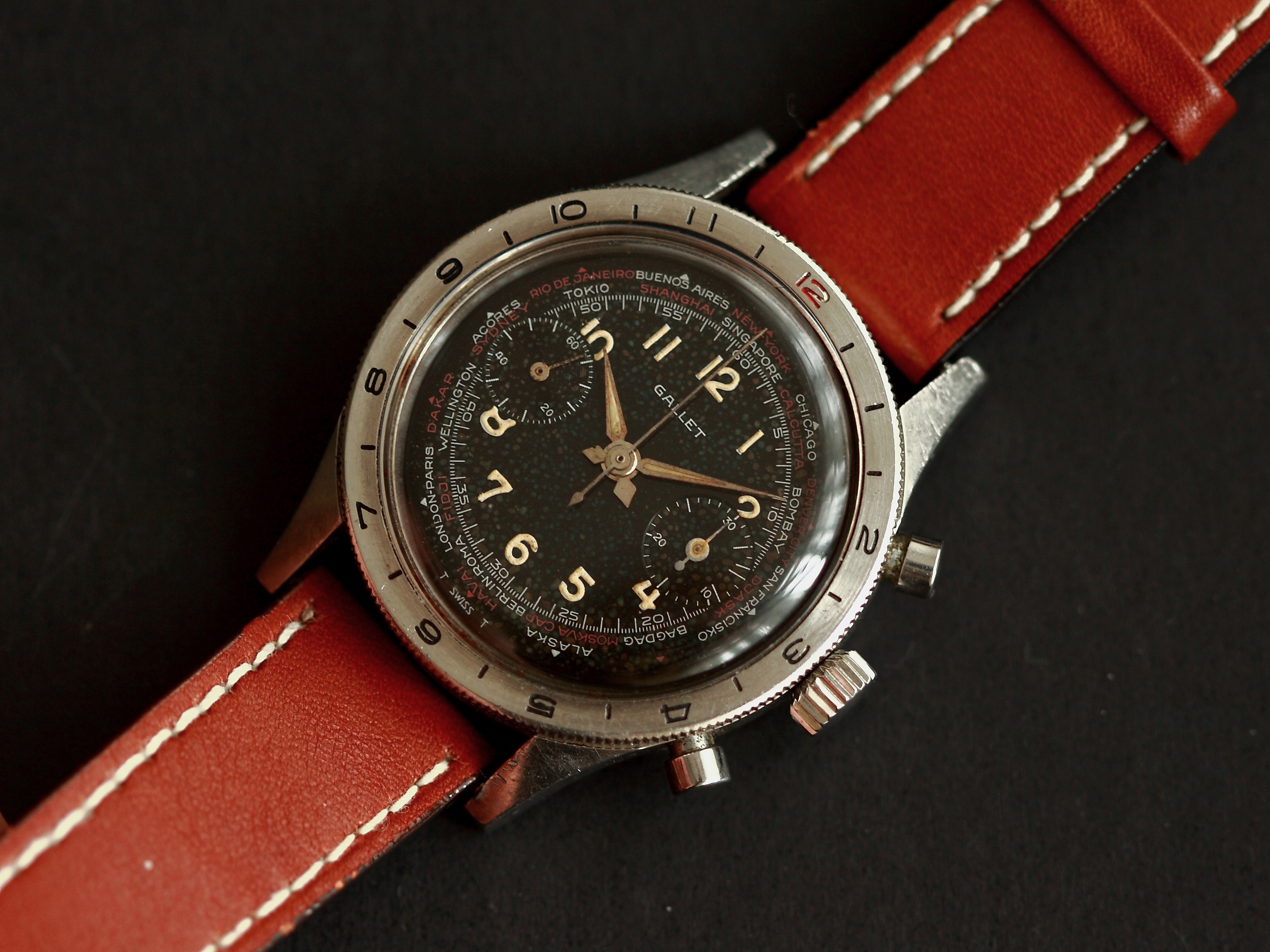 However, Gallet was experimenting with silver gilt on black enamel dialed multichron 12's (Jim Clark prototypes) during this time period.
