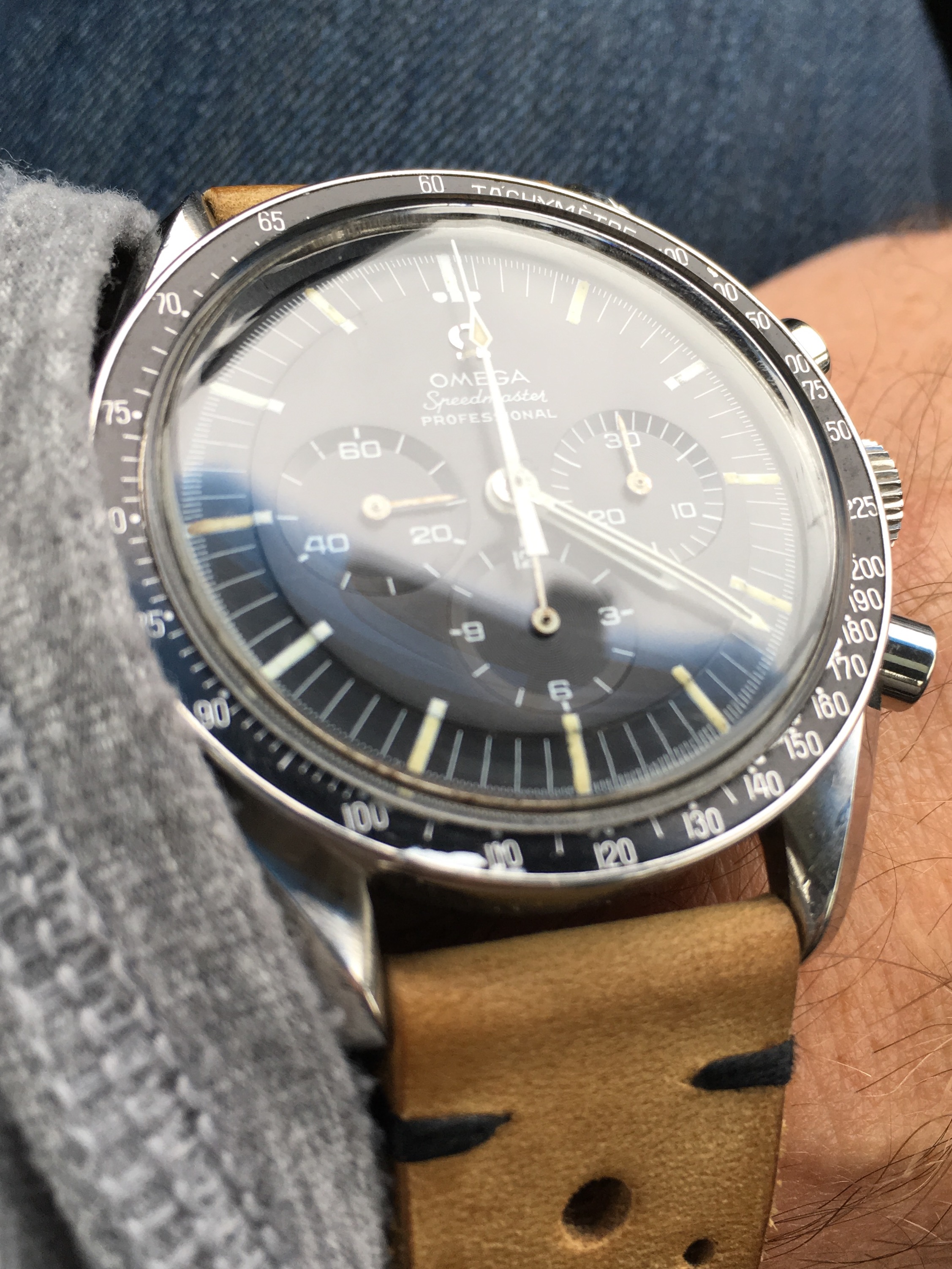 My one and only Speedy. I am only the second owner. Given a proper hard life since the first owner bought her new in October 1965. Total impulse buy for me and until then I had never seen one of these never mind knowing anything about don bezels, short pushers, 321 and so on. None of which is relevant to my ownership in any case. She will be going to STS again soon for another service. All I need to do is find someone who can put together the bracelet for me....