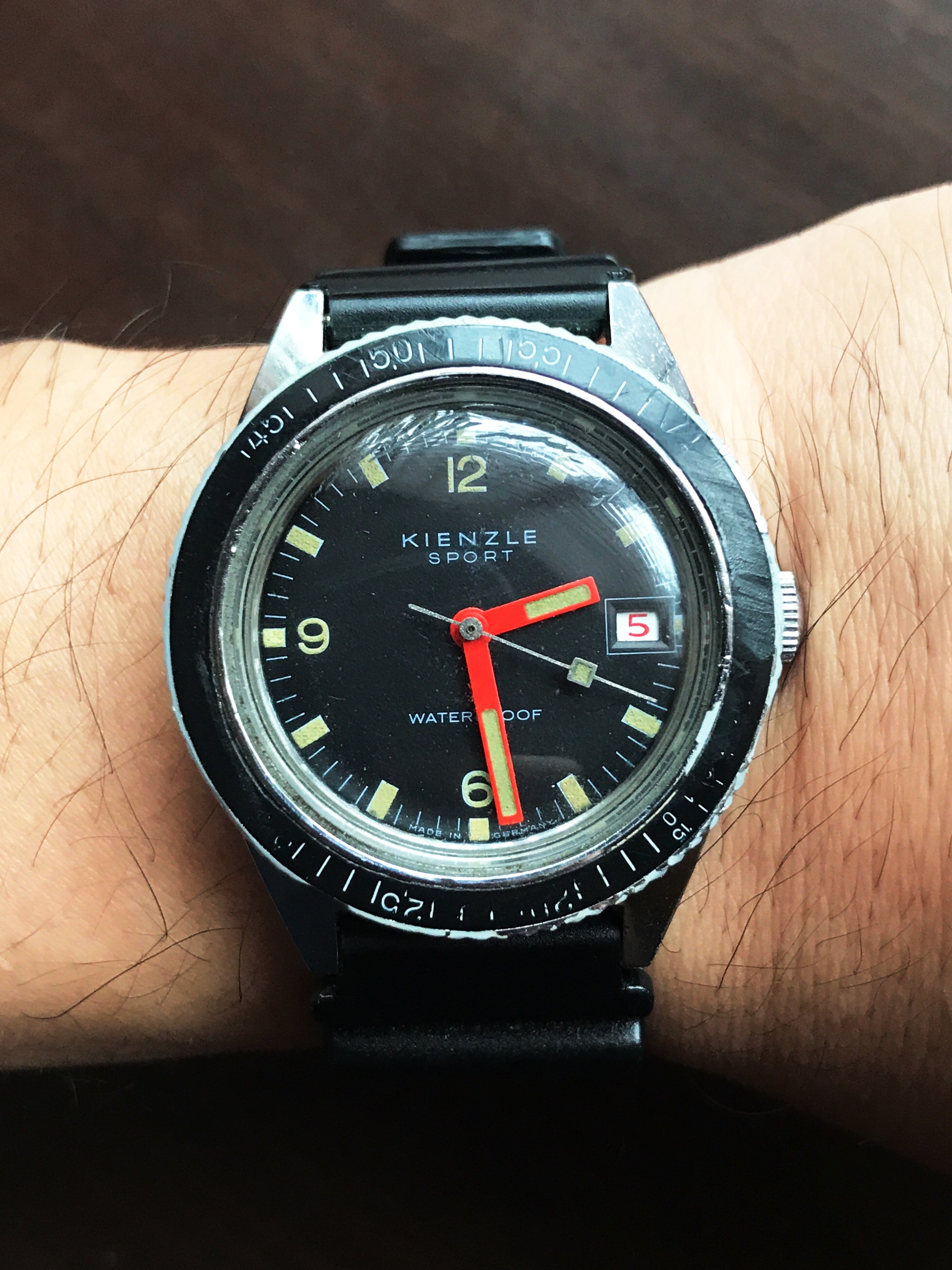 My Kienzle diver wth a one(!) jewel, pin-lever movement. I remember my watchmaker feeling nostalgic servicing this as he claims it was the kind of watch he started working on when he was still a young guy apprenticing under his father back in the days.