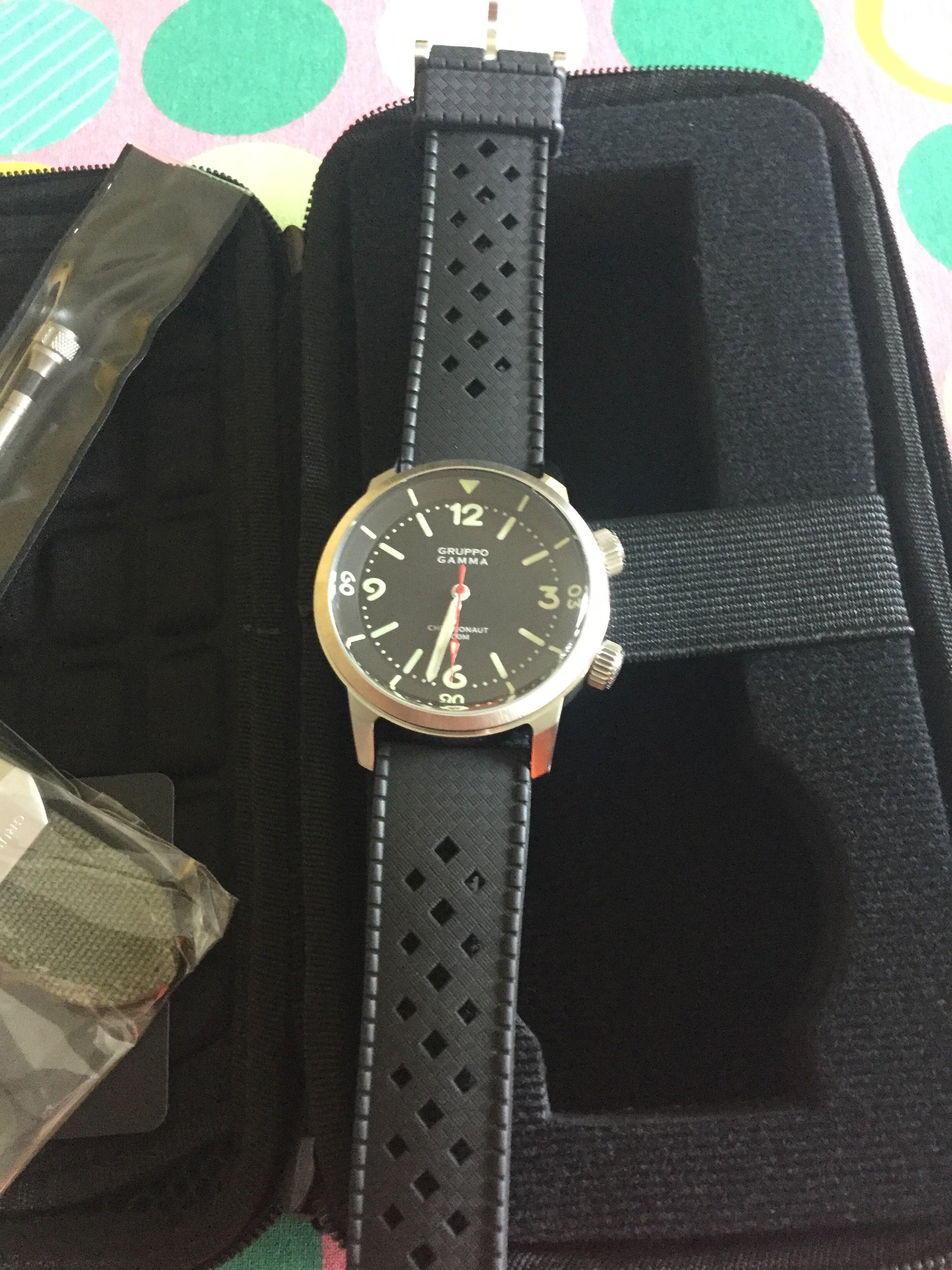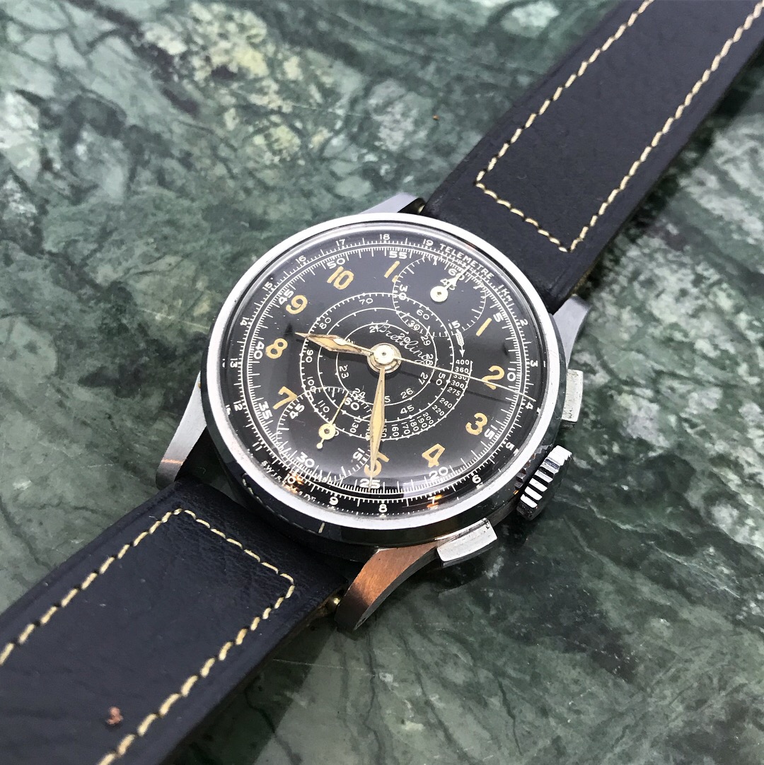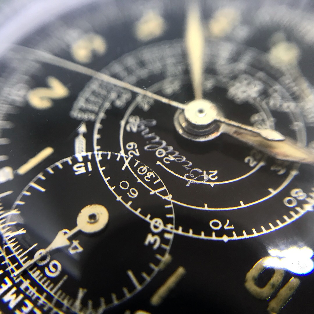 Nothing more than that i just bought it (through a local Auction house). LNOS condition. On a unused strap still with a sticker on the back . It small at 32mm but wears bigger thanks to the thickness/chronograph . Some more pictures