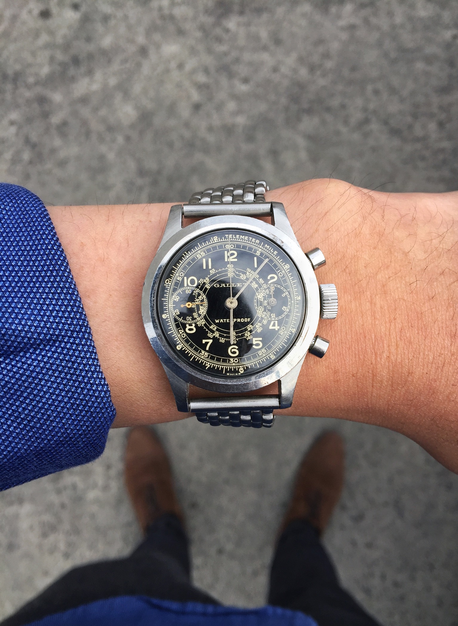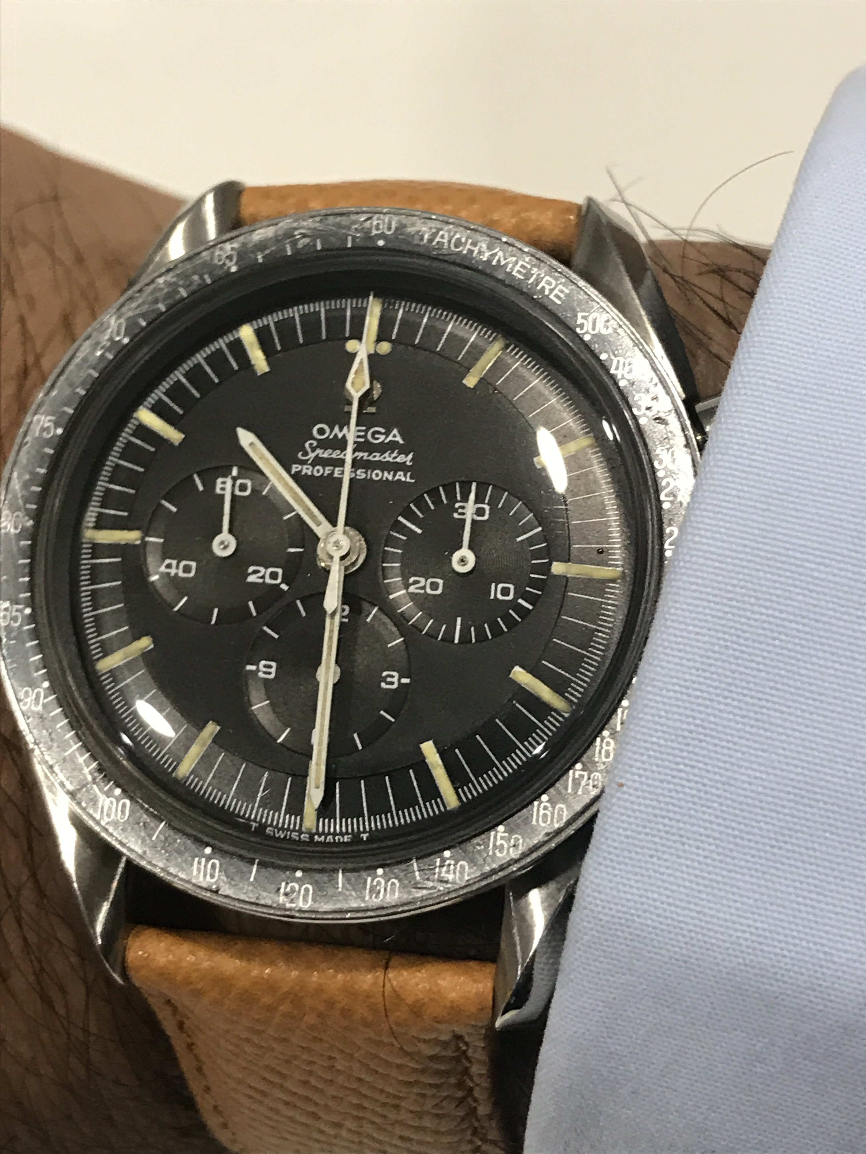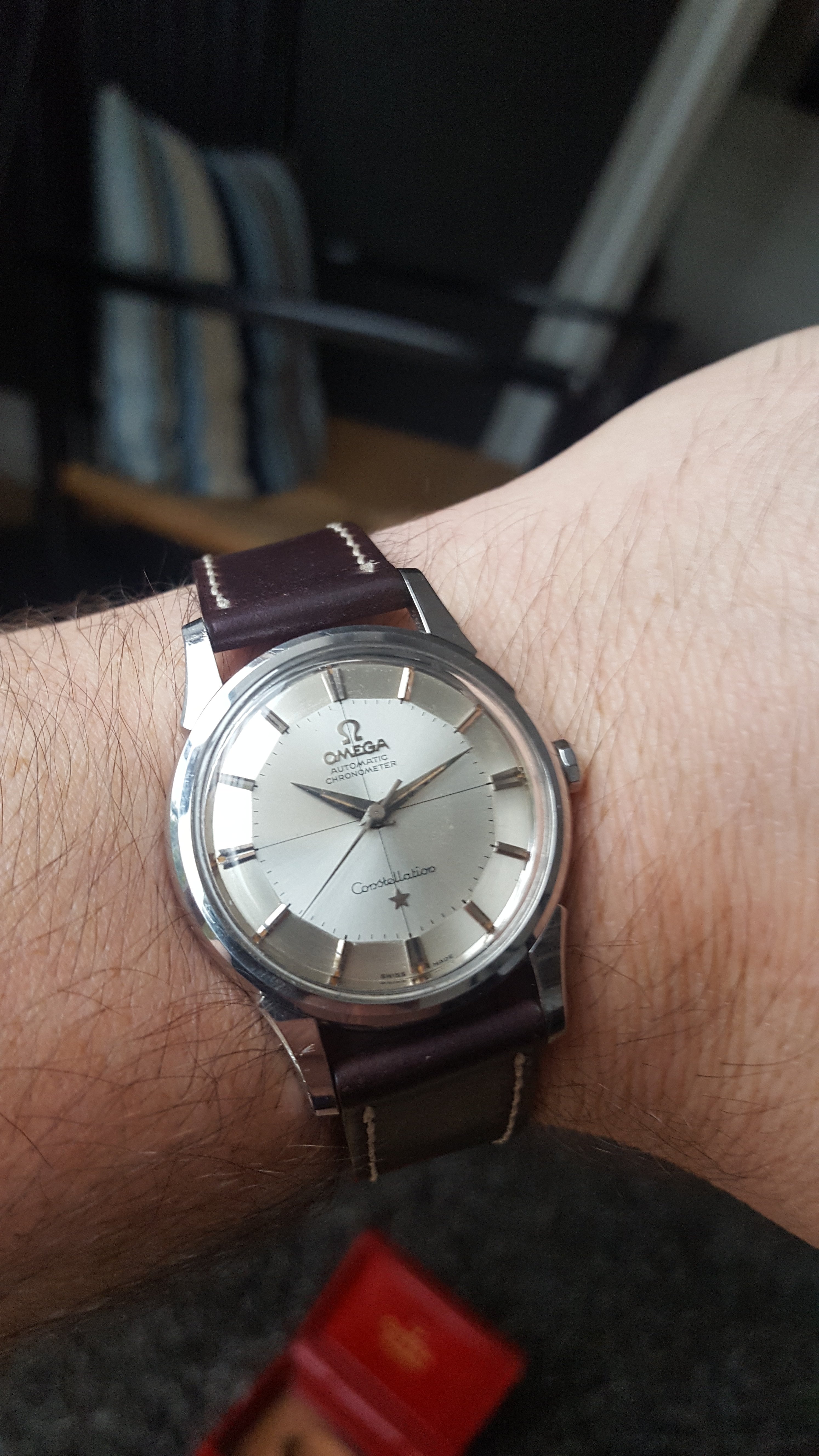 Nothing more than that i just bought it (through a local Auction house). LNOS condition. On a unused strap still with a sticker on the back . It small at 32mm but wears bigger thanks to the thickness/chronograph . Some more pictures
