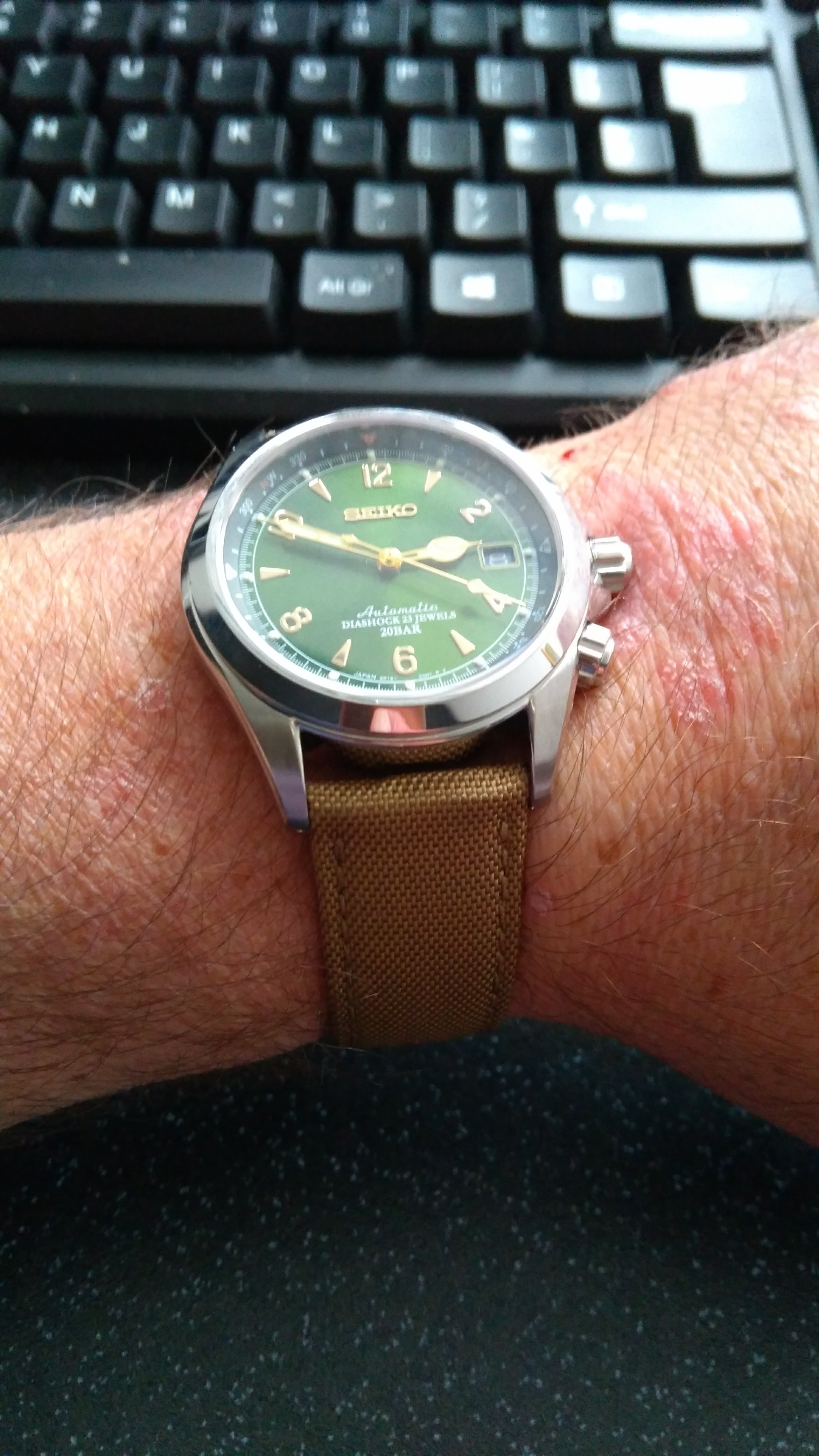Just as a brief followup to a recent post of my newly arrived Seiko SARB017. The supplied strap is generally acknowledged to be the weakest part of the package, so I decided to order an alternative. Changing straps is about the limit of my technical watch prowess. Add that to my essential Scottishness and the strap in the pictures seems to meet all my needs. For those interested, it's a Geckota Nylon Sport (Gold). It arrived within 36 hours of ordering and came securely packaged with three springbars and a free polishing cloth. Not bad for the princely sum of £12.00 😁