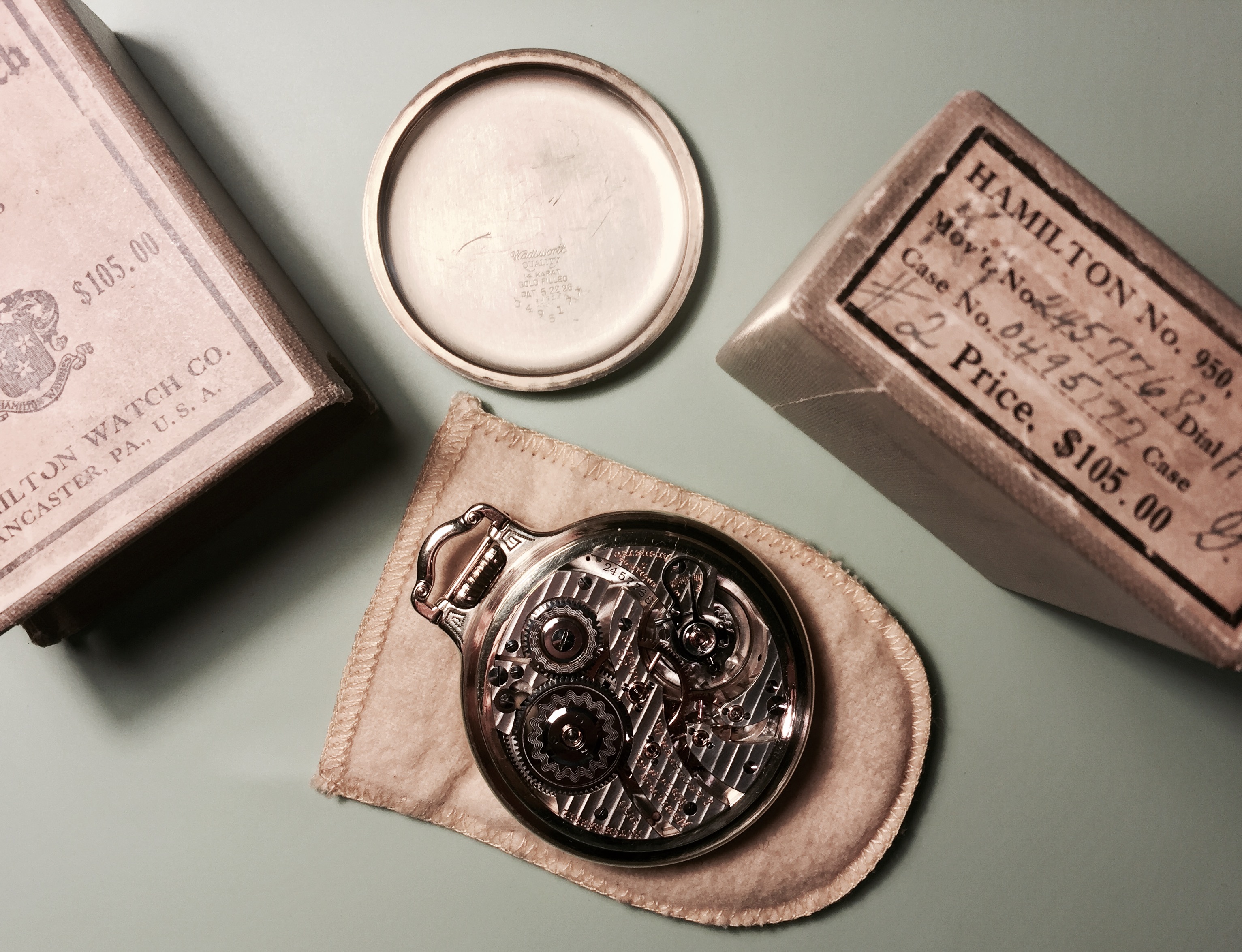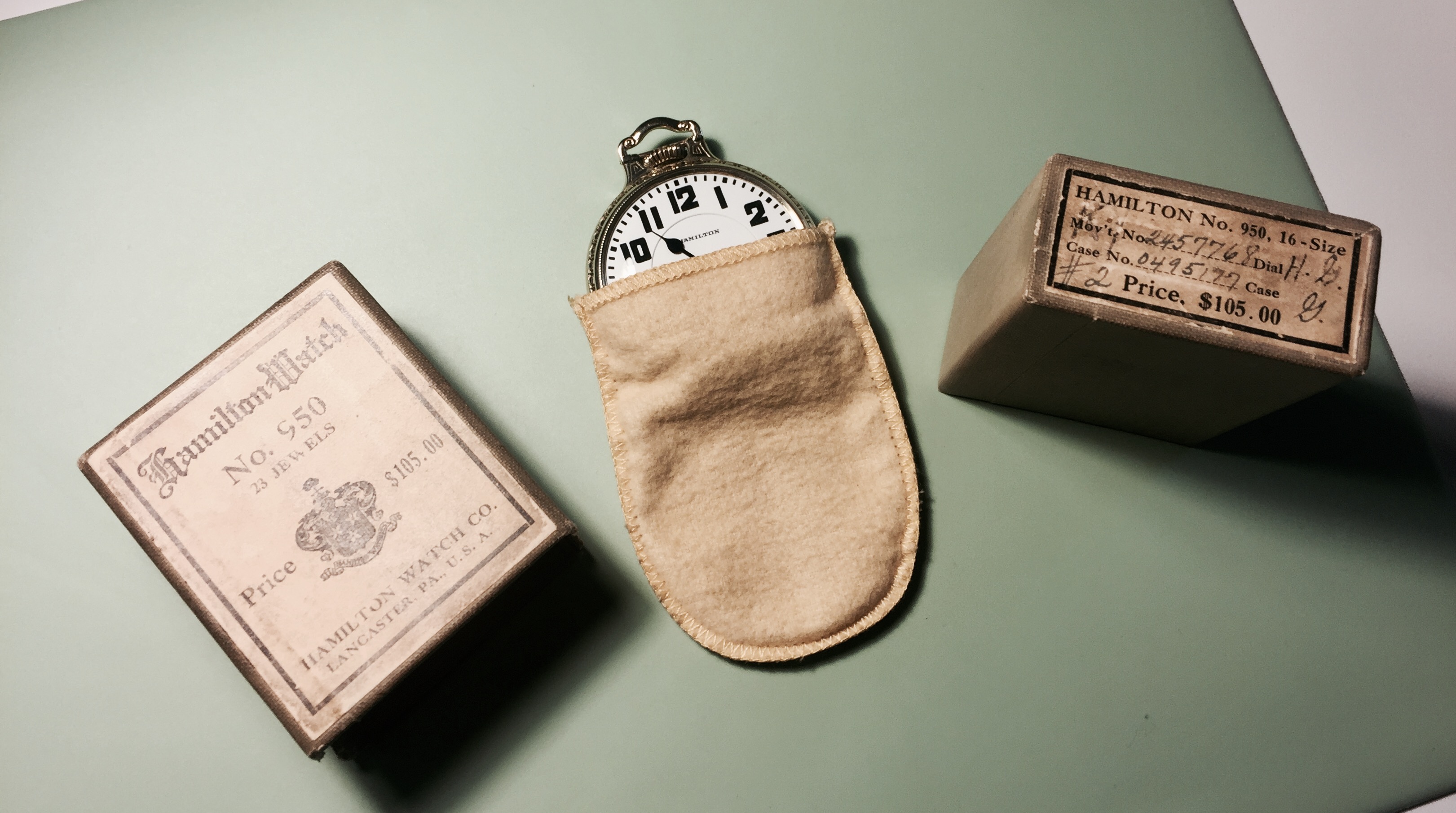 ·For today, wearing my railroad grade 23j Hamilton 950...pictured with its original matching box regarding movement number, case number and heavy gothic [H.G.] dial. I'd wear the box around since I think it's cool...but that probably wouldn't be too smart regarding box preservation...