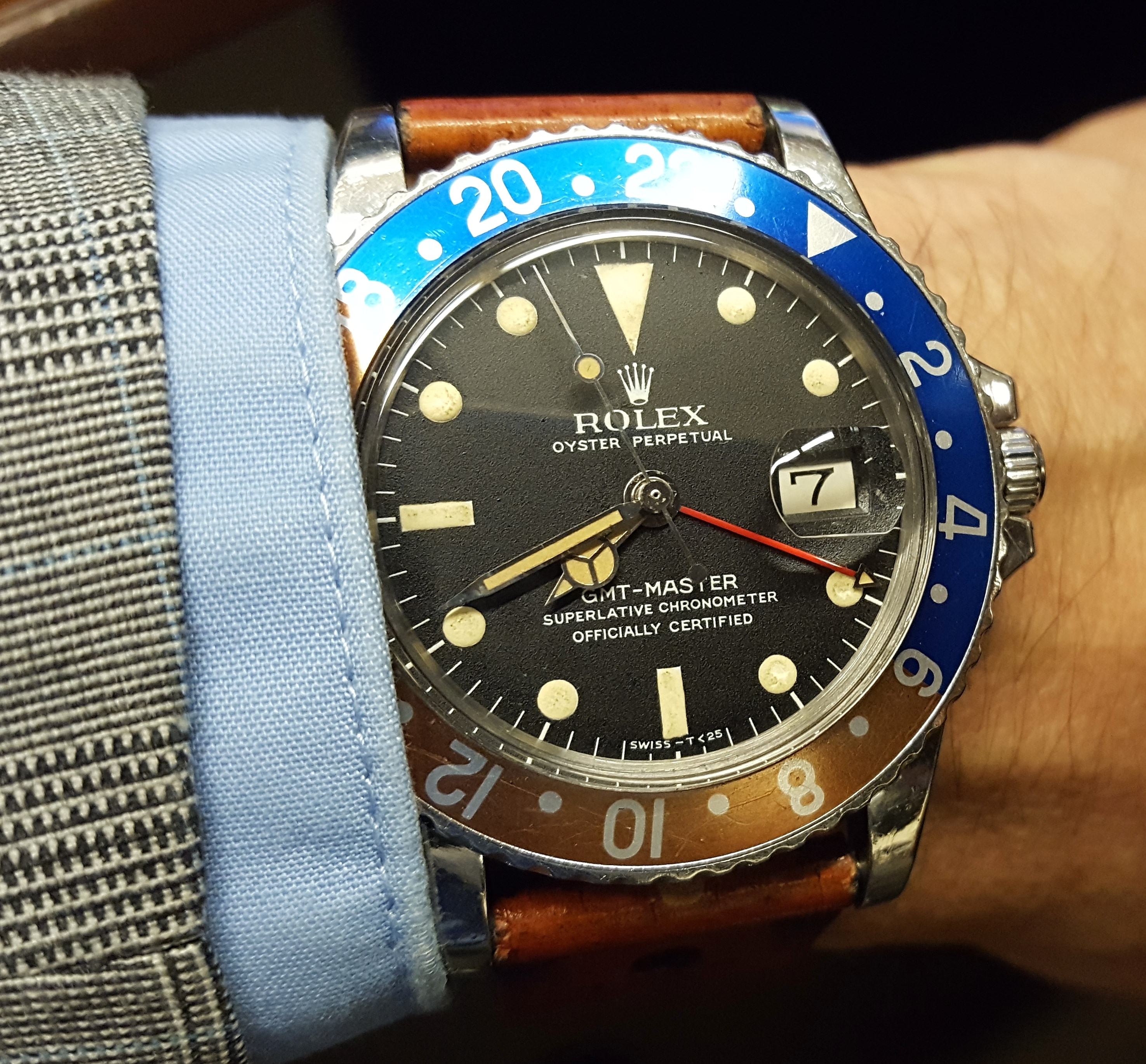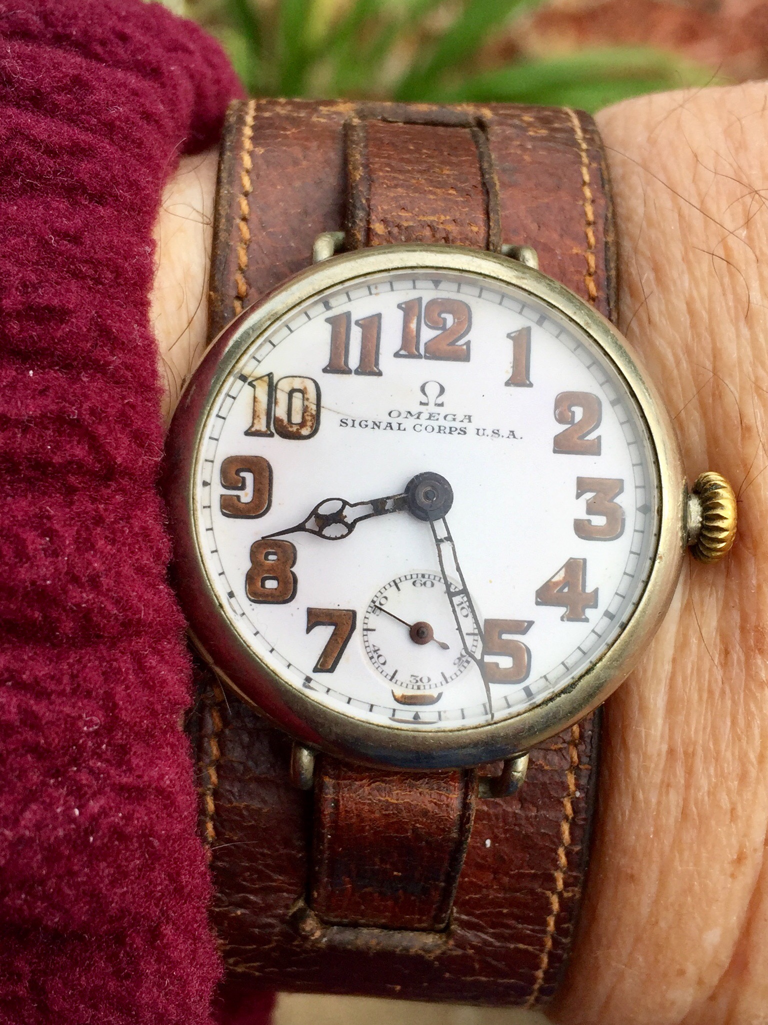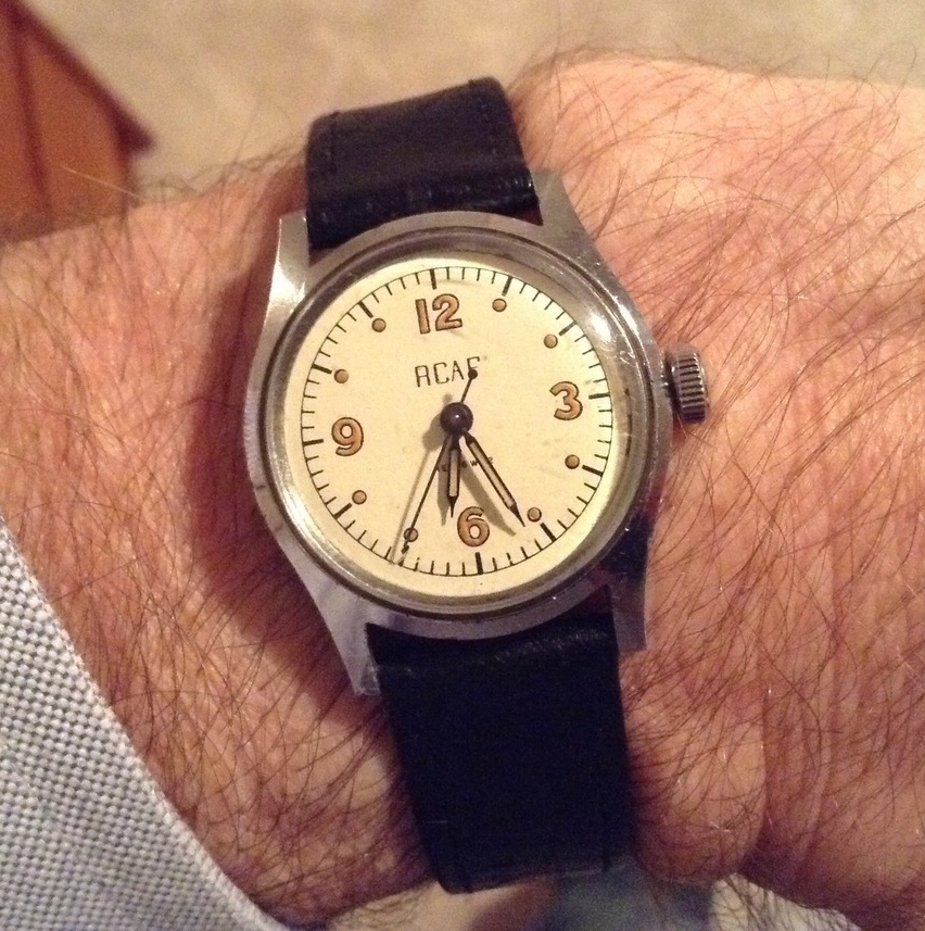 Worn by a bomber pilot during WWII, re-dialled as per 1960s policy to remove radium risks. Serviced by our very own Archer: