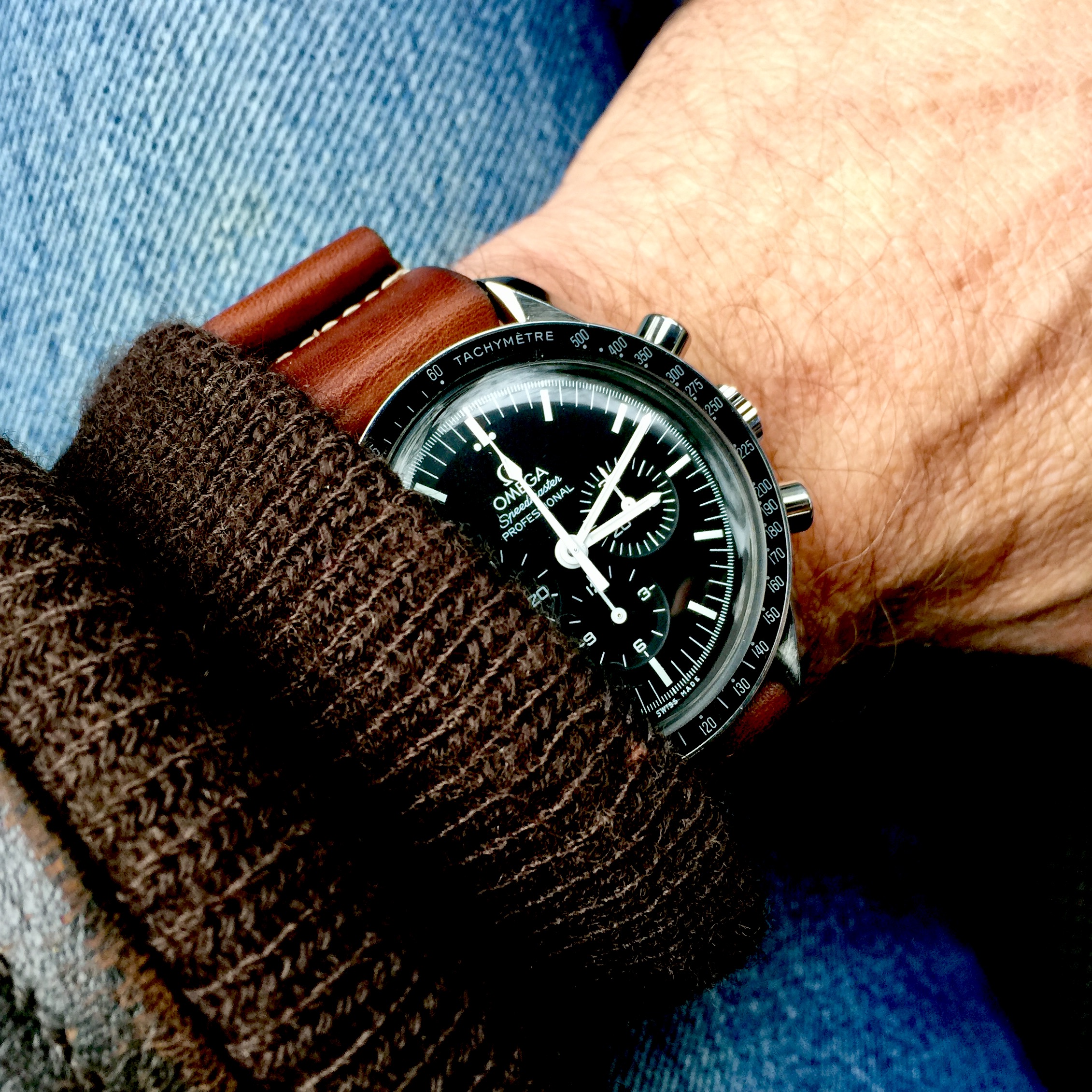 Posts 6,584 Likes 78,290 Mad Dog 路Nov 12, 2017 Modern Speedy Gonzales Moonwatch on an Omega Barenia leather NATO for today...I still dig reading the case back...good times! 馃憤