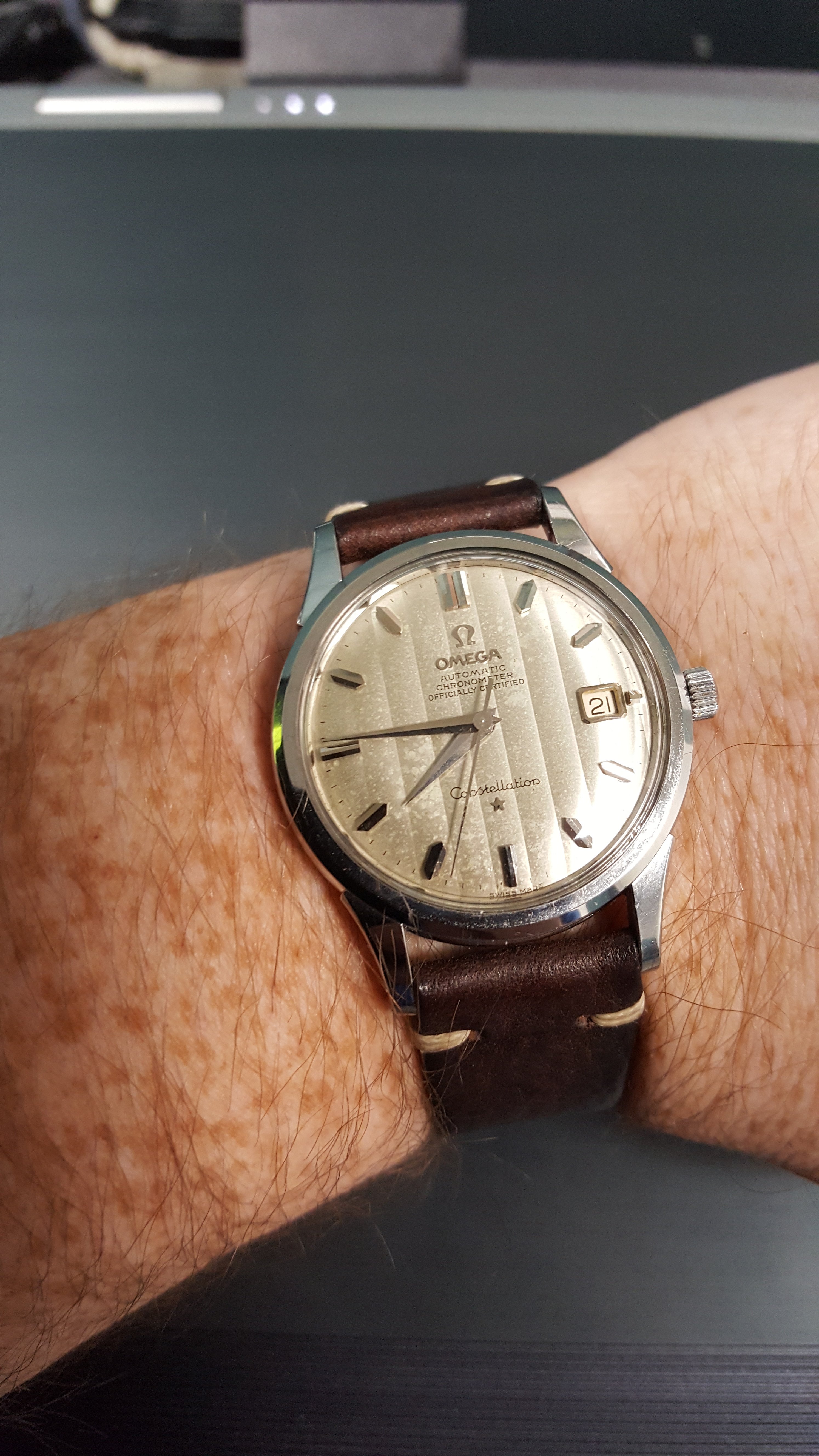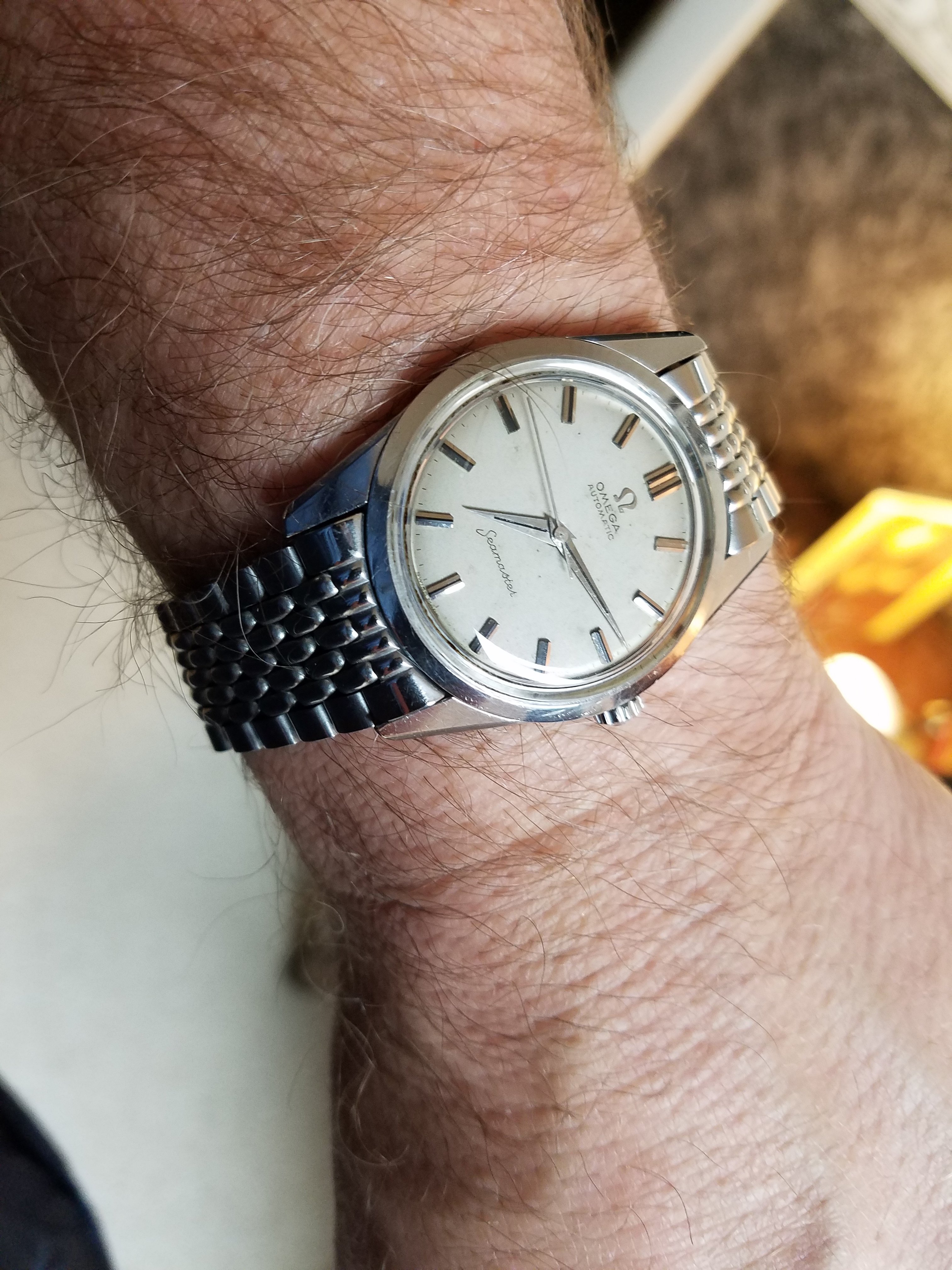 A 24 jewel 552 movement Seamaster. Serial number is over 18.7 million, ref. # 14700 sc-61. I was hoping this would be a 1962 birth year watch, but it is probably late in '61, but not a bad guess when buying it without movement pics. It keeps perfect time and my watchmaker opened it today and declared it in good shape and said wear it. It is missing the insert on the 1 indice, but came with the BoR bracelet and didn't break the bank, so I am happy for now. A special thanks to ChrisN for all the time he has spent with me on this since I have bought it. You folks here are very giving with your time and knowledge as long as one is willing to put in a little effort of our own into learning.
