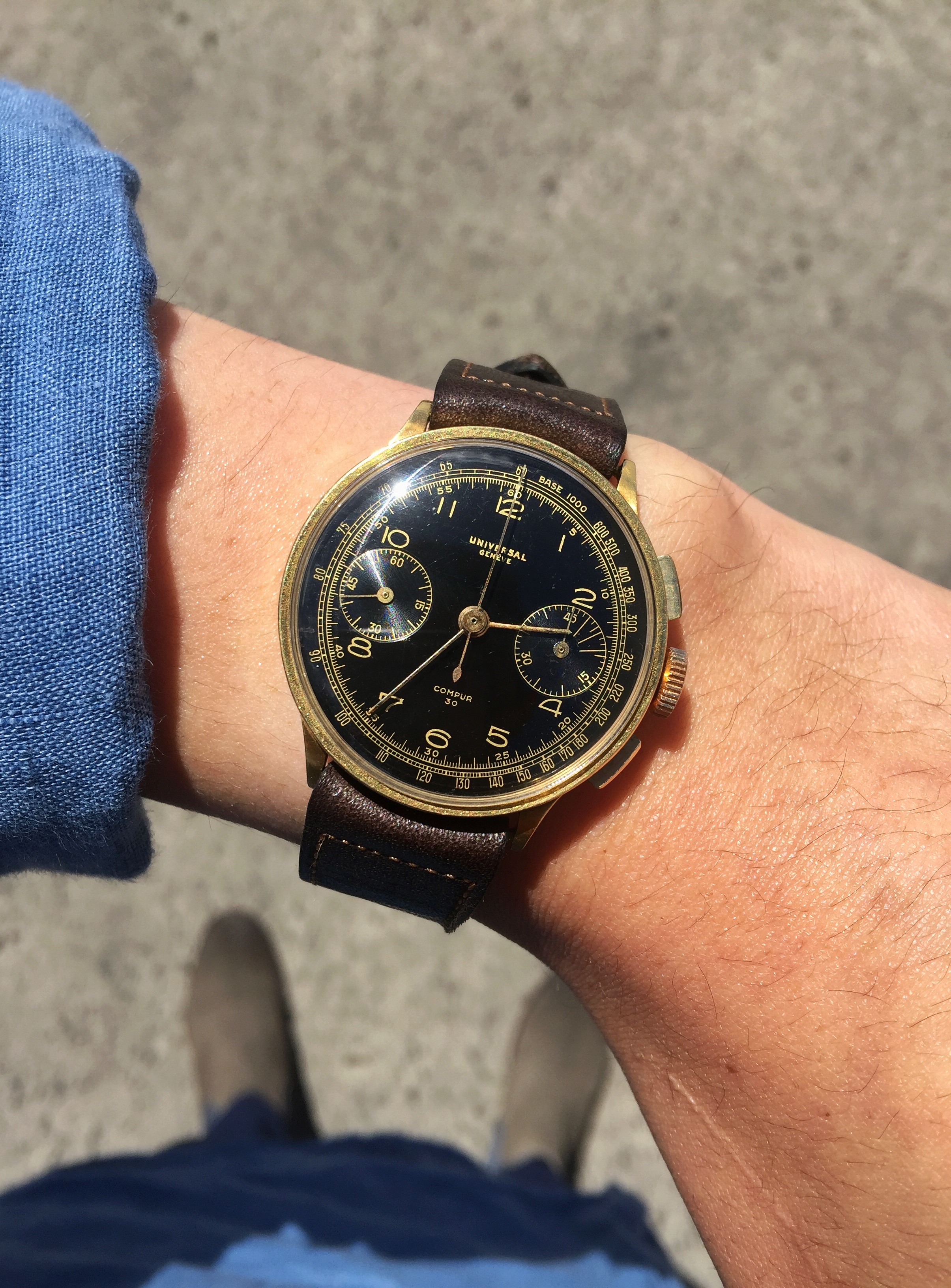 Good evening I am new to the page but it is very interesting. Today I wear My Bulova Regatta 23 automatic from 1964 as worn by Roger Moore as the Saint in most of the series. It ws an unfortunate time to take the pic as it appears to have only one hand, lol