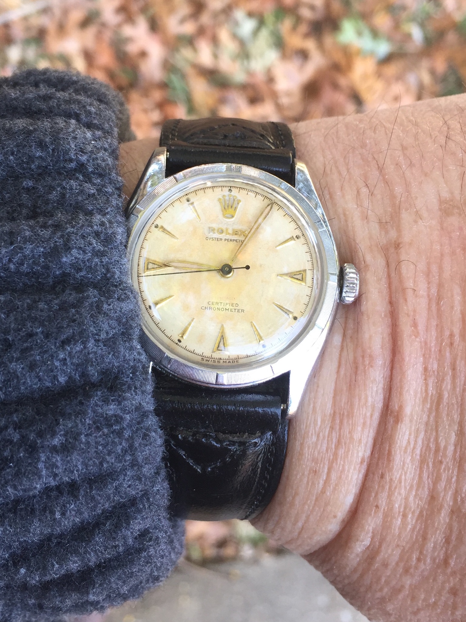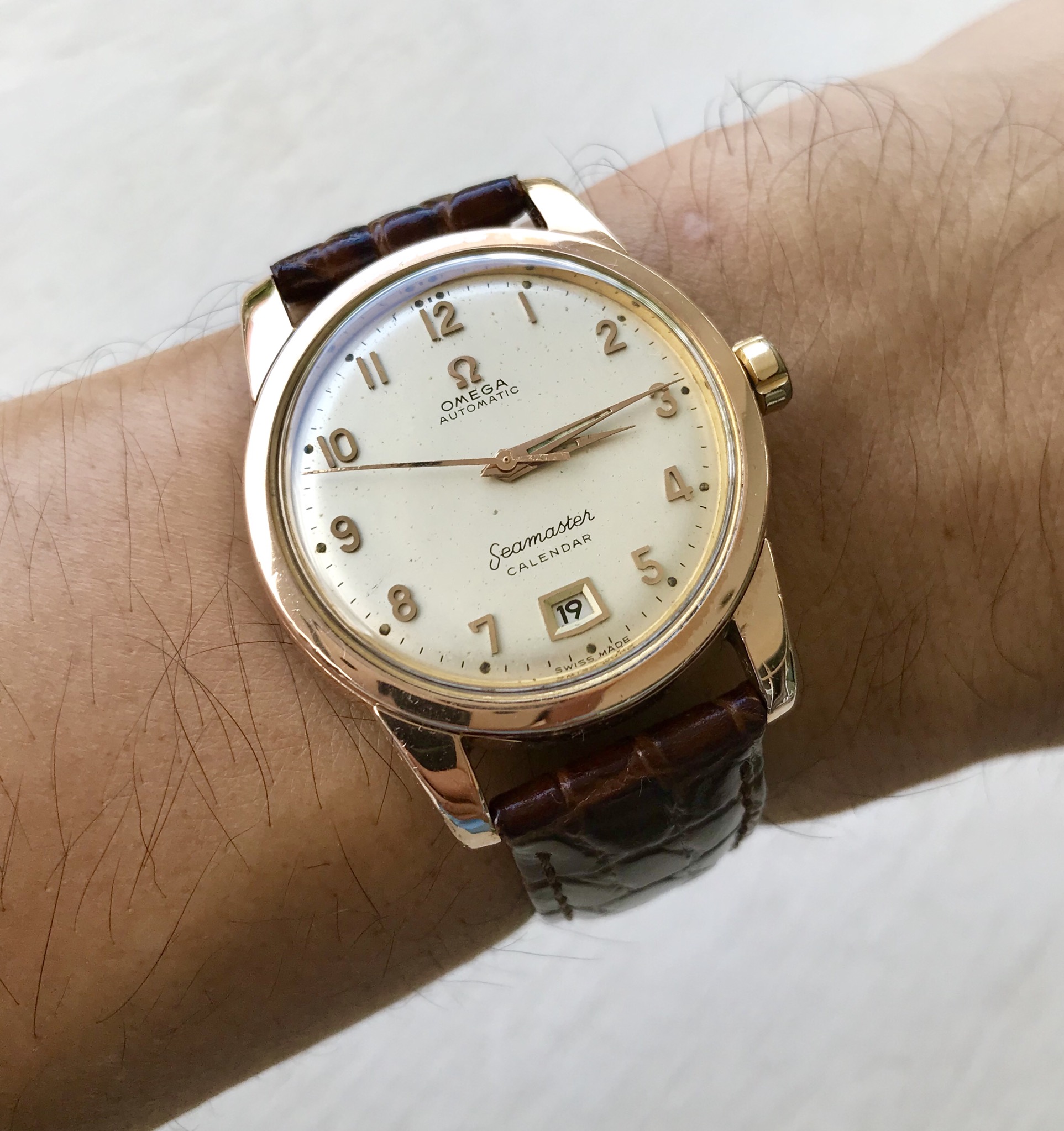 Beautiful, now I want one in gold as well as SS. I just think the date at 6 on this watch adds to it's functionality and leaves the balance. I have to get one. I like the SS with gold furniture and a linen dial, but this is perfect with the gold case. Anyone one want to give either example up? LOL