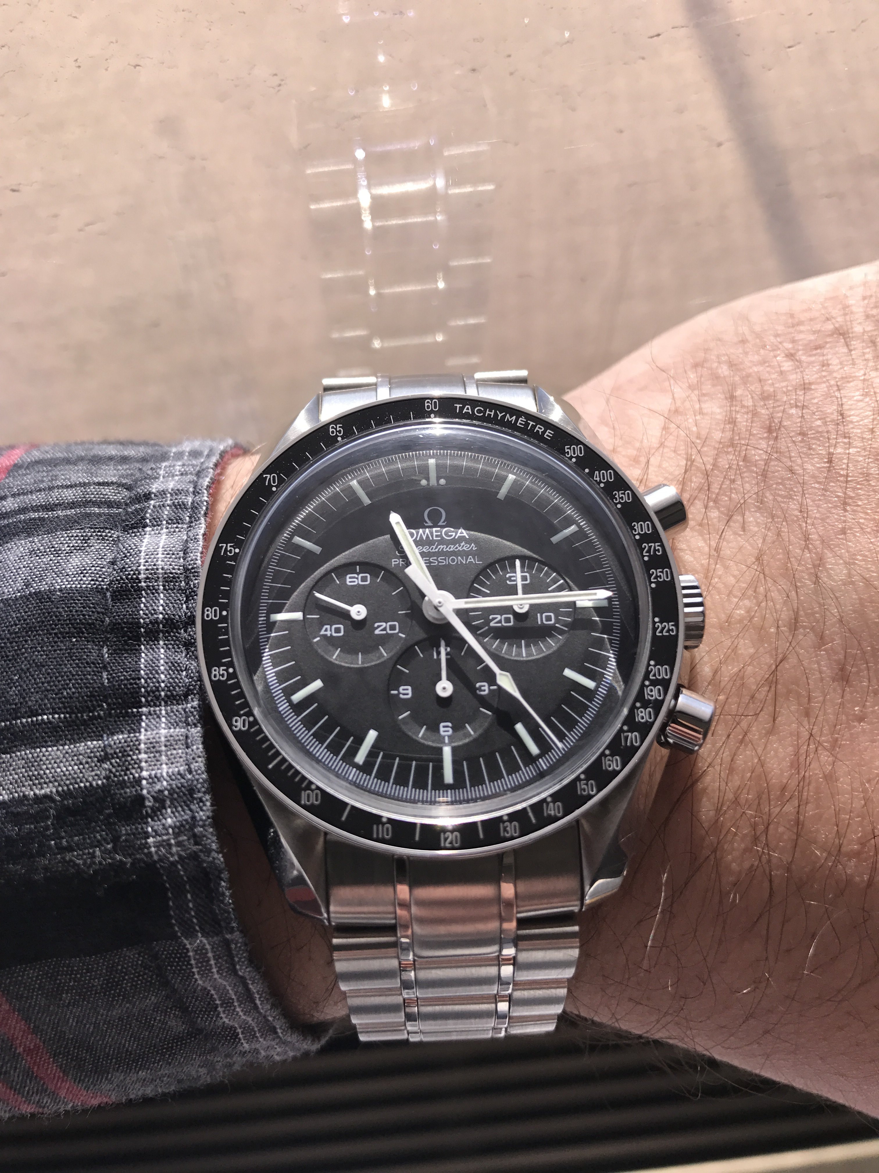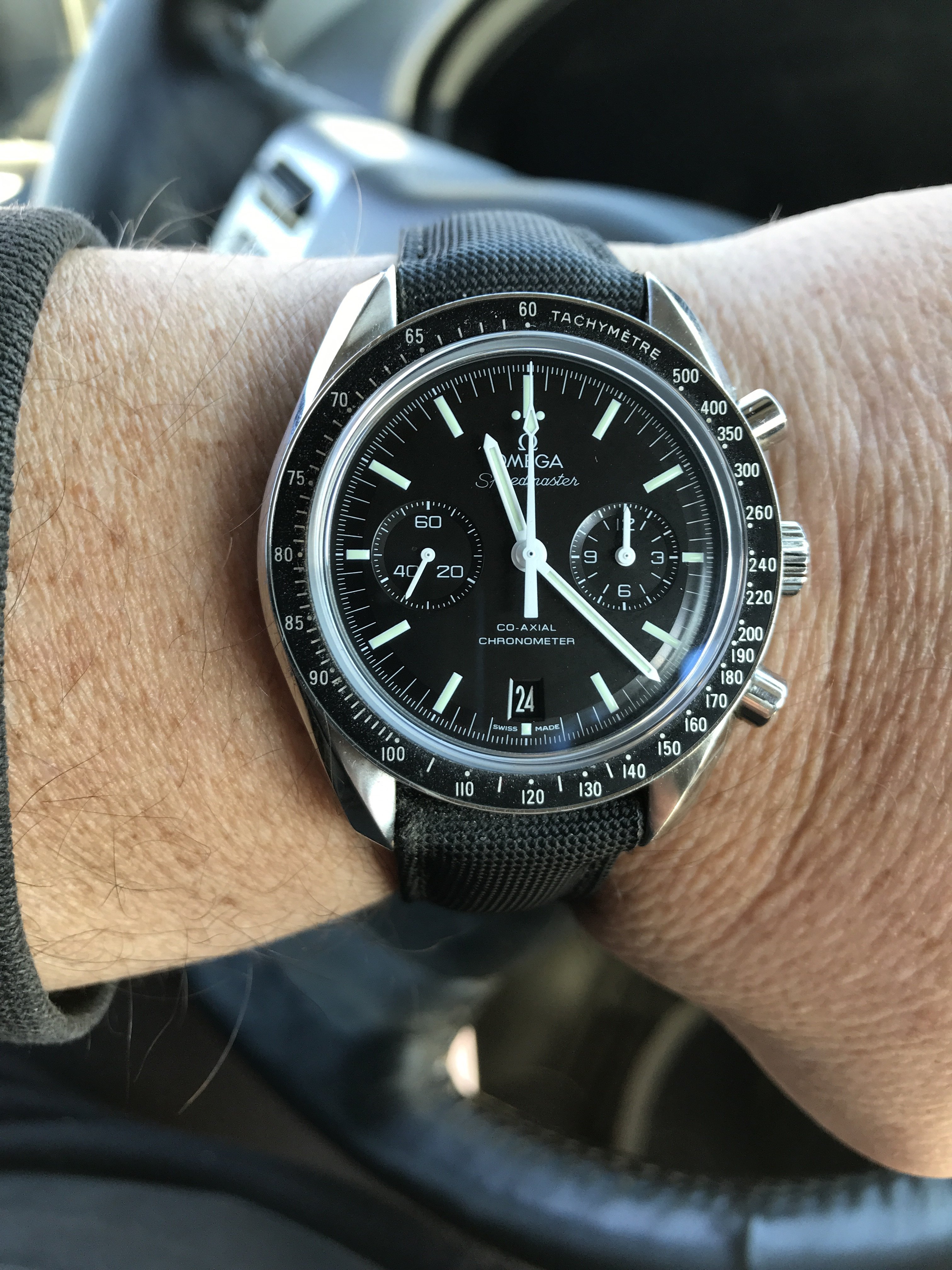 Posts 1,802 Likes 10,156 ras47 ·Nov 24, 2017 Co-Axial Moonwatch 44mm today. The Pepsi GMT2 went back on the watch winder yesterday. That’s the DSotM strap with deployment clasp on my 7 3/4” wrist. I am constantly amazed at the insanely great readability of the Speedmasters.