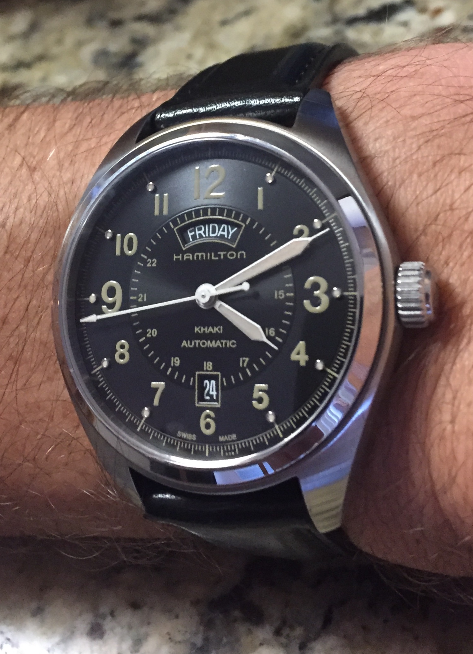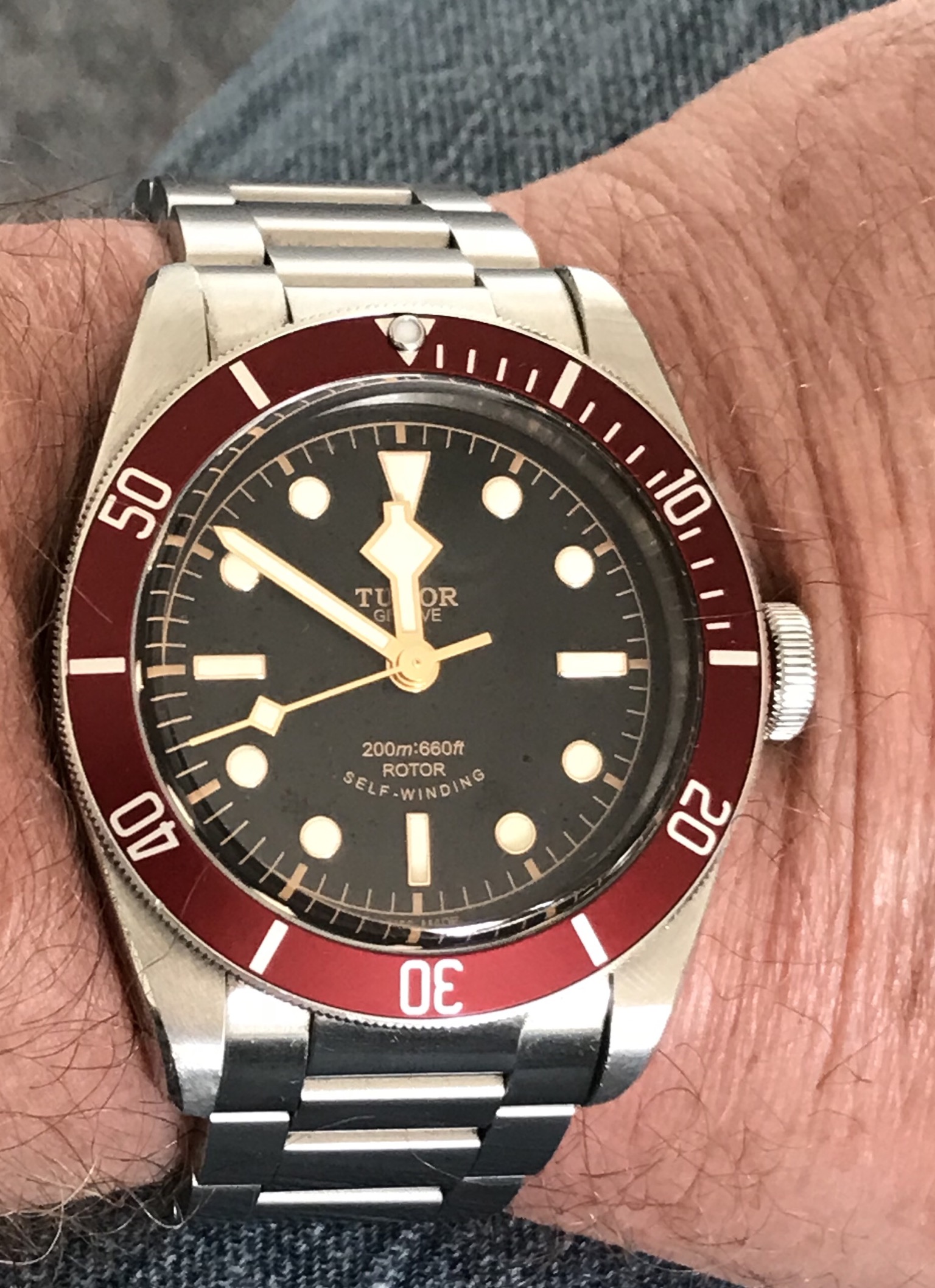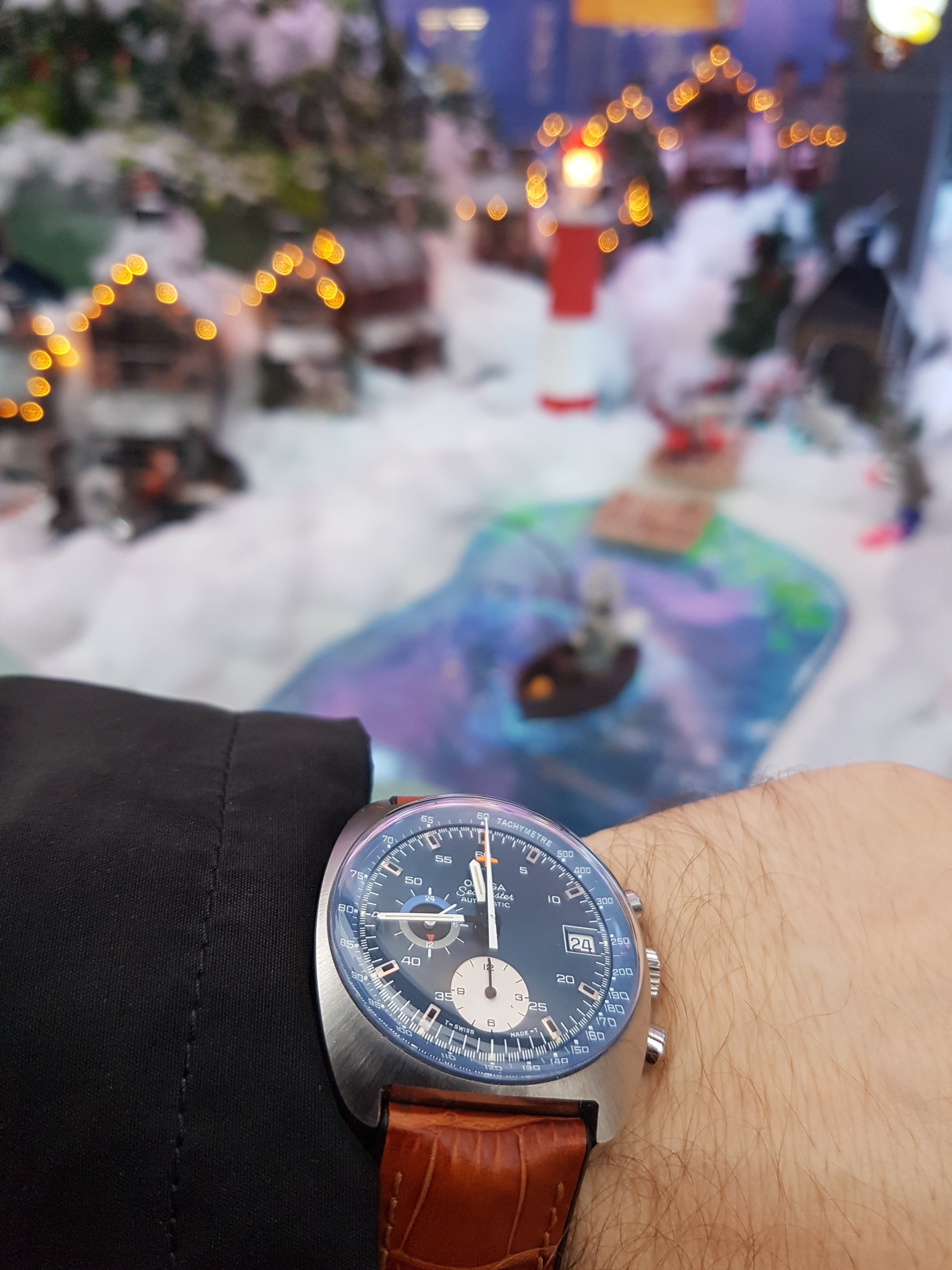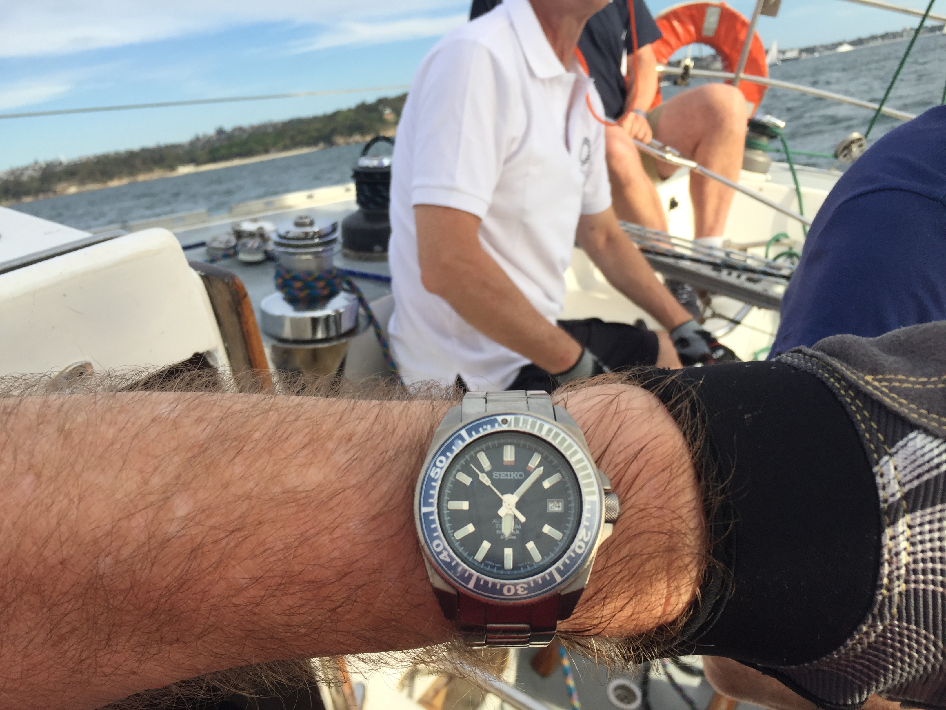 Back to work, nightshift, after the holiday here in the U.S. so it is back to my $4.20 thrift shop solar Seiko. I saw what looked to me to be the modern equivilent or model of this watch a couple of weeks ago at J.C. Penney. Case shape and bracelet were changed very little.... $265. It shows it's age, but it keeps perfect time. And I just realized the dial and my shirt match perfectly tonight! LOL