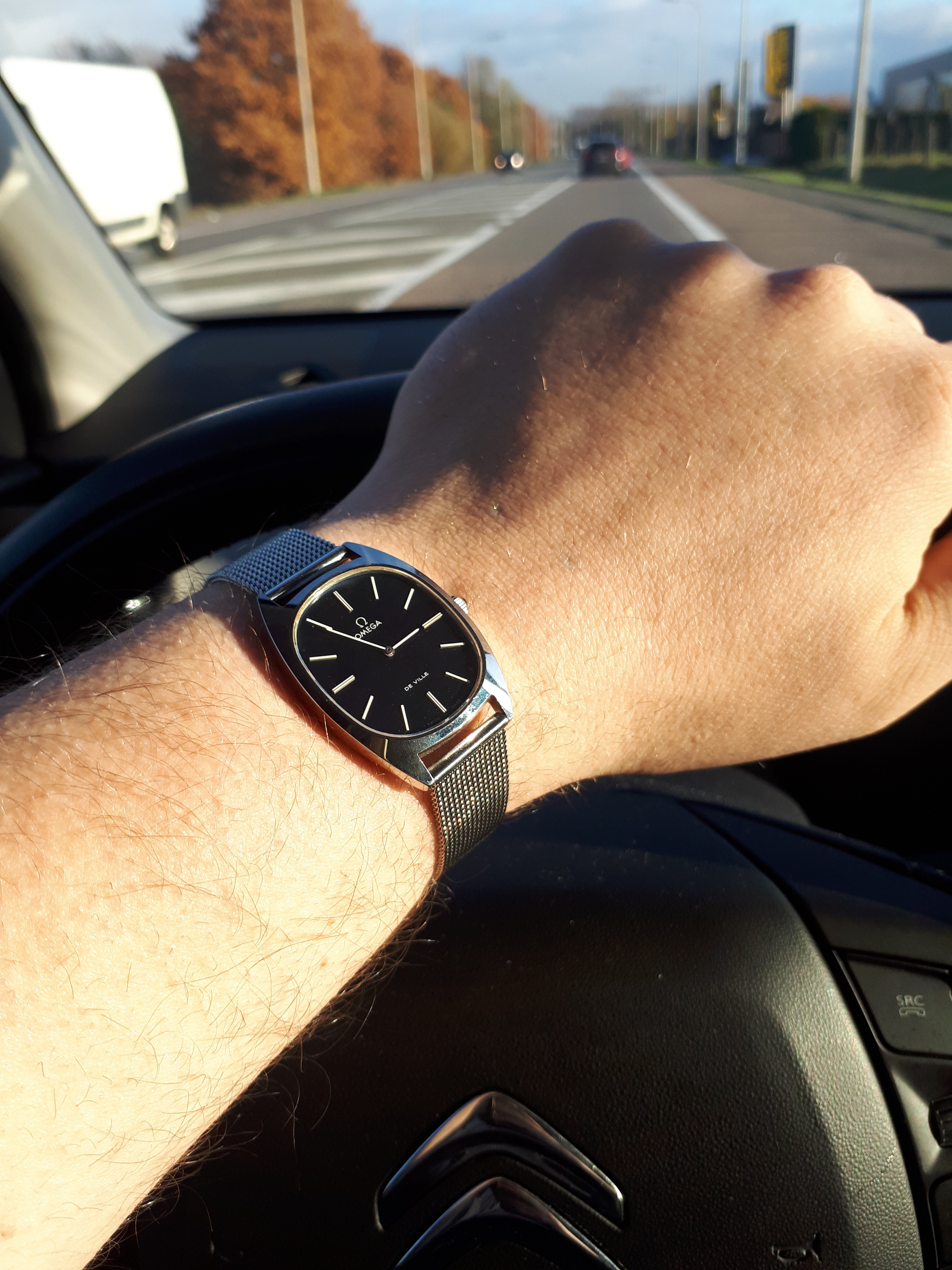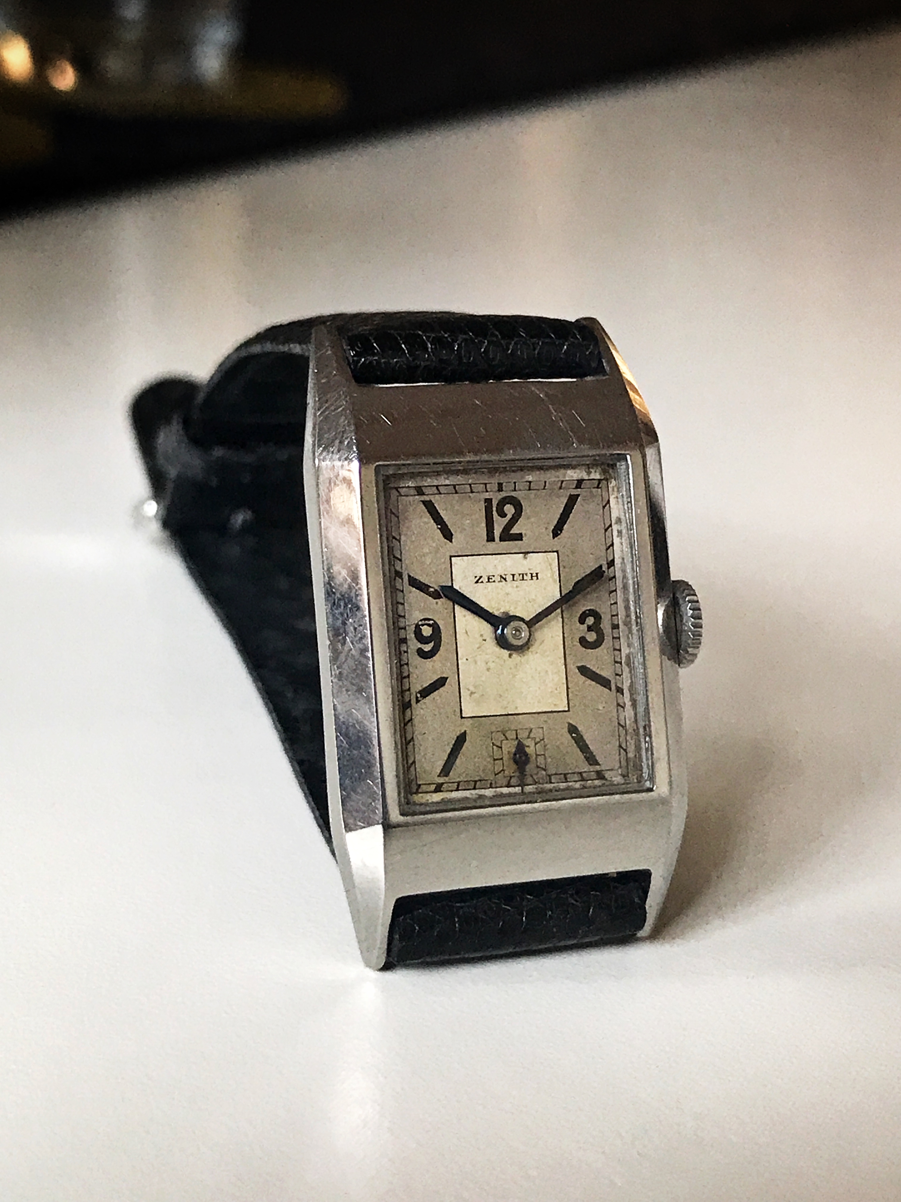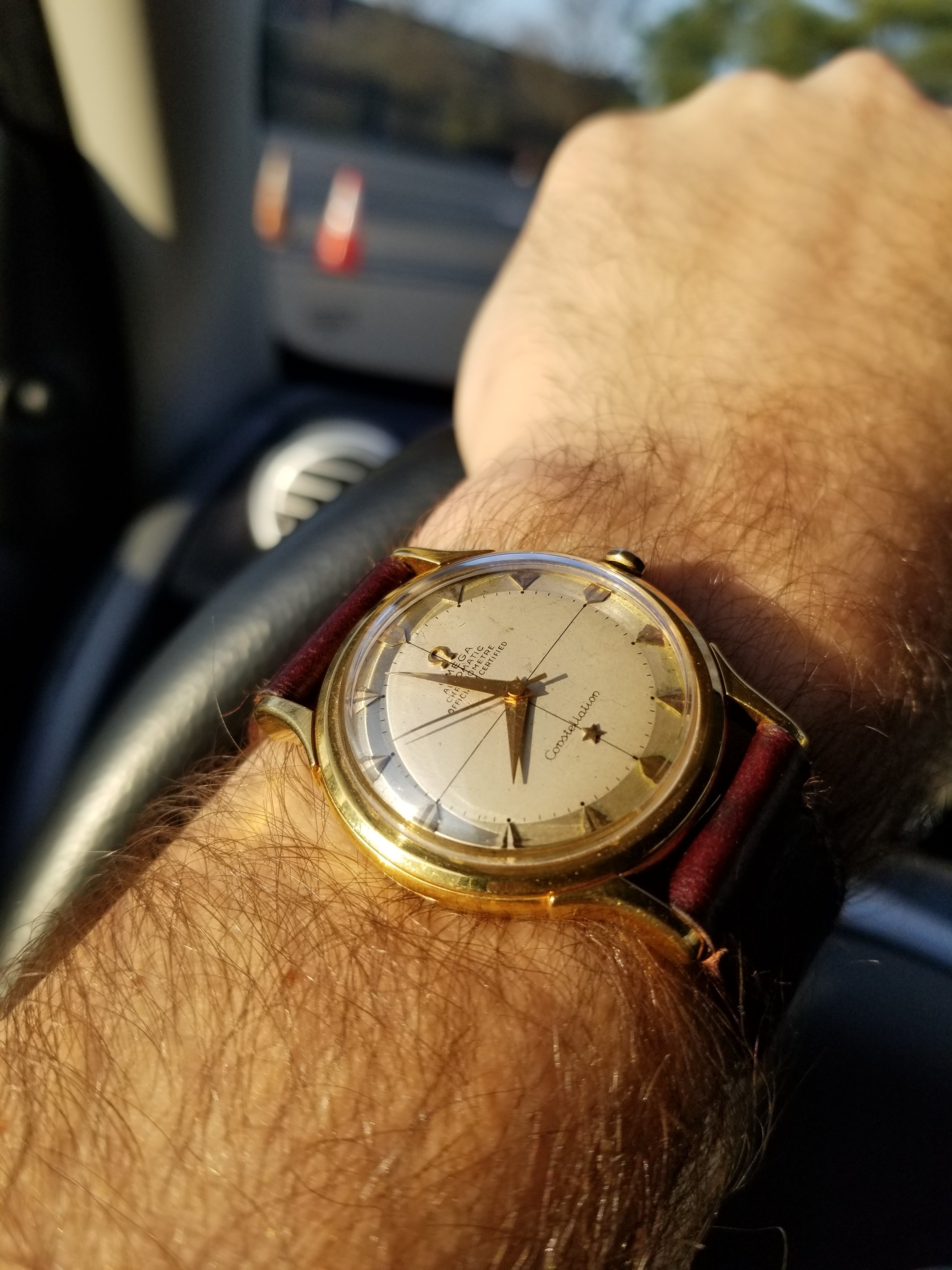 Shiny black dials are hard to photograph! I realized, but didn't do this time, that I need to put a black sack over my head to eliminate the reflection of my white hair and pale forehead...