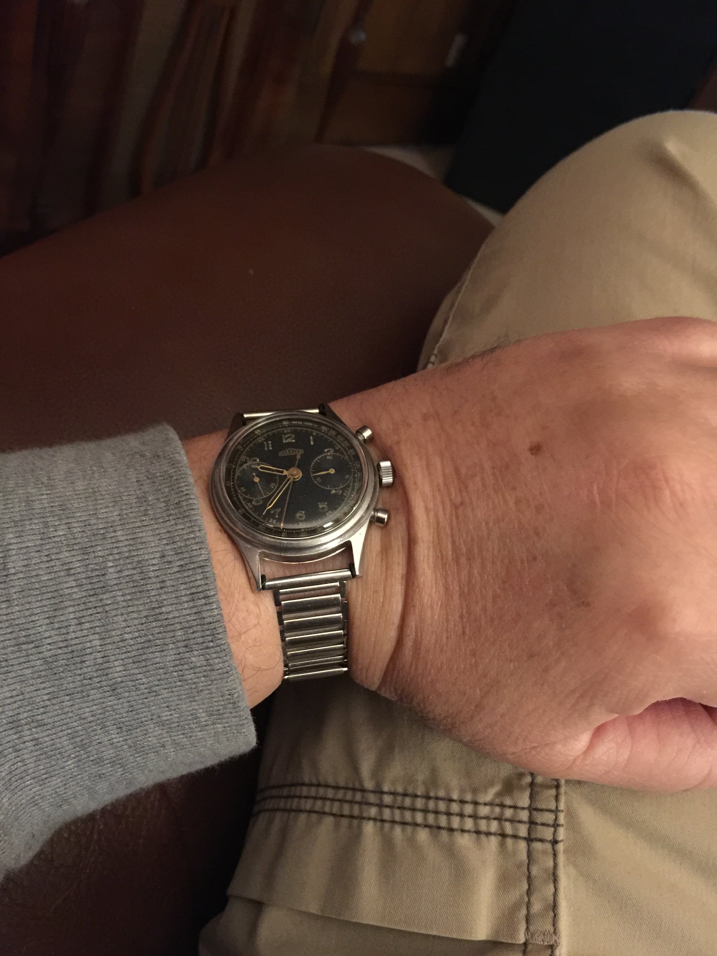 So it was a birthday with a zero in it last night. Took 10 friends to dinner at the truly sensational Bennelong restaurant in the Sydney Opera House. It fills the smaller of the three shells. I needed a watch older than me. This fantastic purchase from DougieDude stepped up very nicely.