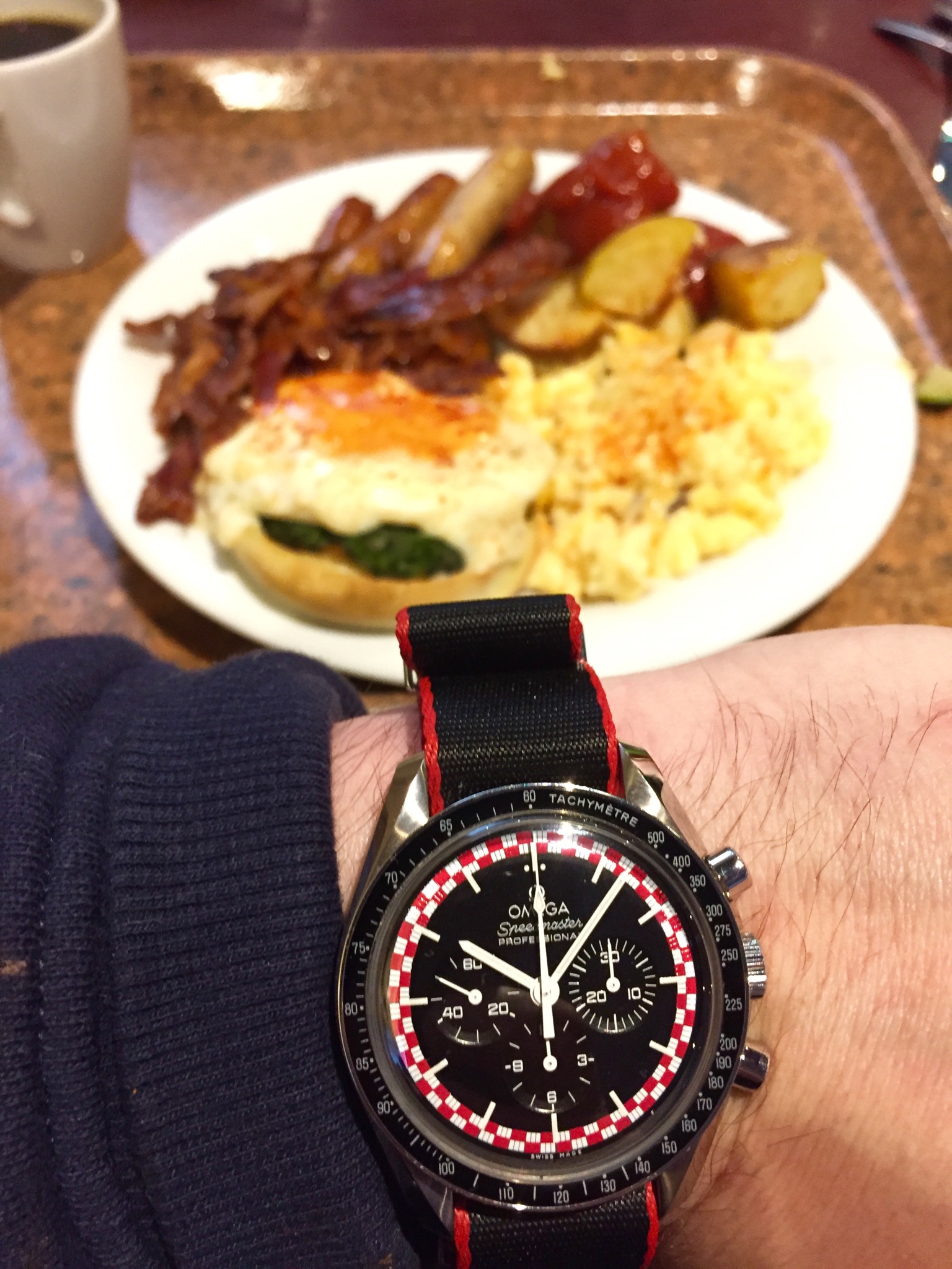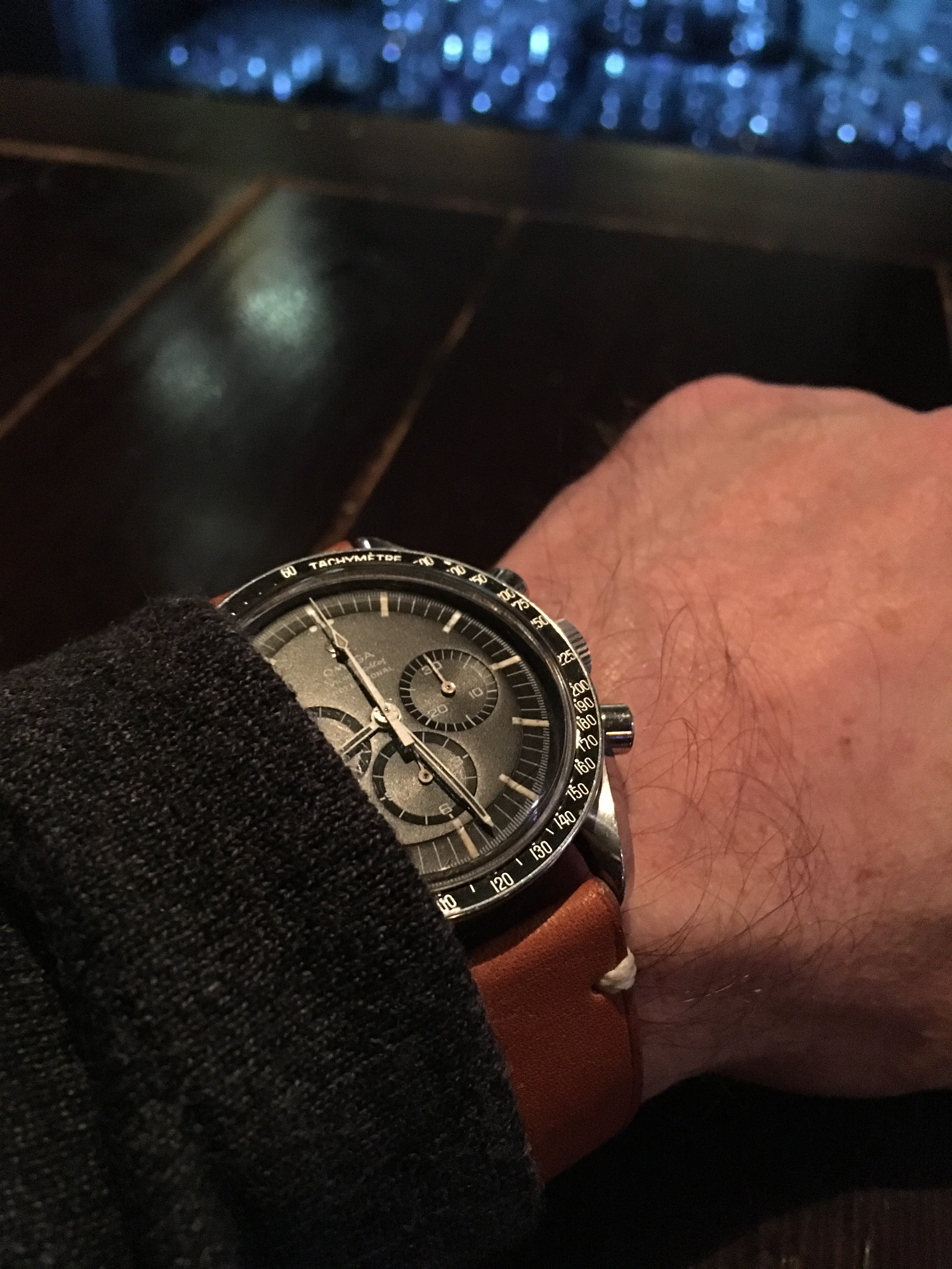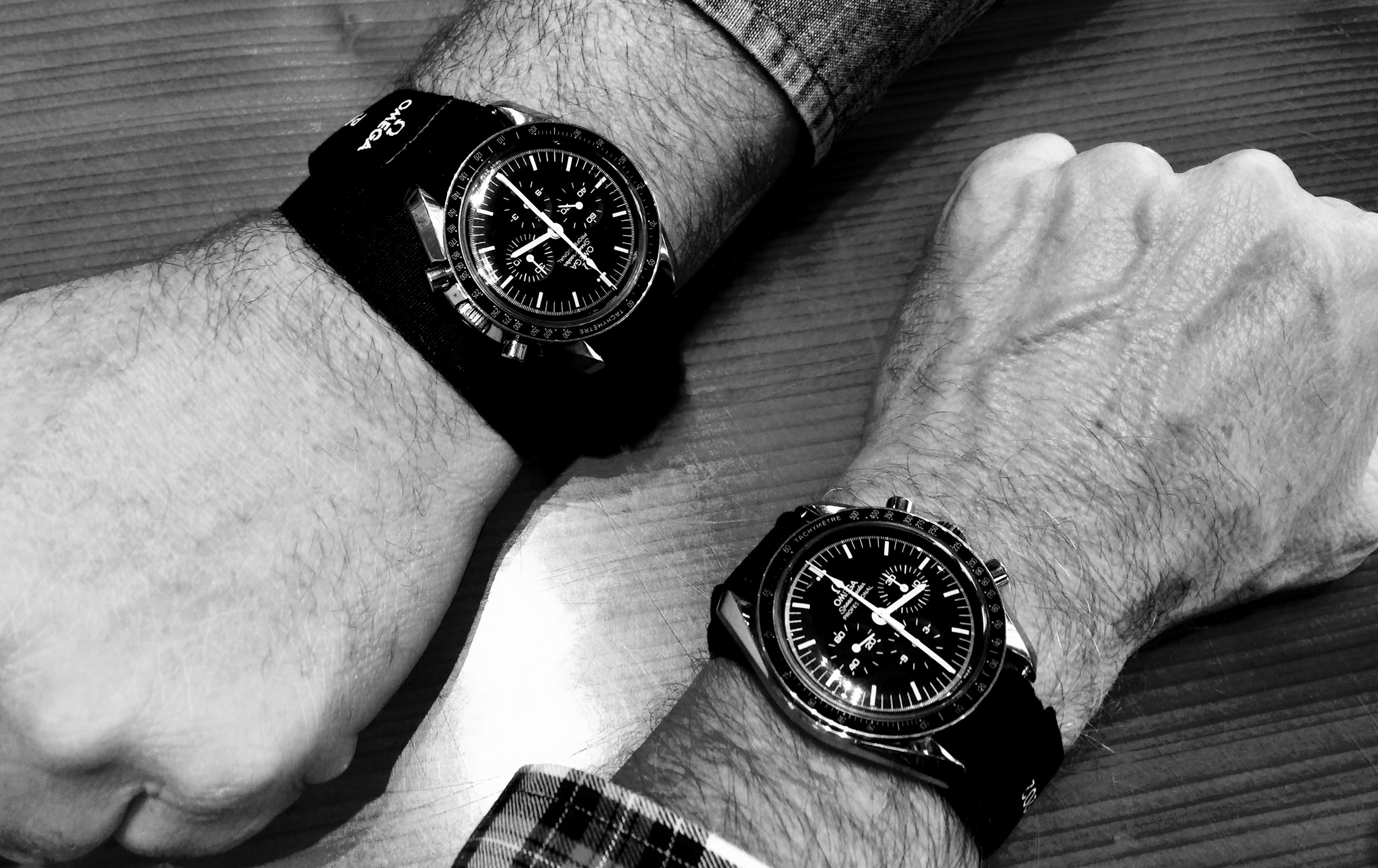 @ChuckMK23 [and Mad Dog in the distant background of the second pic] sporting modern Speedy Gonzales Moonwatches on Omega replica NASA bands at Hooters during the Army-Navy game...good times! 馃憤