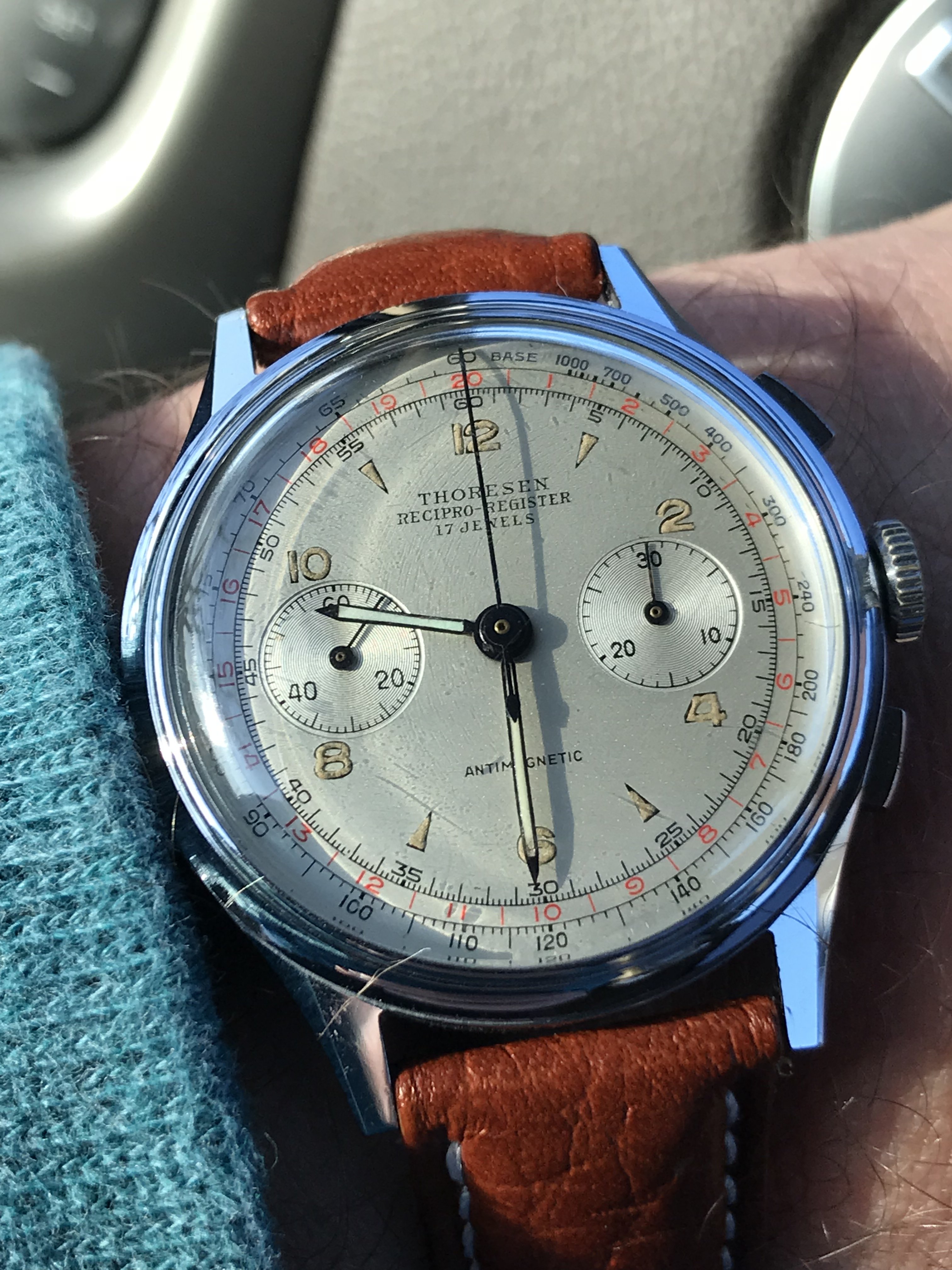 A very rare and early waterproof design chronograph ref 7066. Serial puts it to 1937-39.
