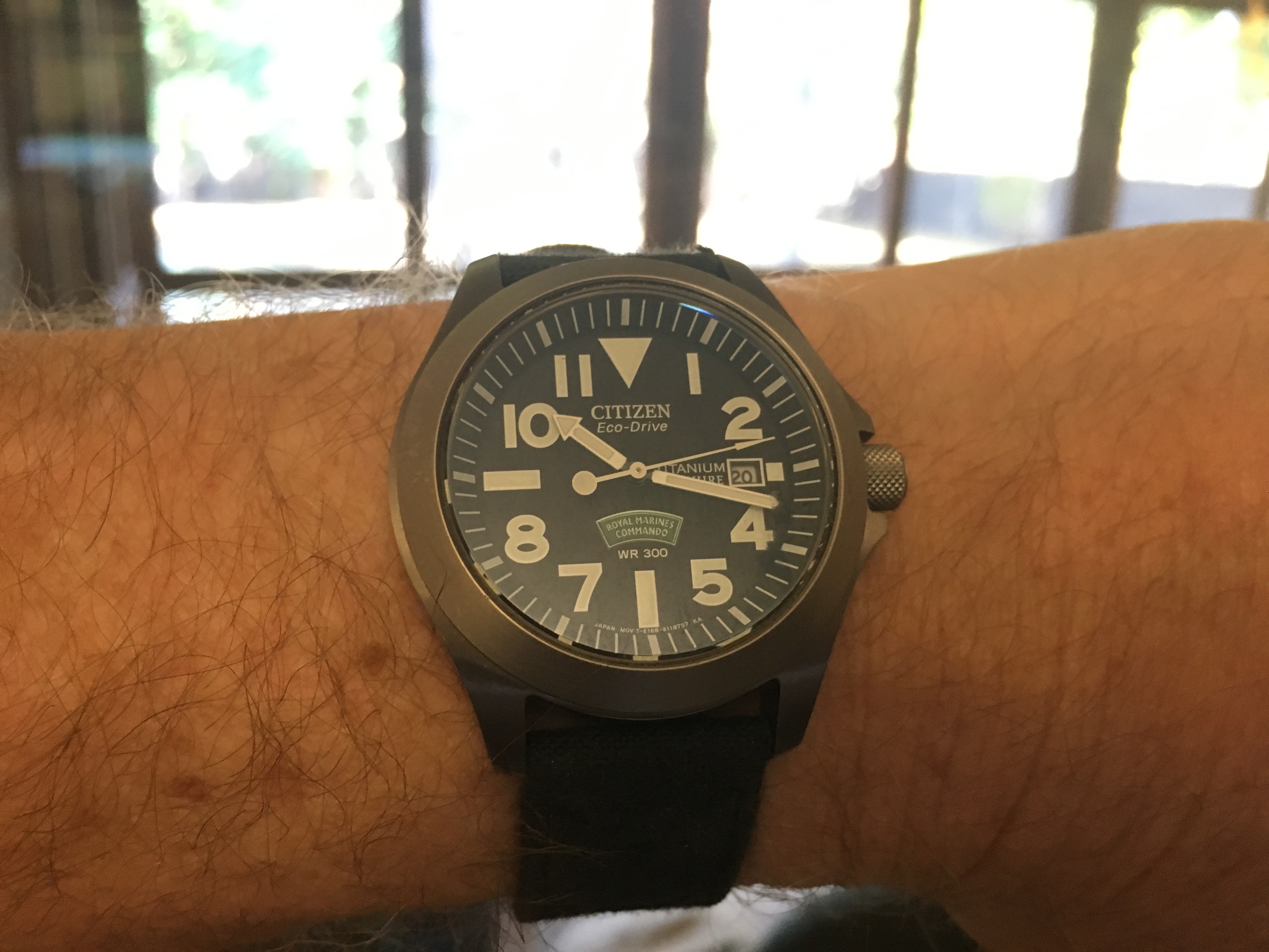 Working on the car today, so it’s time to break out my latest “beater.” Citizen Royal Marines Commando - ecodrive, titanium shell, 2.5mm sapphire crystal, and a Kevlar strap; this thing is pretty much indestructible. I only wish it was a tad larger - they call it 42mm, but it's noticeably smaller than any of my other 42's.