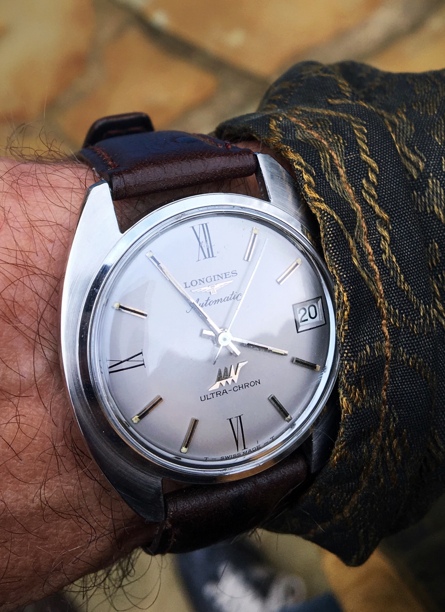 When I was setting it this morning I was once again impressed with the crisp yet buttery smooth movement of these Longines, the date wheel snaps at 12 and the hand setting is oh so fluid. Simple yet powerful design of the entire watch; the light plays over the dial in washes of warm and cool - a pleasure to look at during the day...