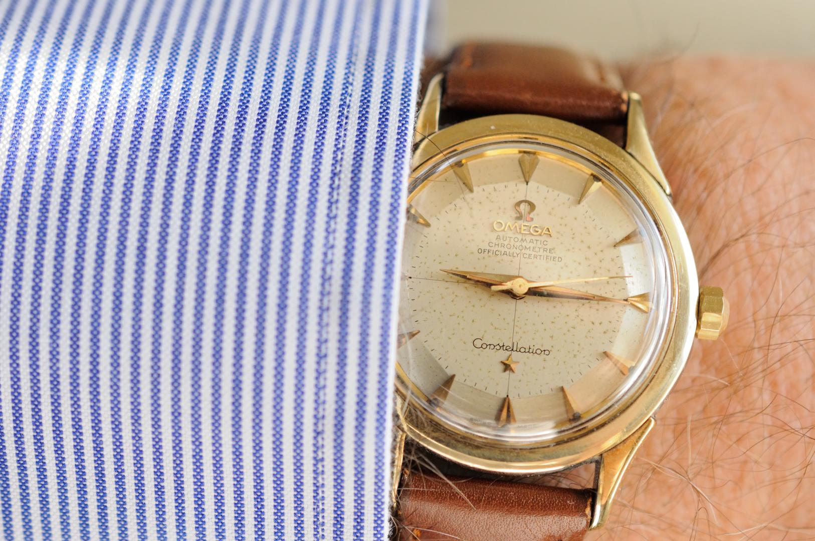 I posted a wristie last week and in the post was extolling the pleasure I receive from the period band and buckle on it. Well, it's the same deal here. The band and buckle also arrived on a different and somewhat inappropriate watch. This band came on a stainless Constellation.