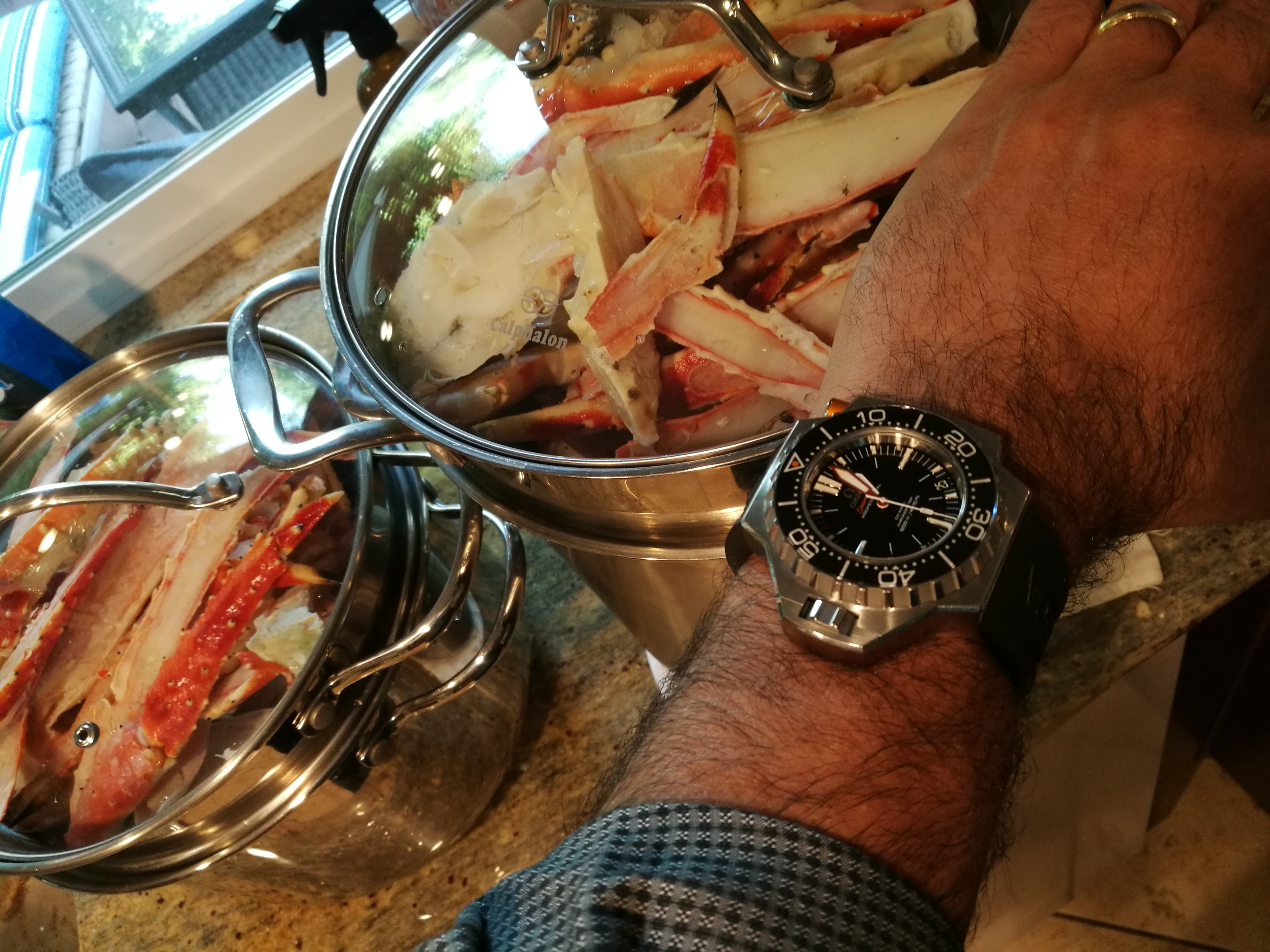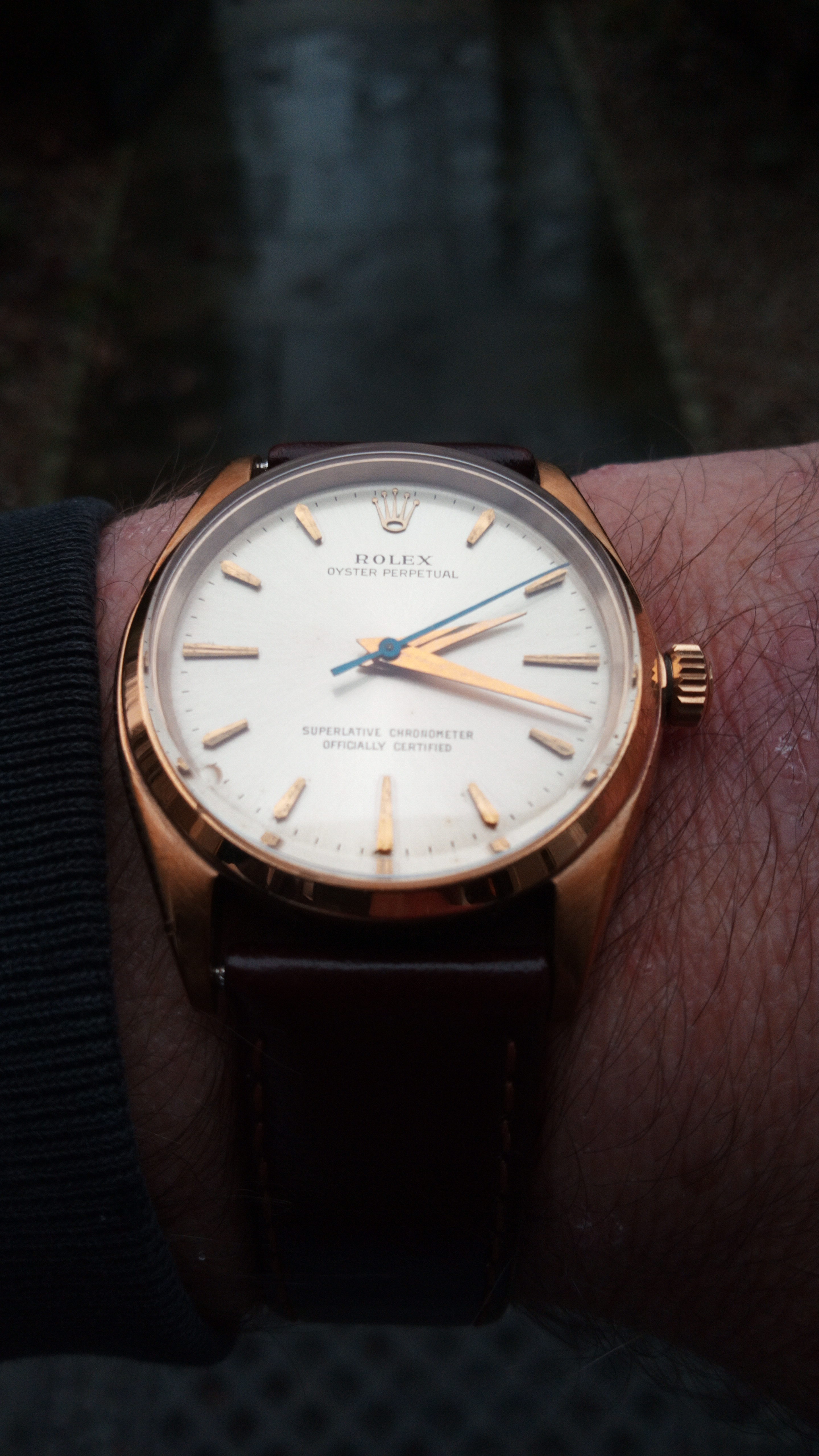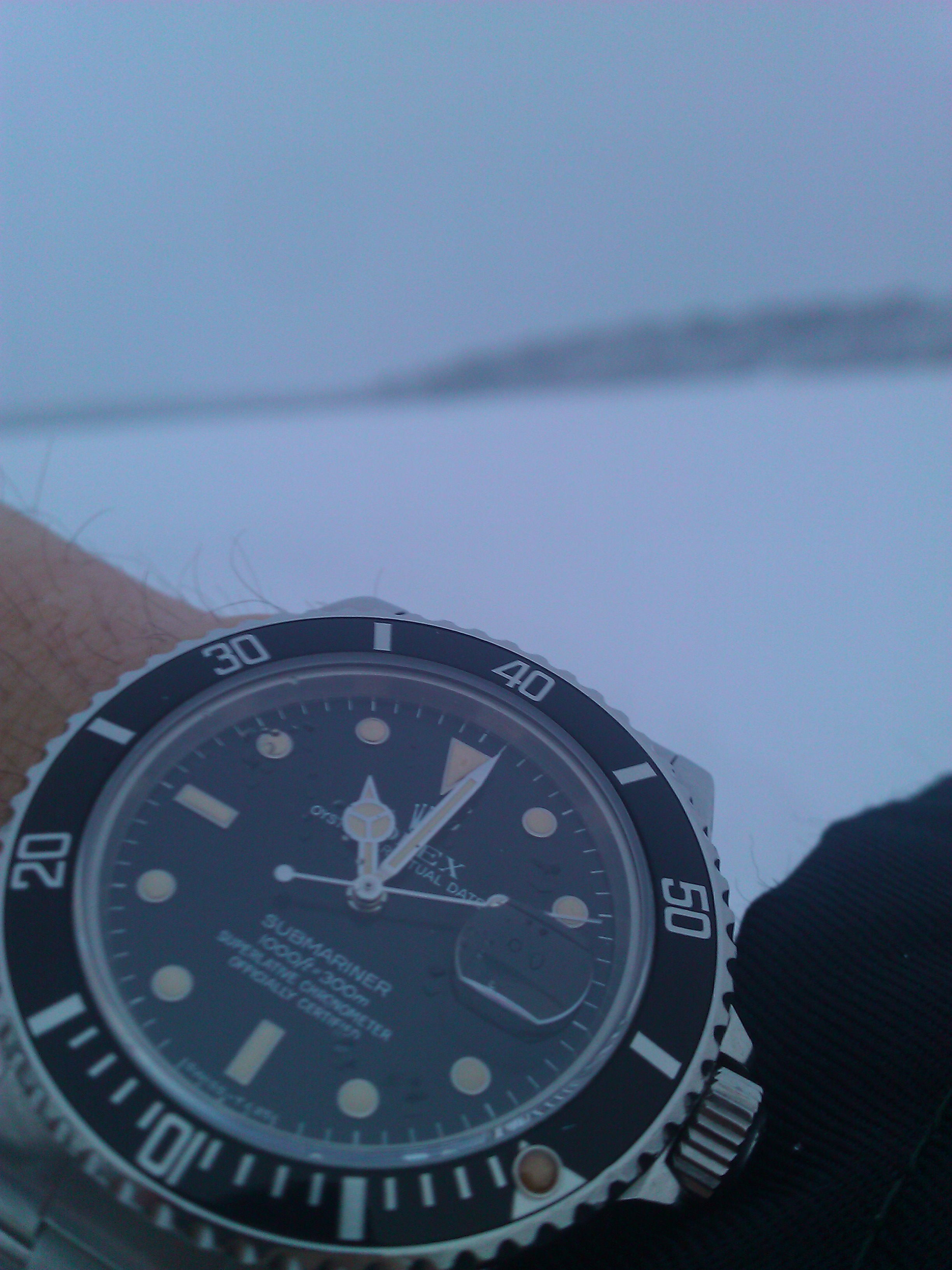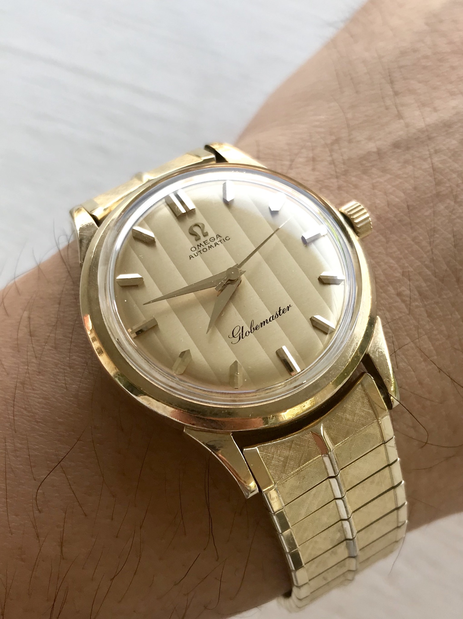 Christmas Day. Still on my wrist as I had it planned on December 23. Many feet of snow outside, so to an indoor shot. My 65 (approx.) year old Omega Seamaster caliber 355, date at 6:00. Case, crystal, crown, all NOS Omega. Dial is pristine original. Hadn’t seen the light of day for over 40 years, when I happened upon it in a box of 50s vintage Omega parts watches. Happy days.